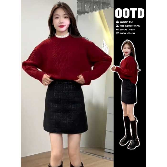 新年針織紅色毛衣秋冬季慵懶風2025新款短款本命年女裝過年穿搭