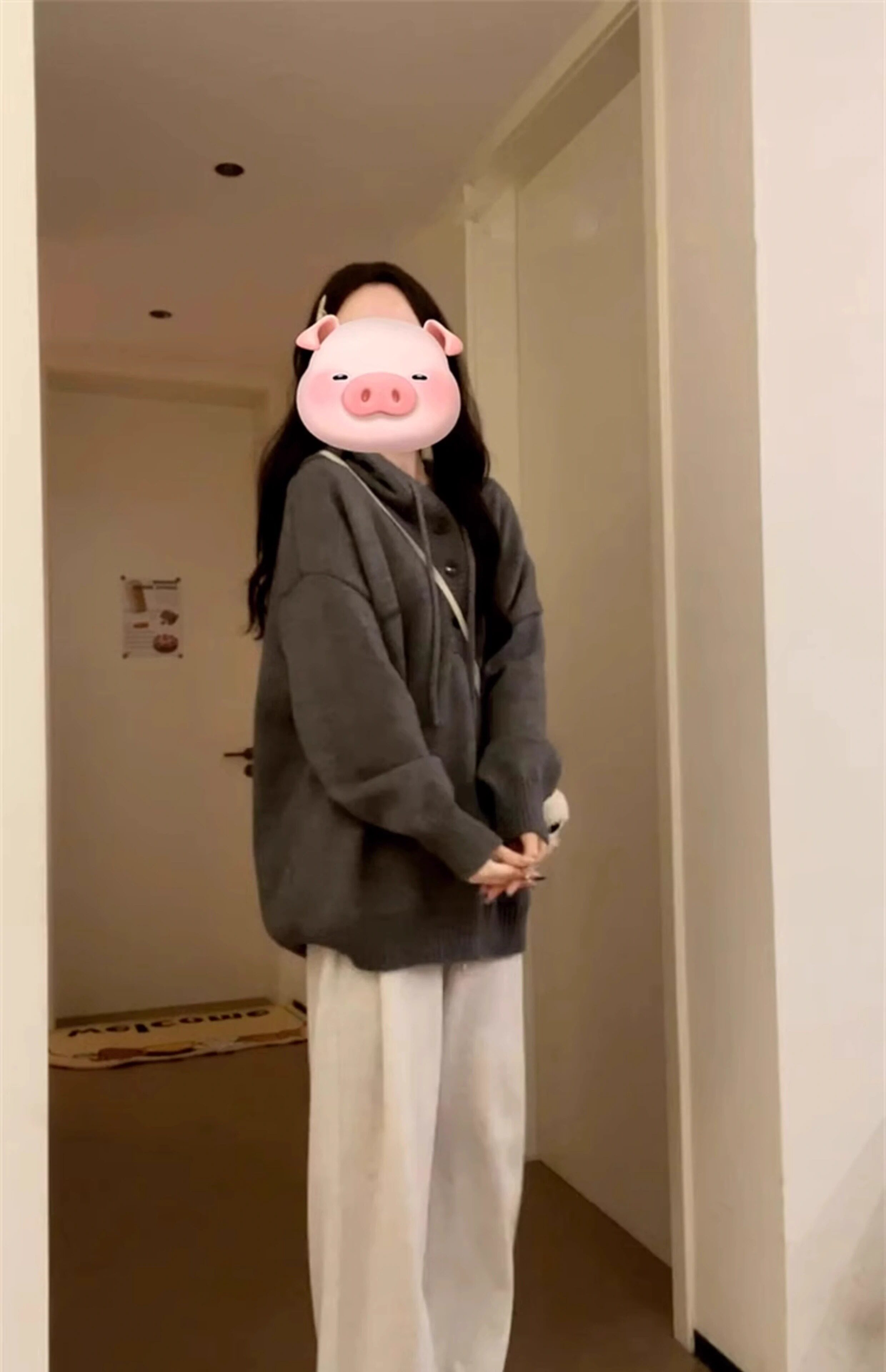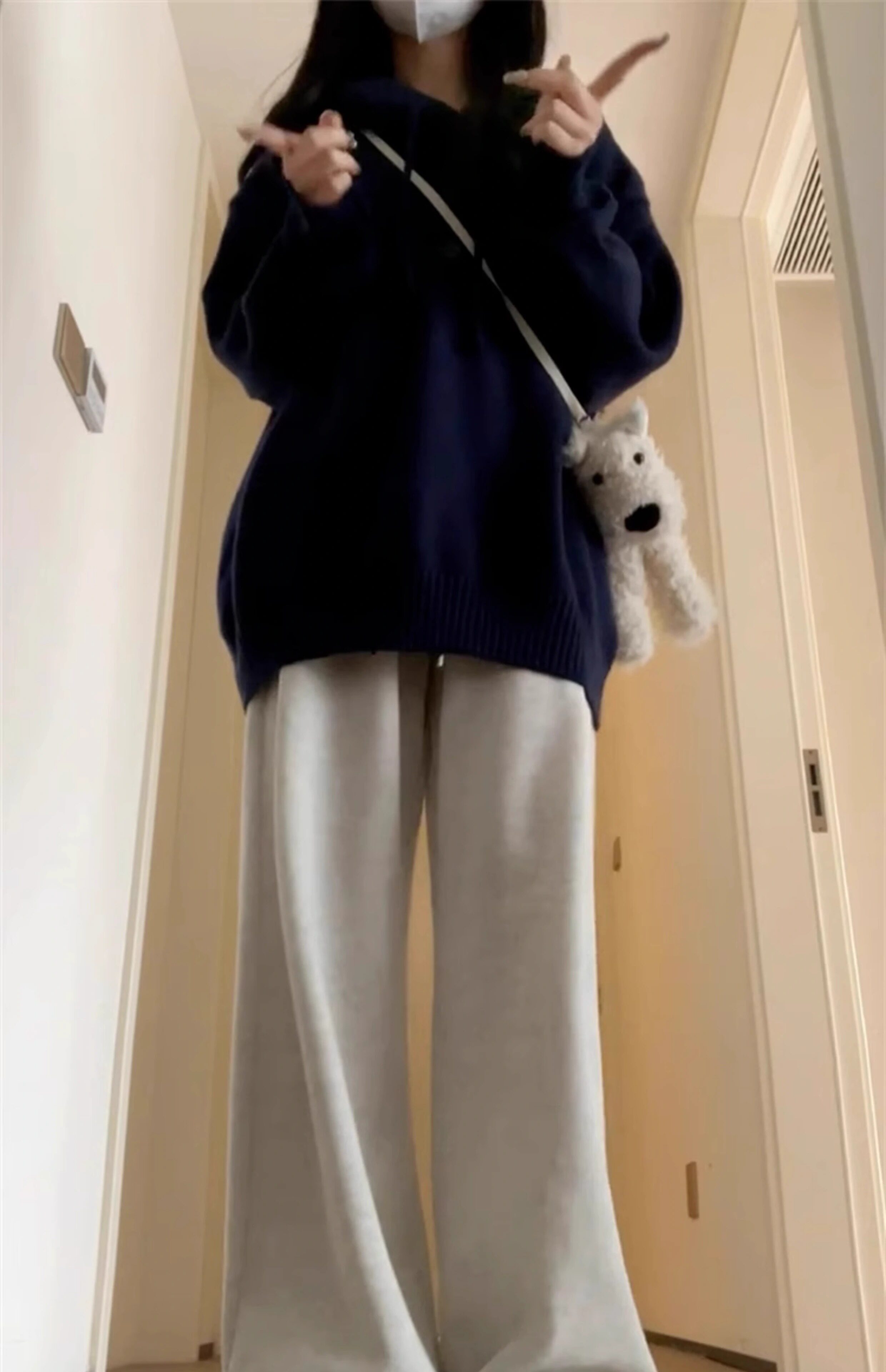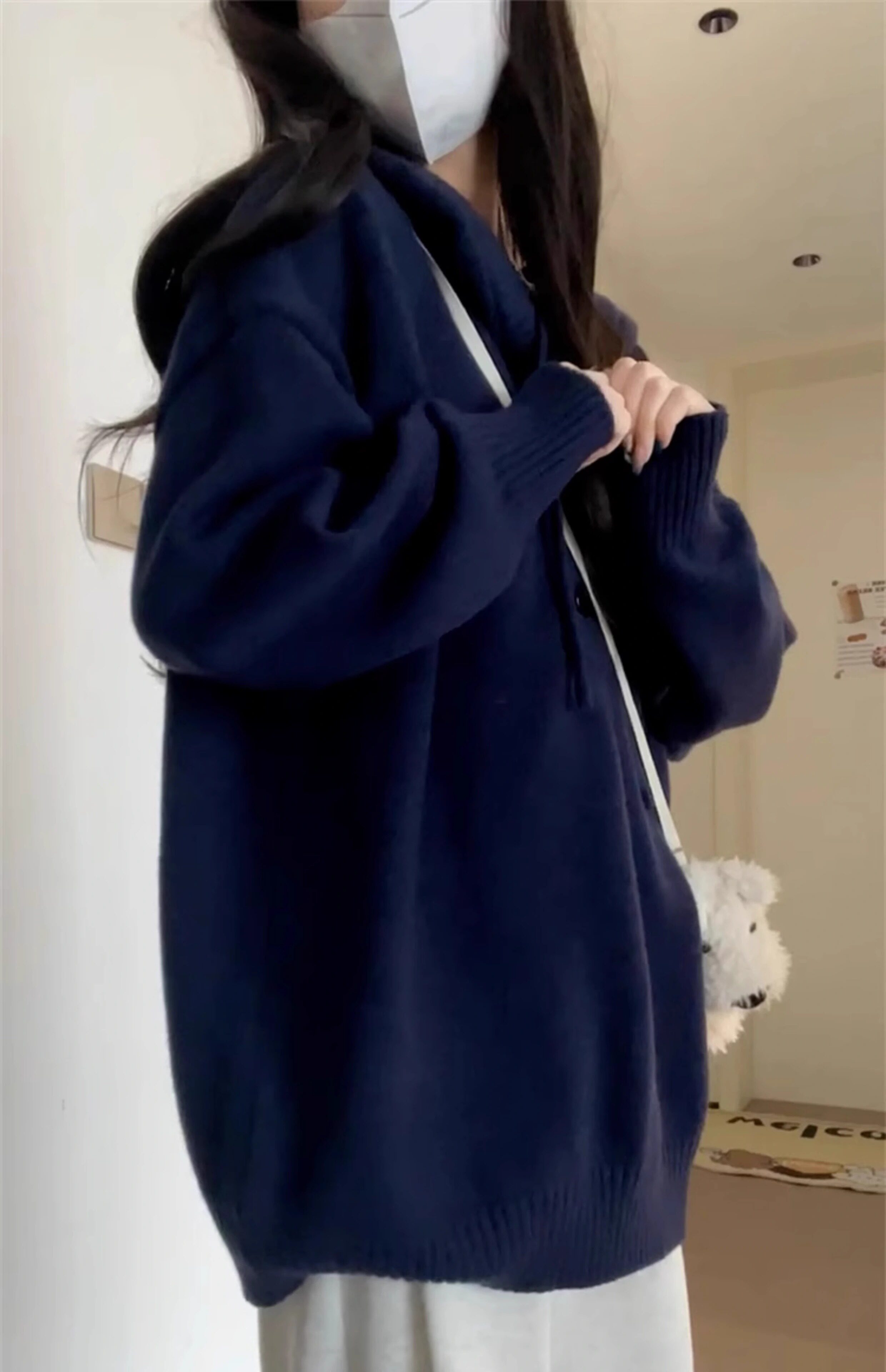 藍色連帽衛衣毛衣女秋冬季2025新款慵懶風高級感寬松韓系針織上衣