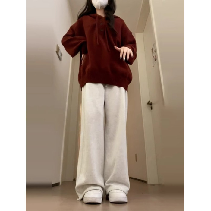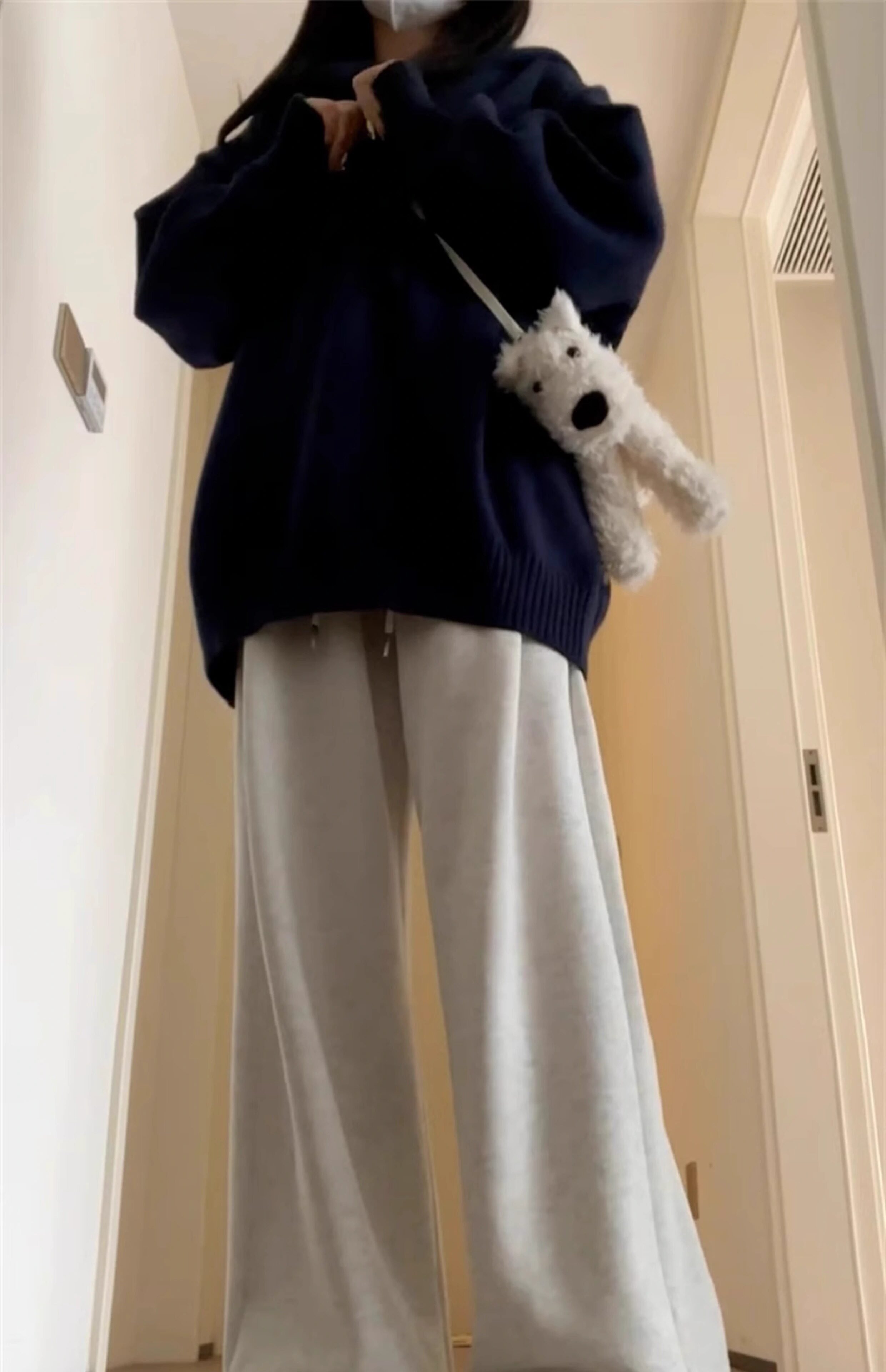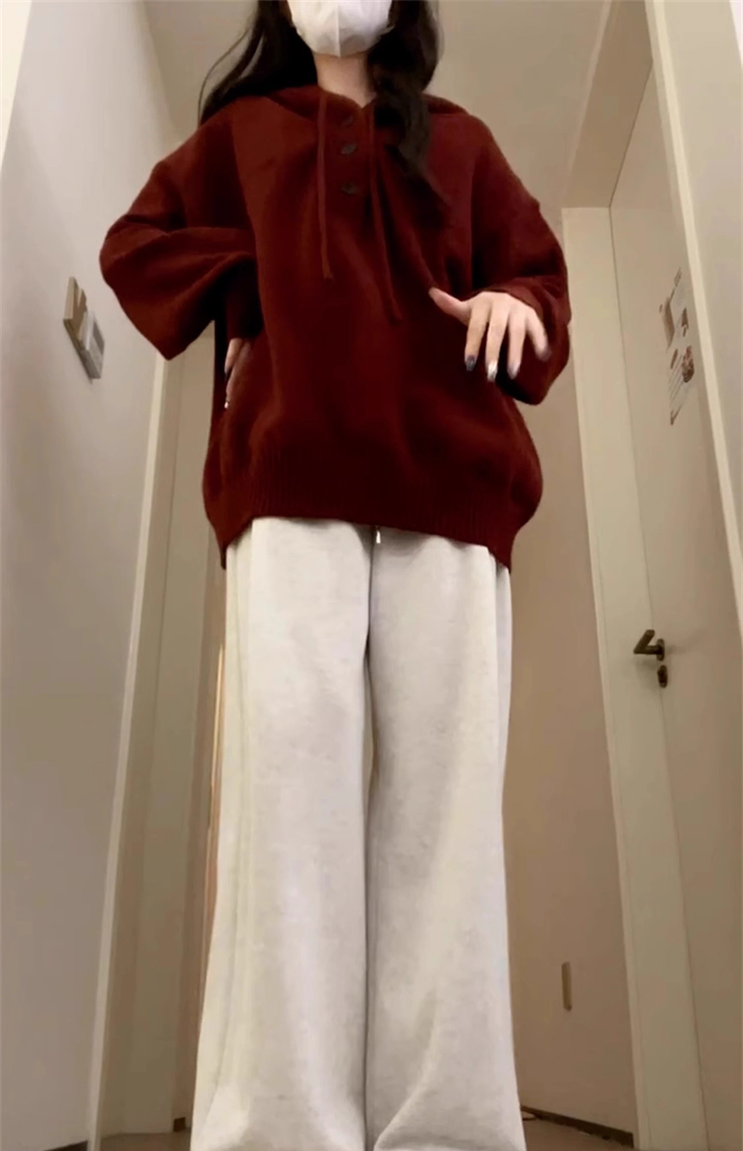 藍色連帽衛衣毛衣女秋冬季2025新款慵懶風高級感寬松韓系針織上衣