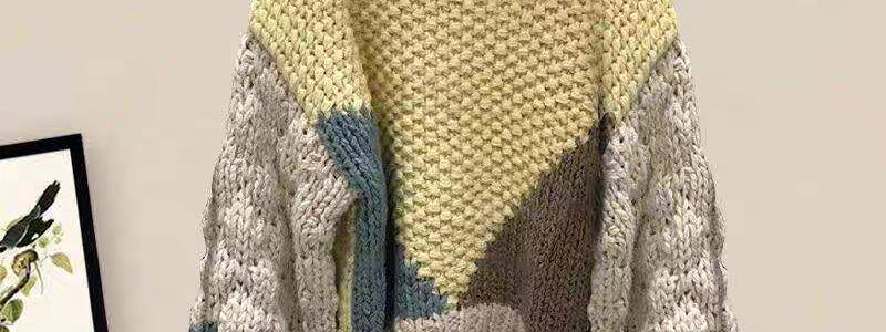 品牌折釦女裝剪標春秋撞色寬松毛衣女慵懶風麻花紋針織衫上衣