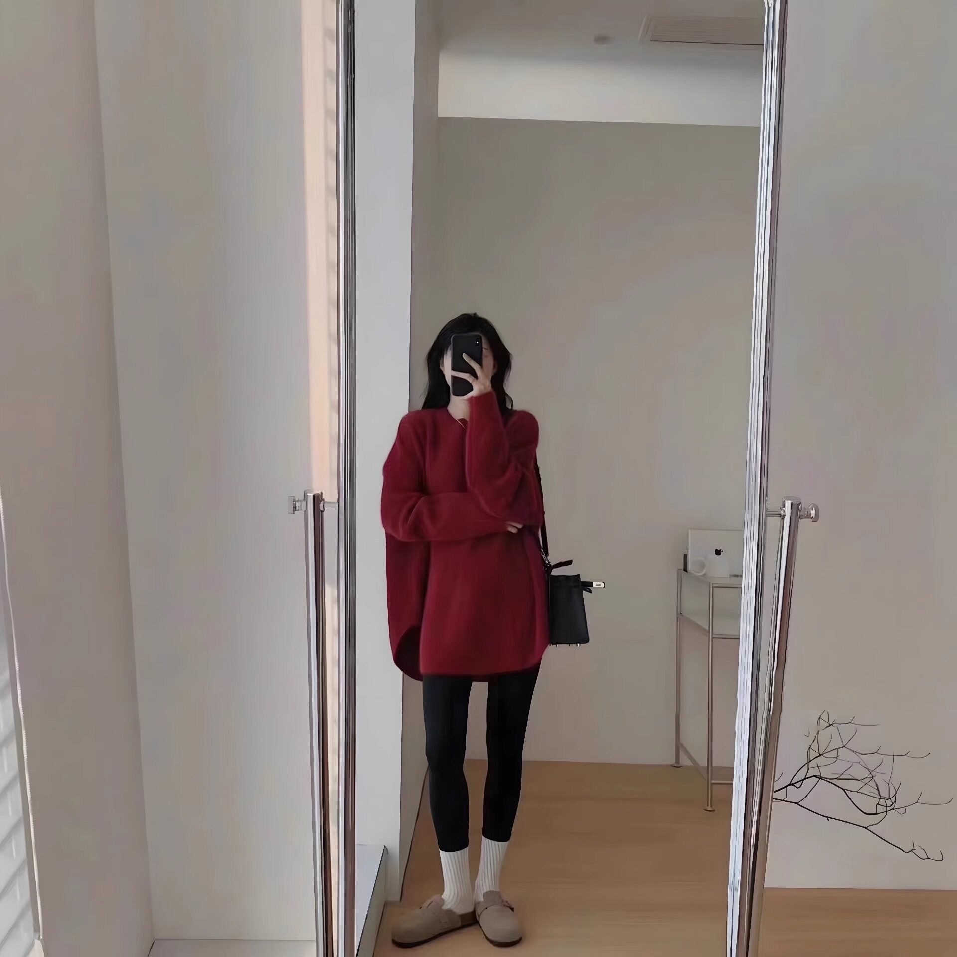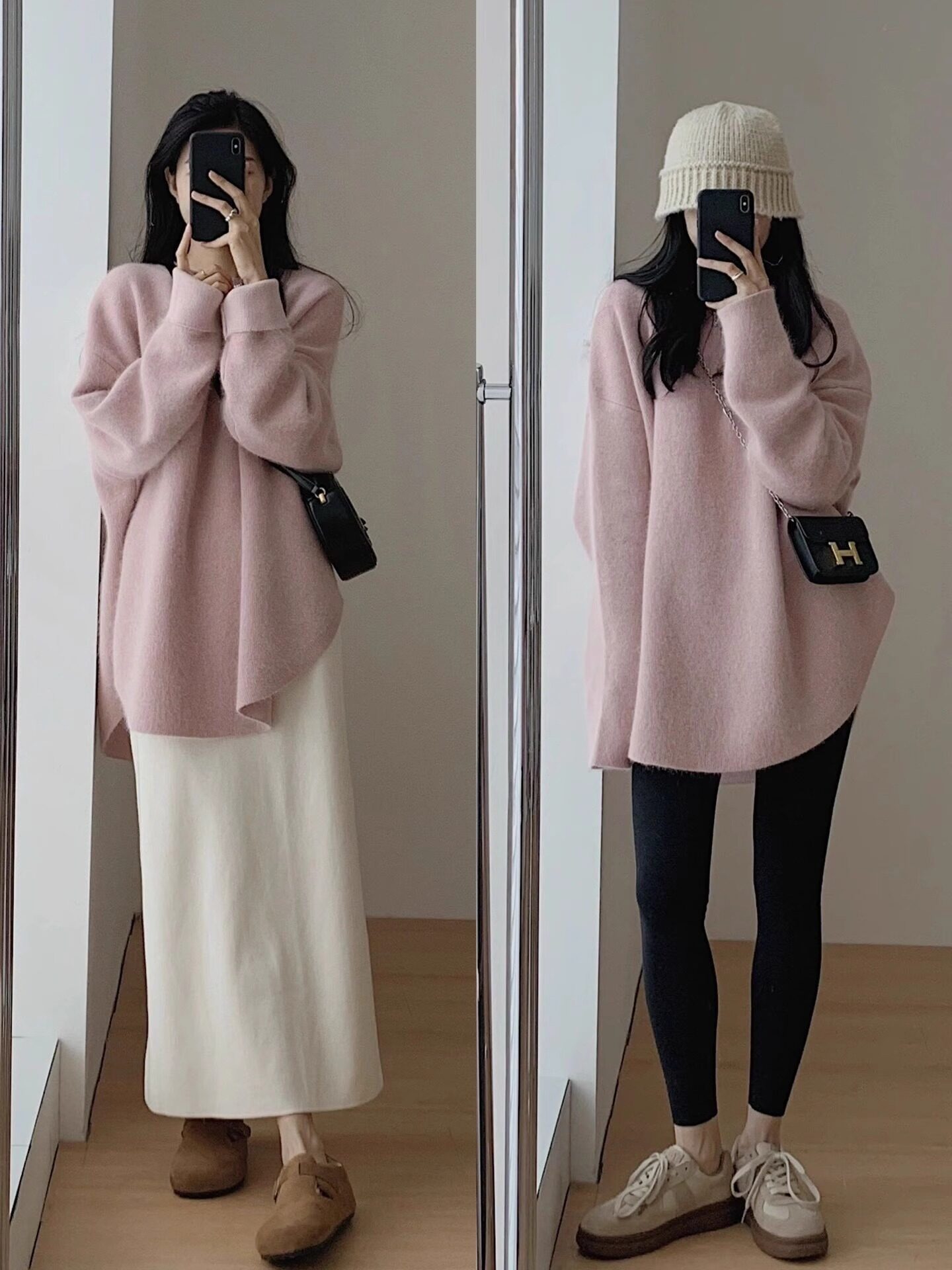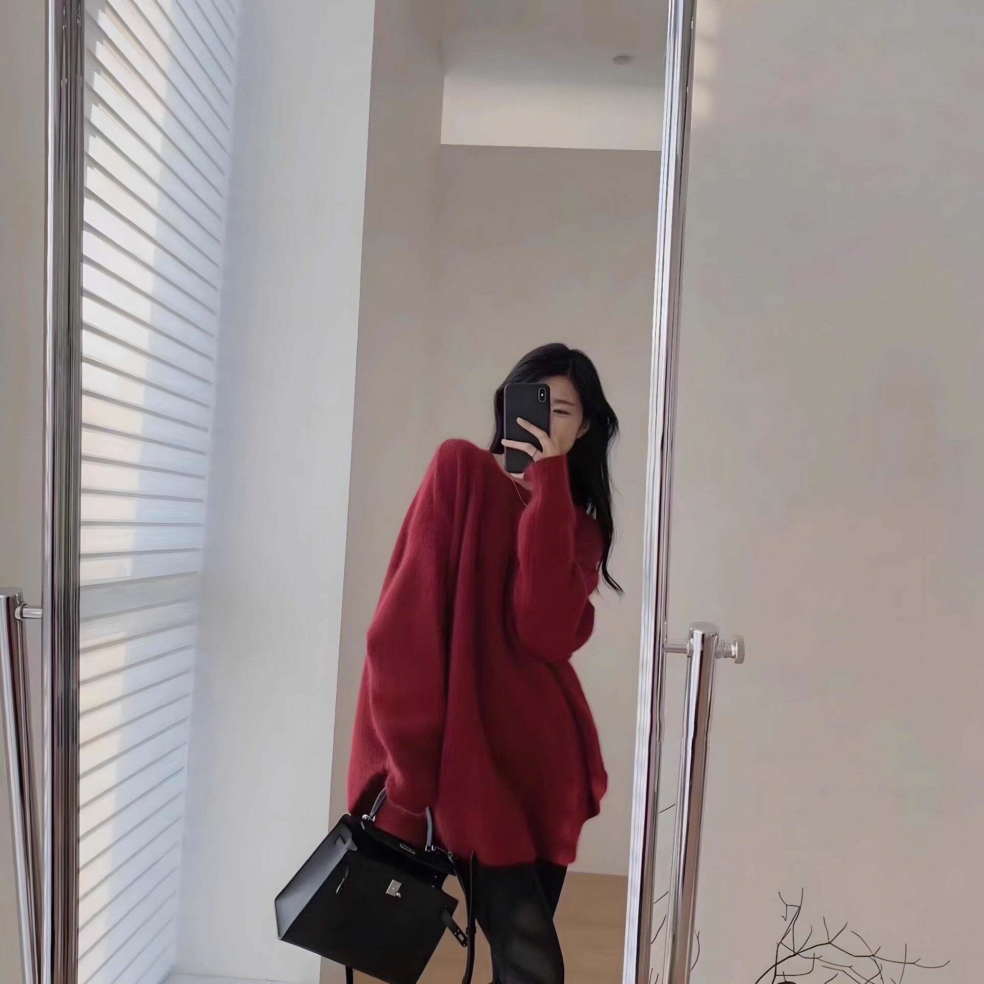 拉夏貝爾浣熊絨毛衣女外穿秋冬加厚日系慵懶上衣中長款開叉針織衫