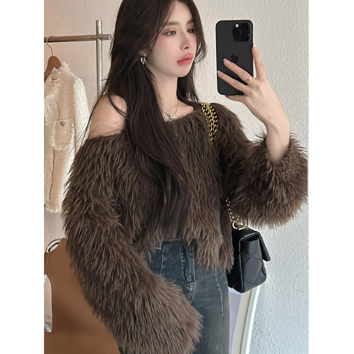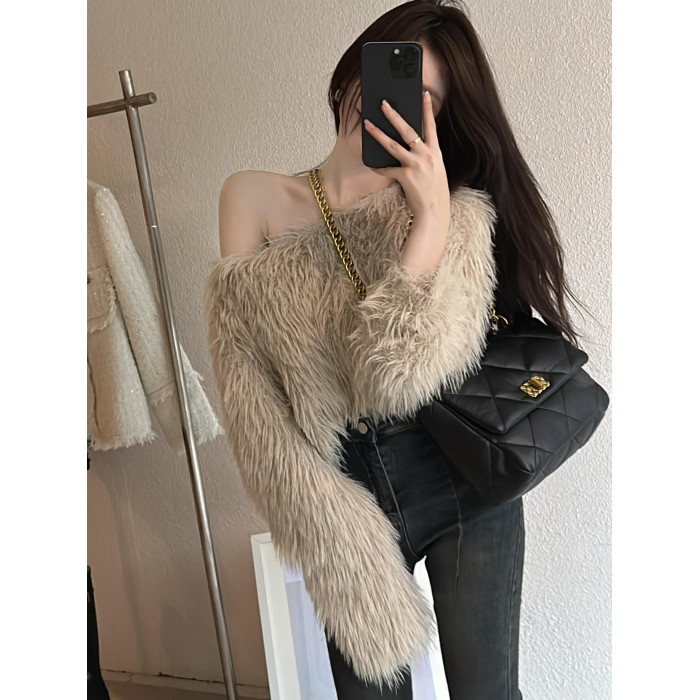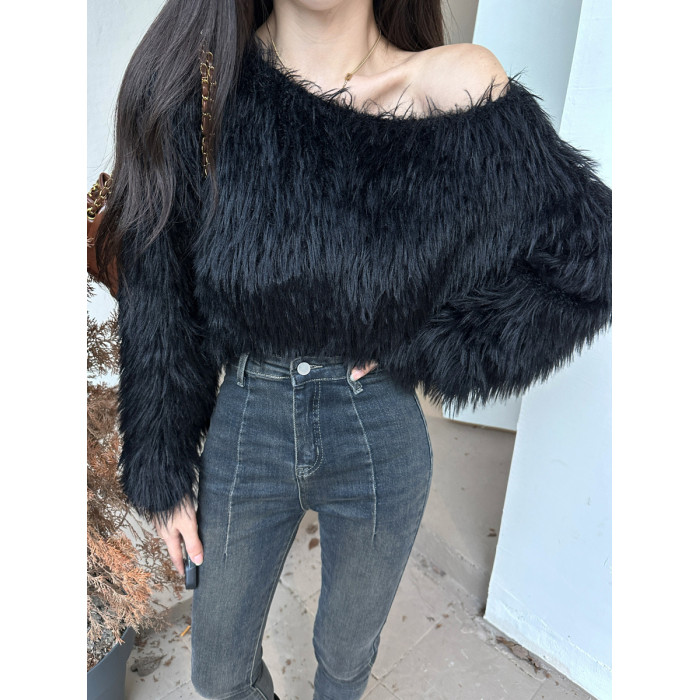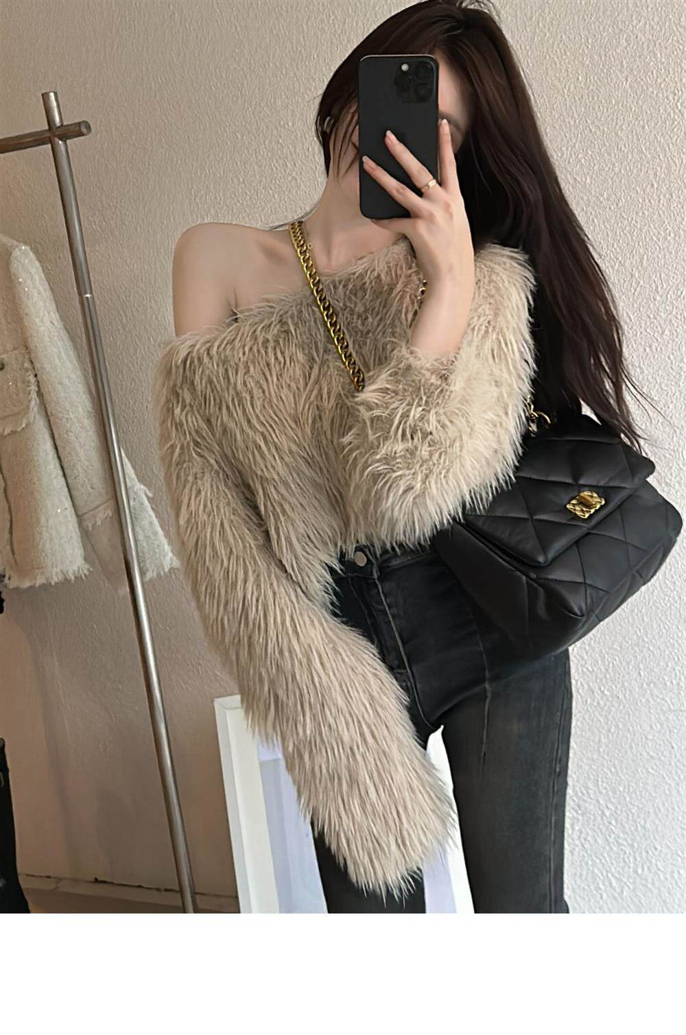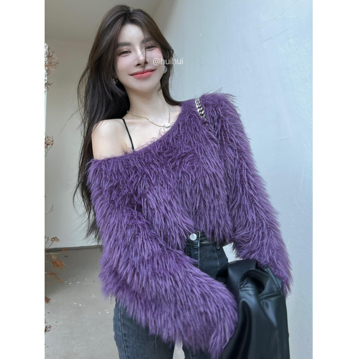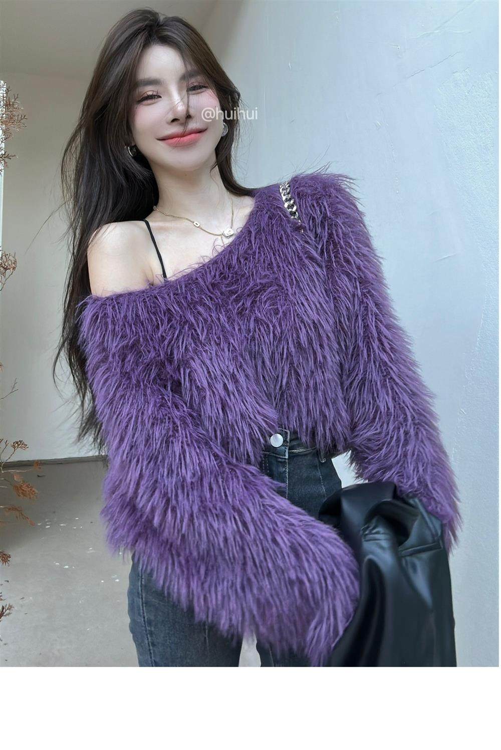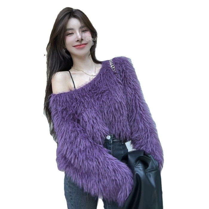 奶系穿搭套頭軟糯毛衣女長袖上衣秋冬裝韓系慵懶風格海馬毛針織衫