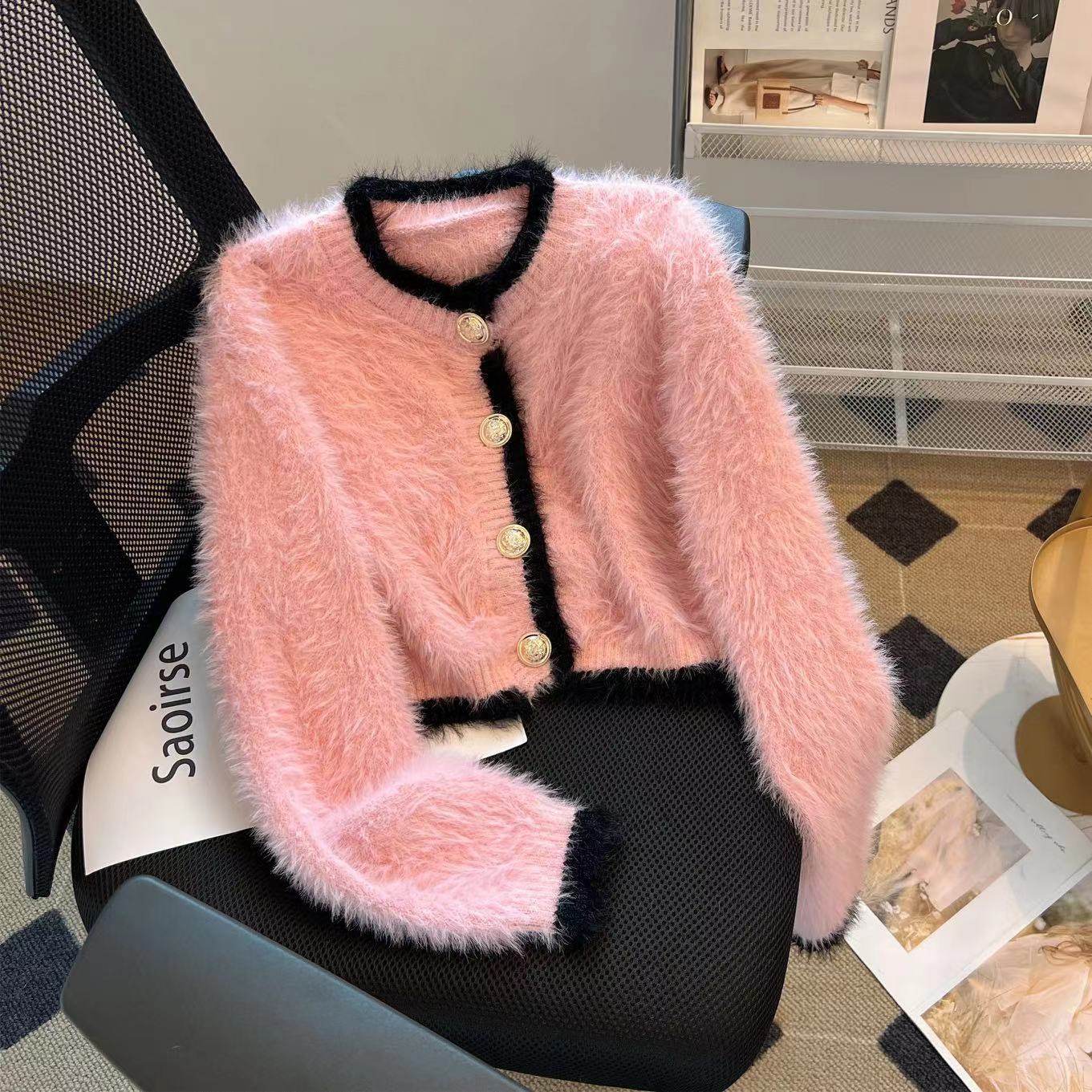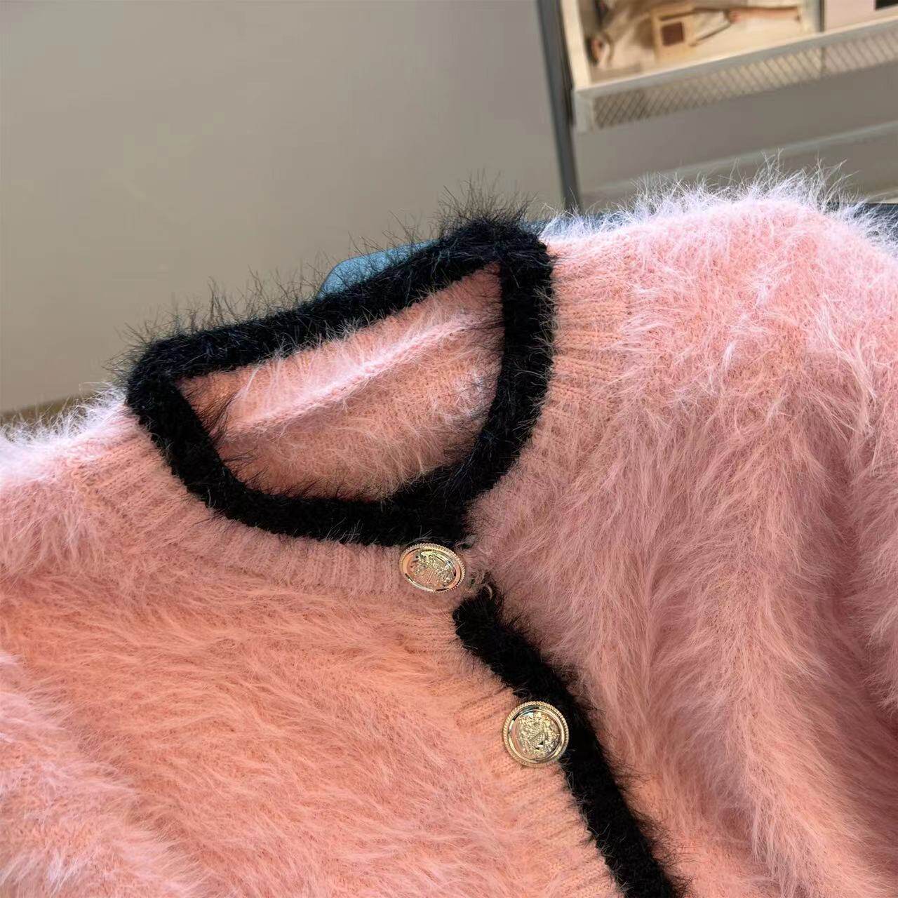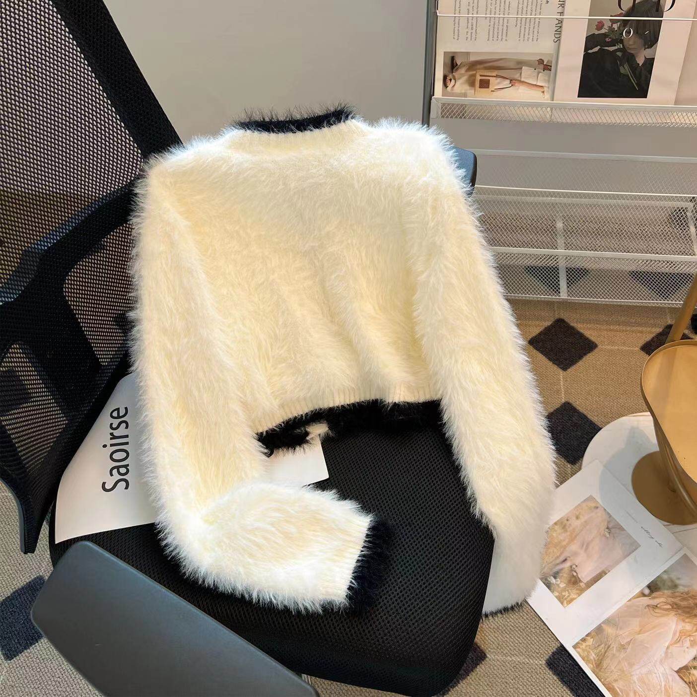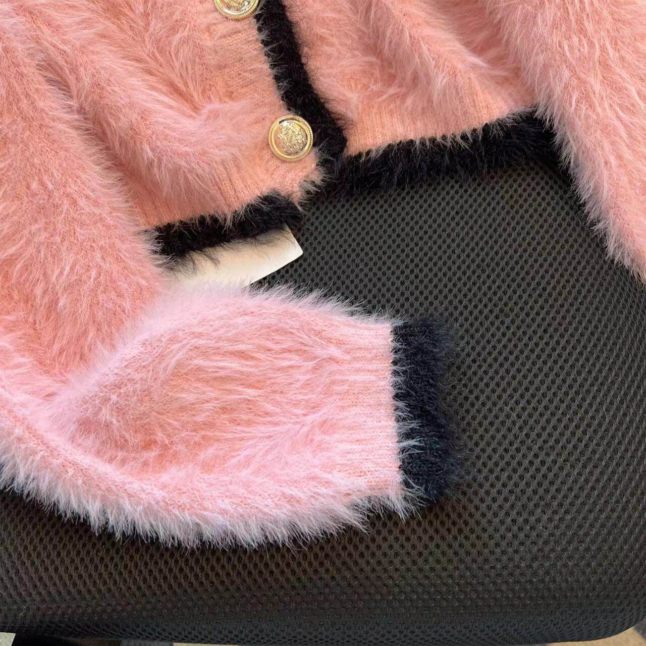 專櫃撤迴國際大牌剪標小香風海馬毛加厚毛衣女秋冬短款針織衫上衣