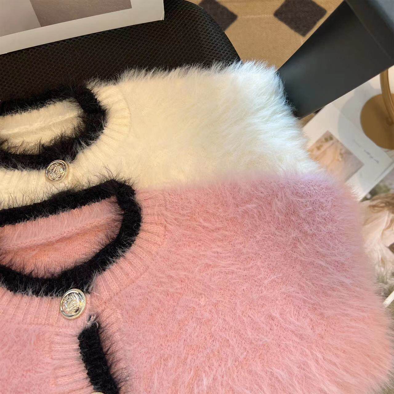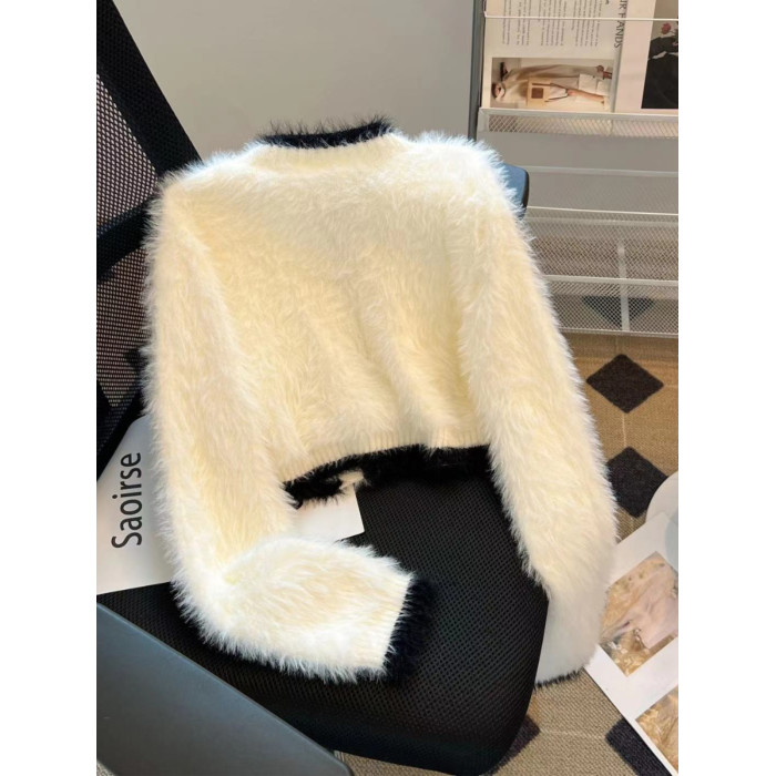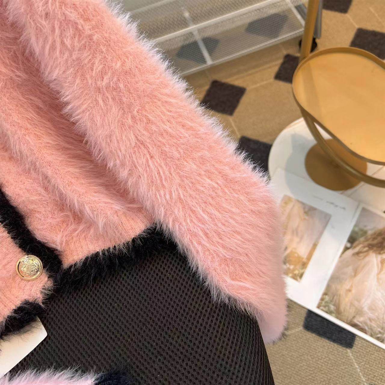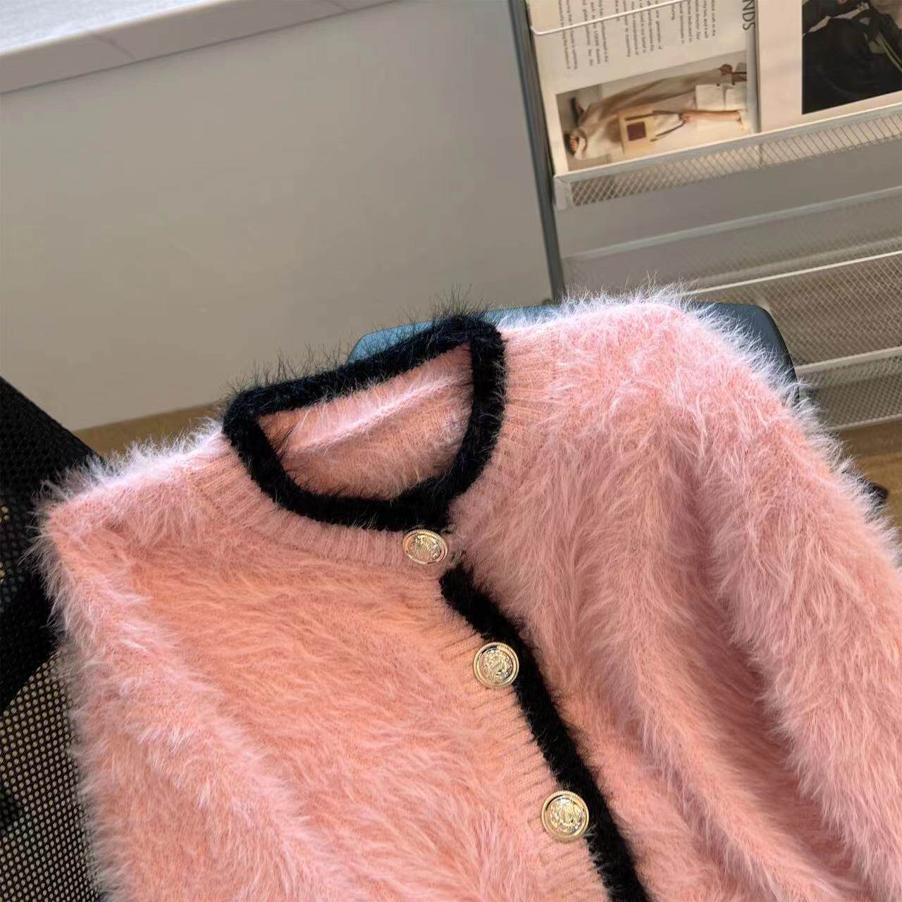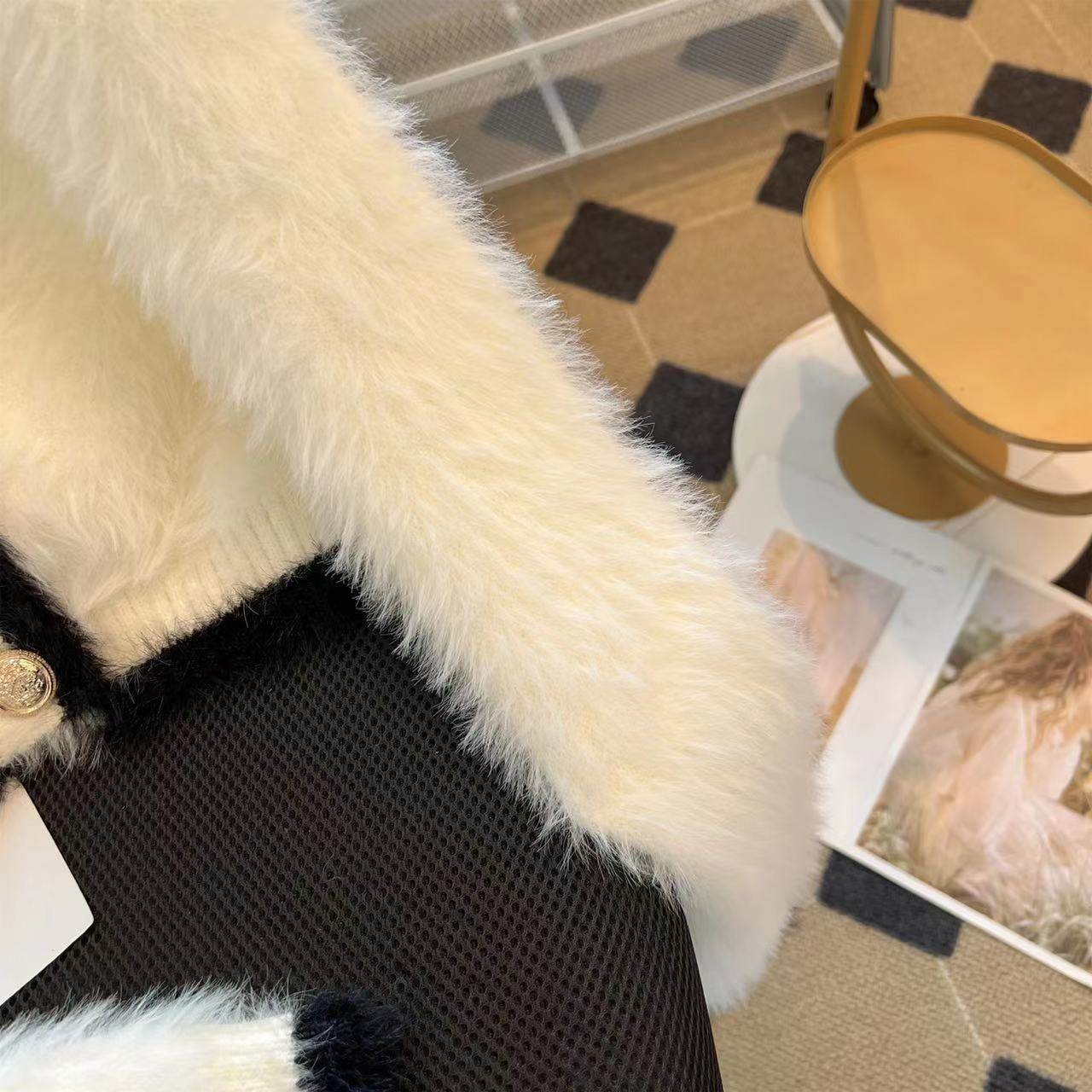 專櫃撤迴國際大牌剪標小香風海馬毛加厚毛衣女秋冬短款針織衫上衣