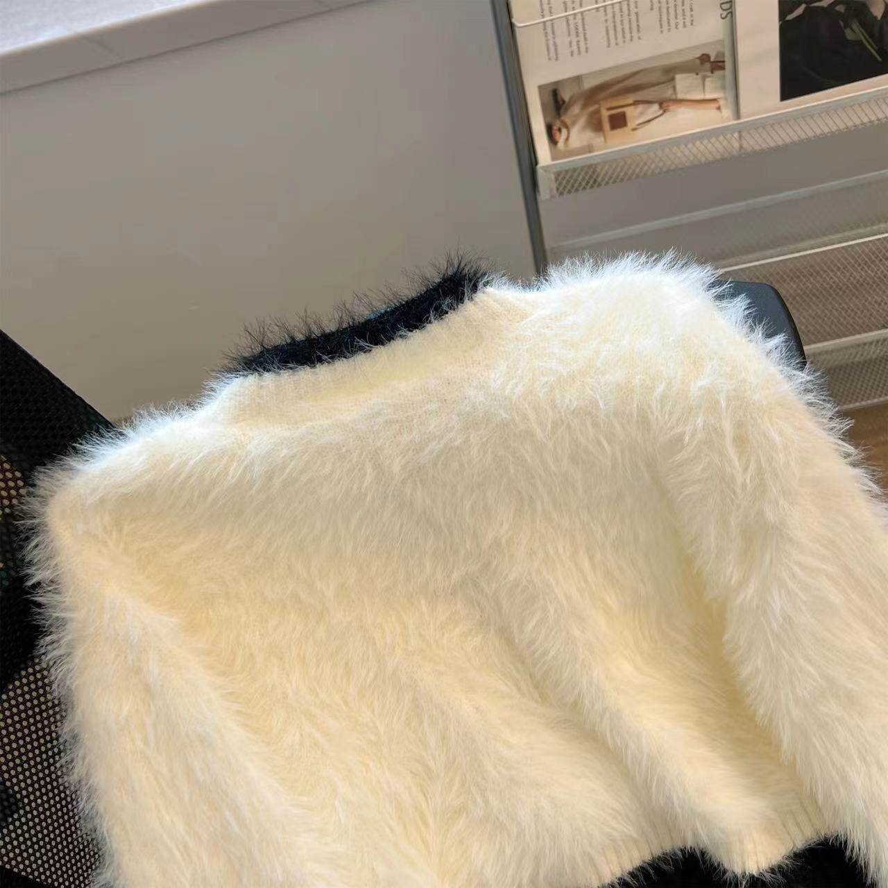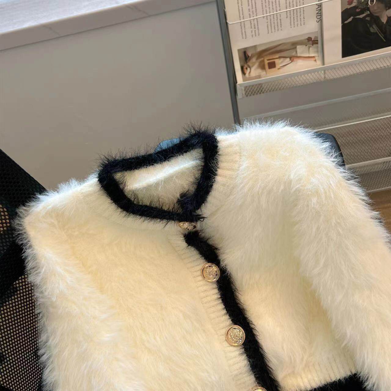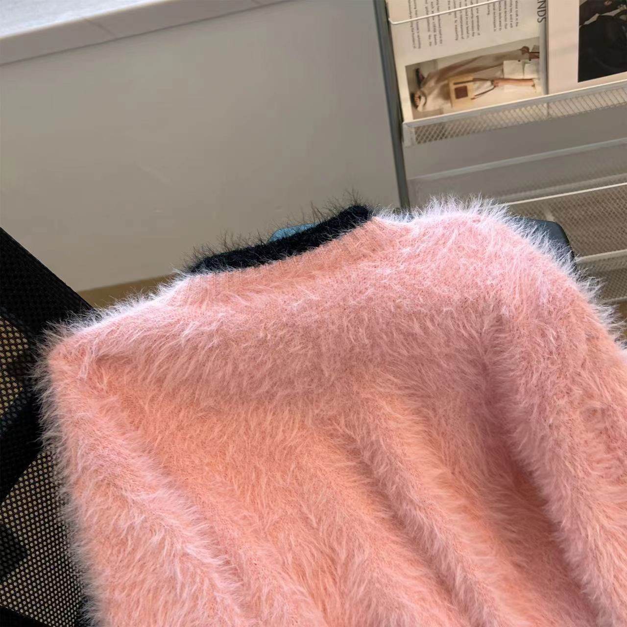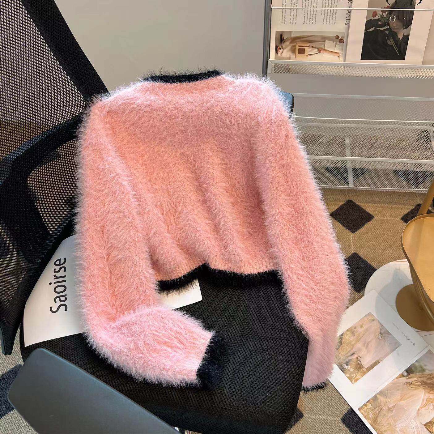 專櫃撤迴國際大牌剪標小香風海馬毛加厚毛衣女秋冬短款針織衫上衣