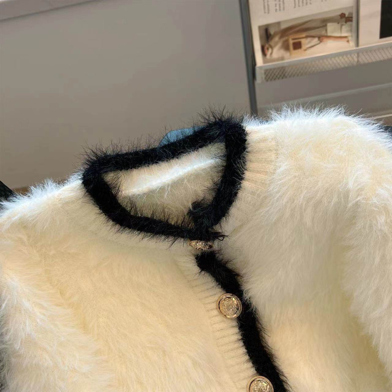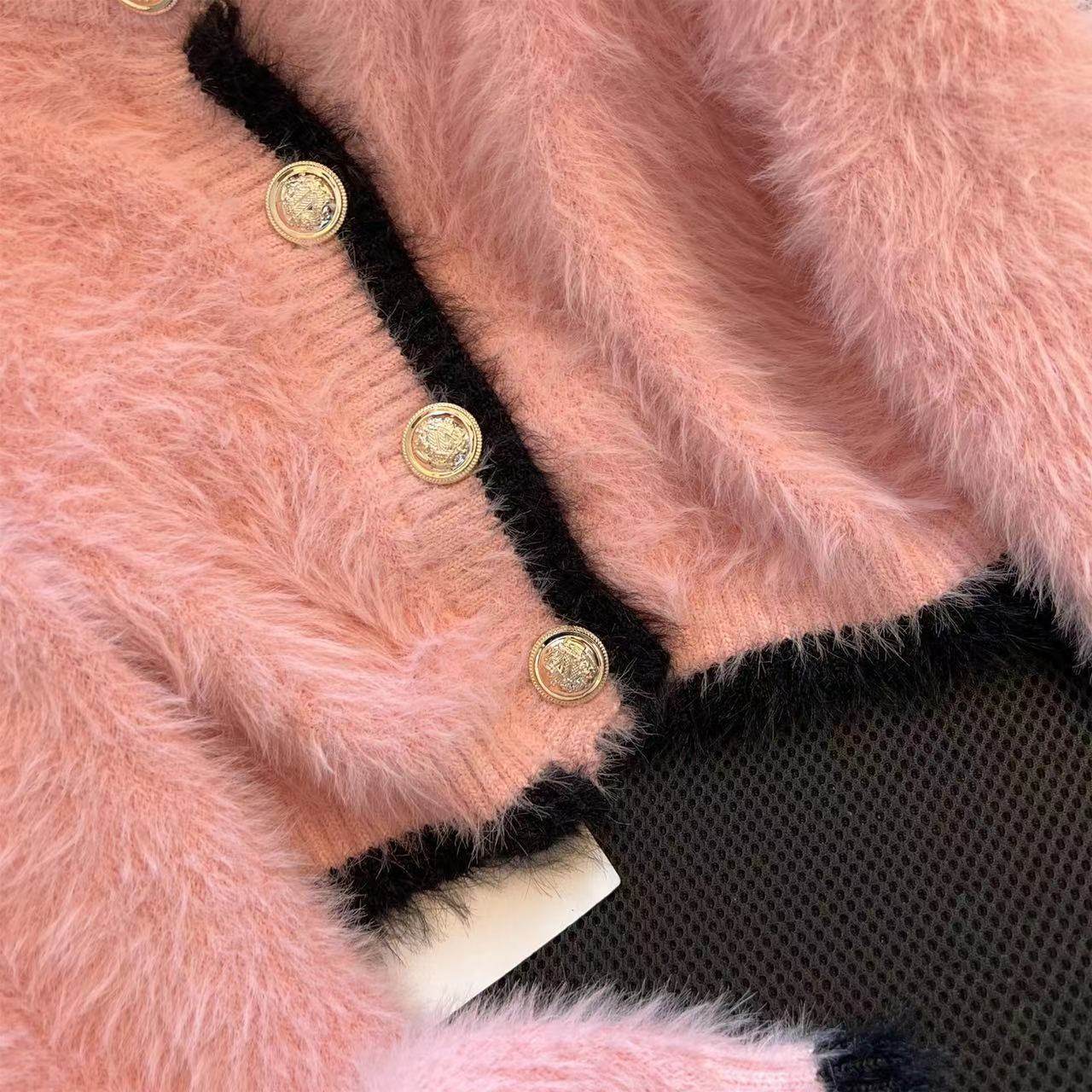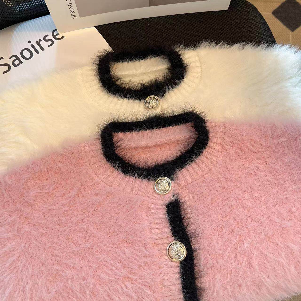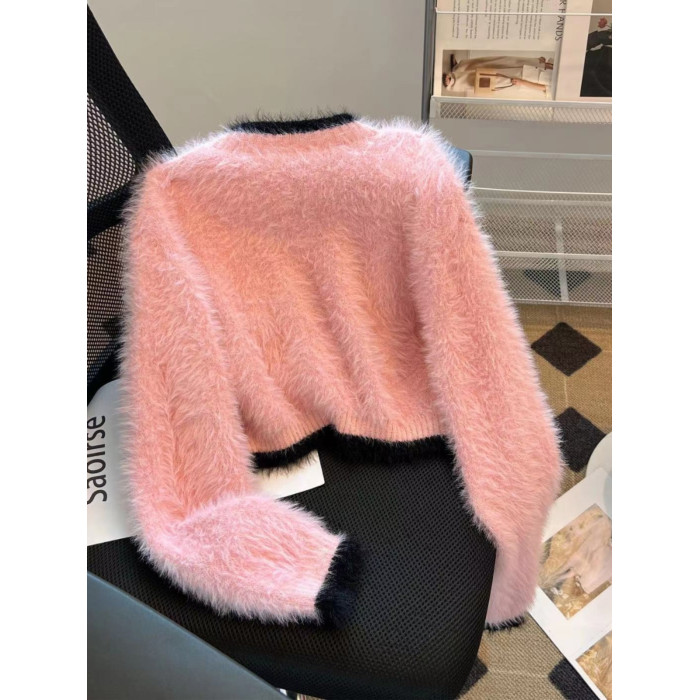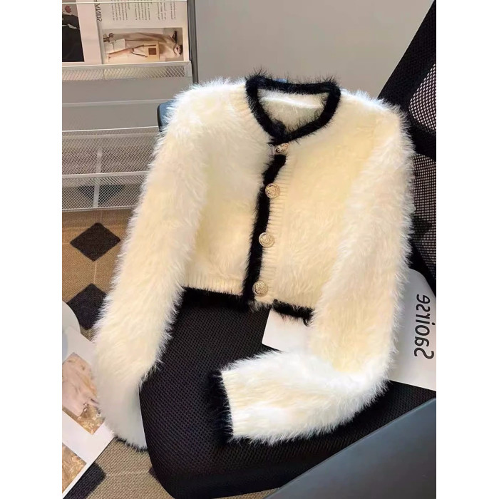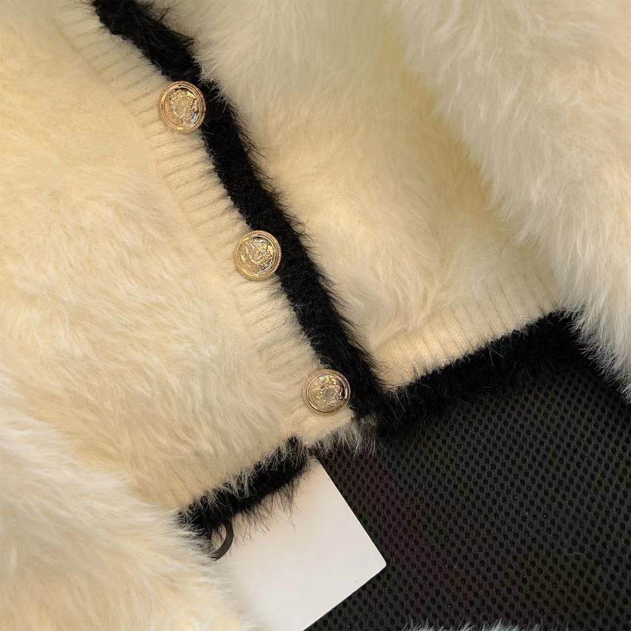 專櫃撤迴國際大牌剪標小香風海馬毛加厚毛衣女秋冬短款針織衫上衣
