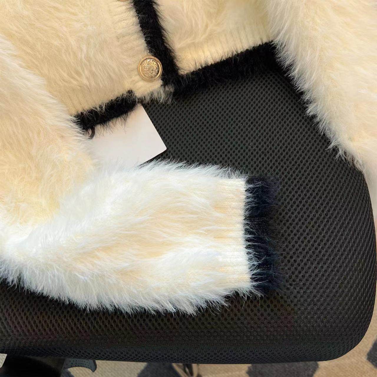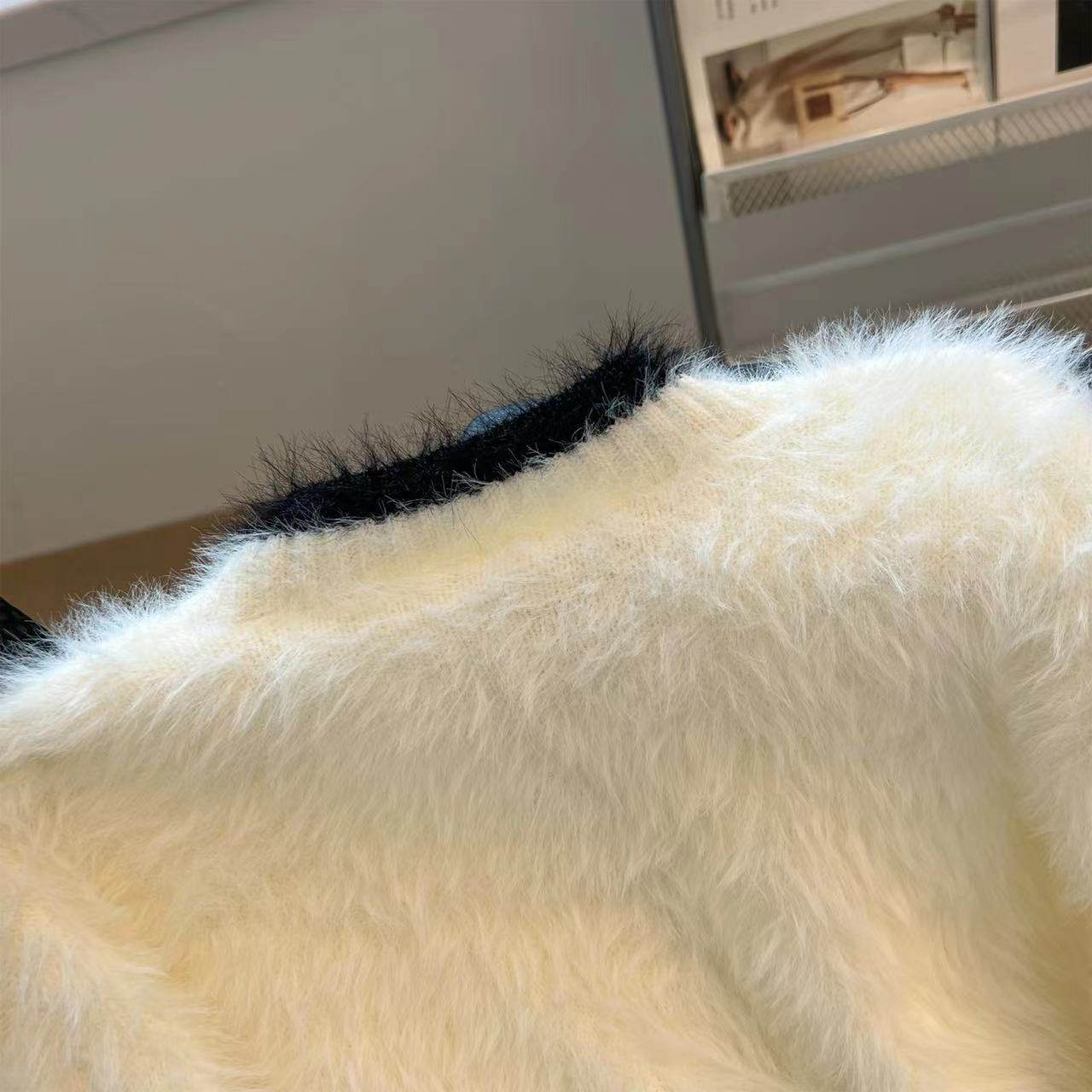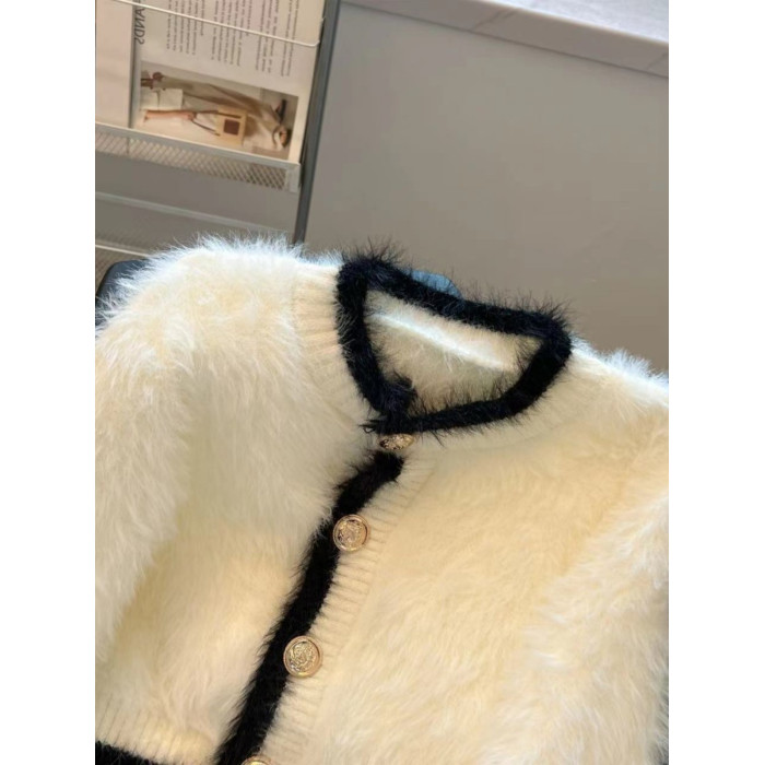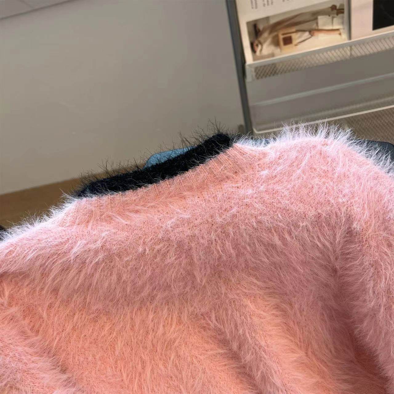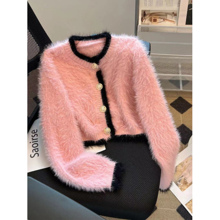 專櫃撤迴國際大牌剪標小香風海馬毛加厚毛衣女秋冬短款針織衫上衣