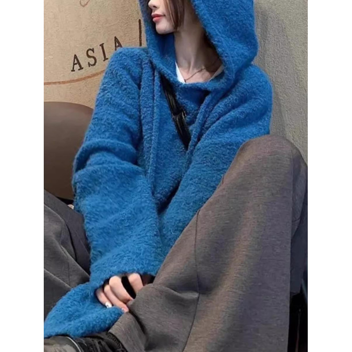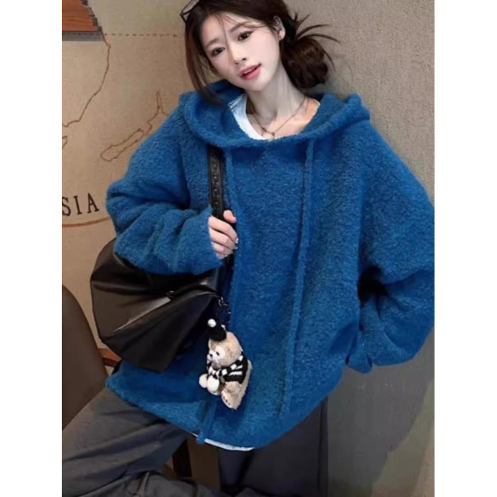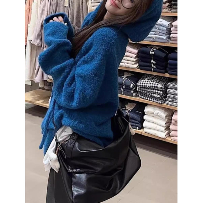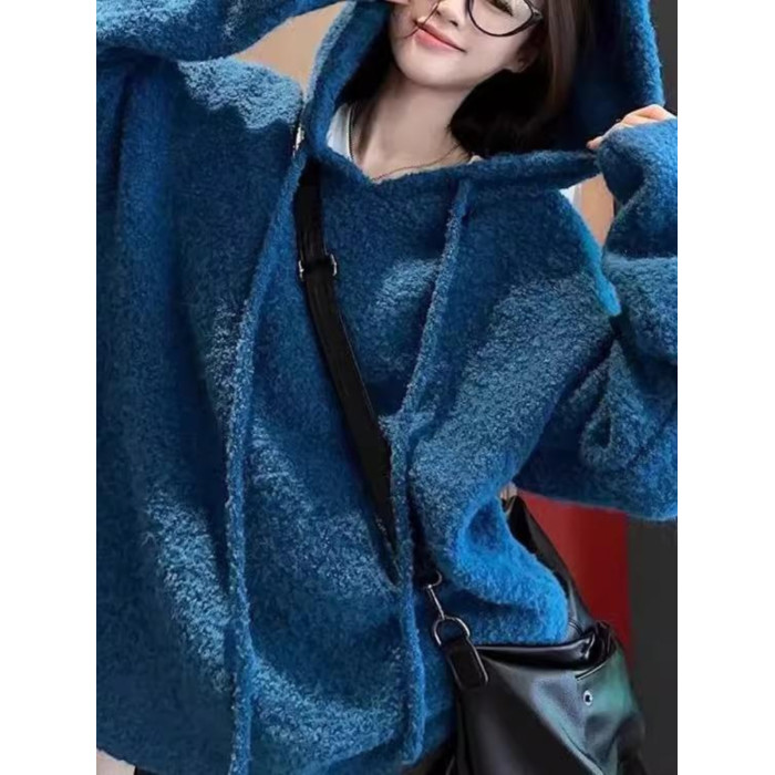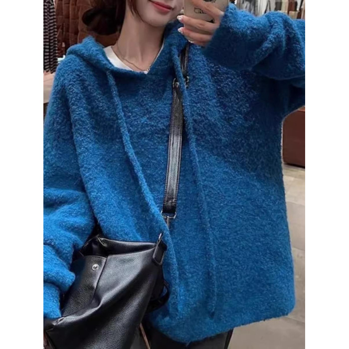 韓系慵懶風軟糯圈圈紗連帽毛衣2024秋冬季新款寬松加厚保暖上衣女