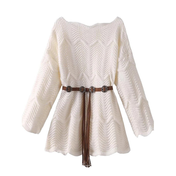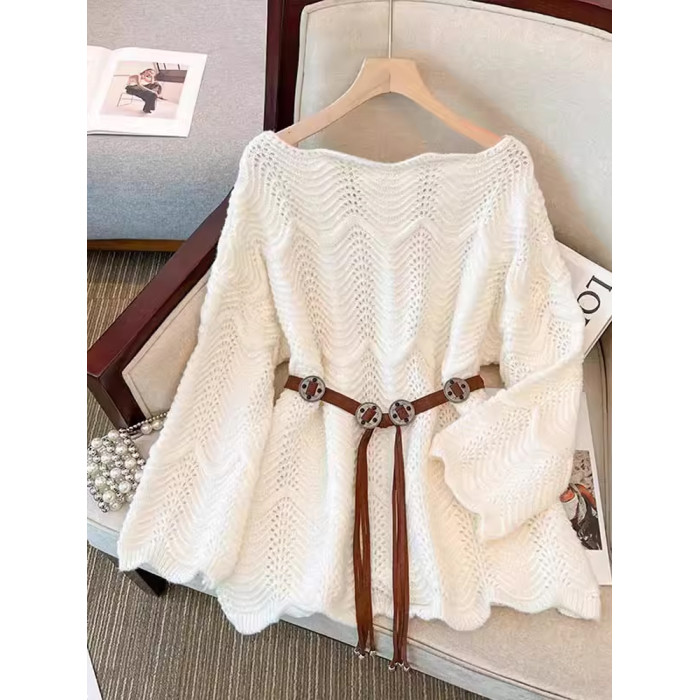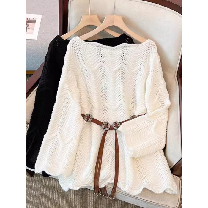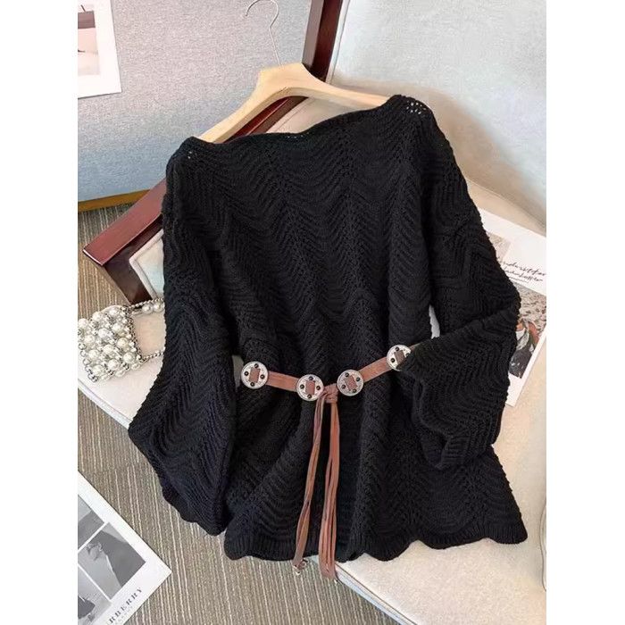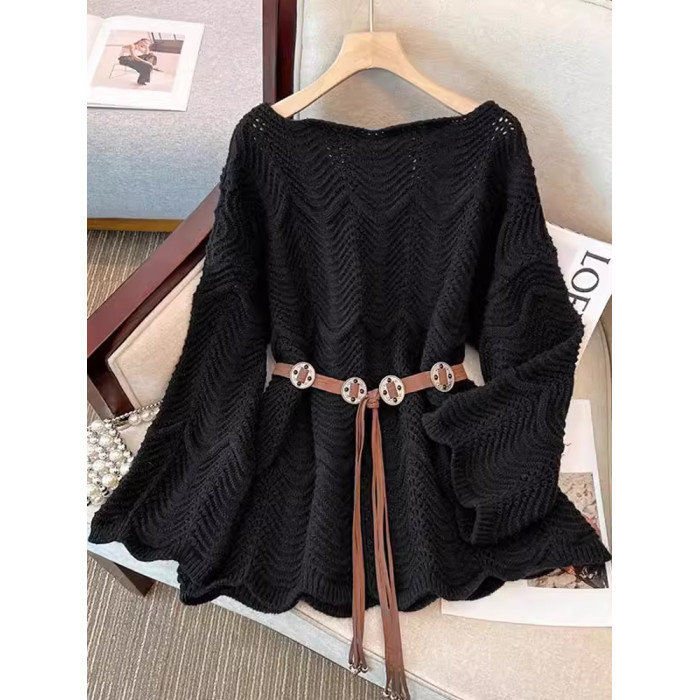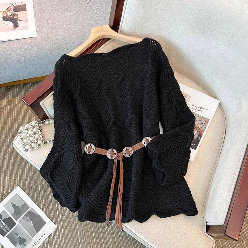 大碼2025春秋新款胖MM女裝長袖純色洋氣減齡腰帶收腰顯瘦針織毛衣