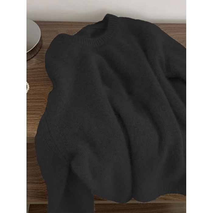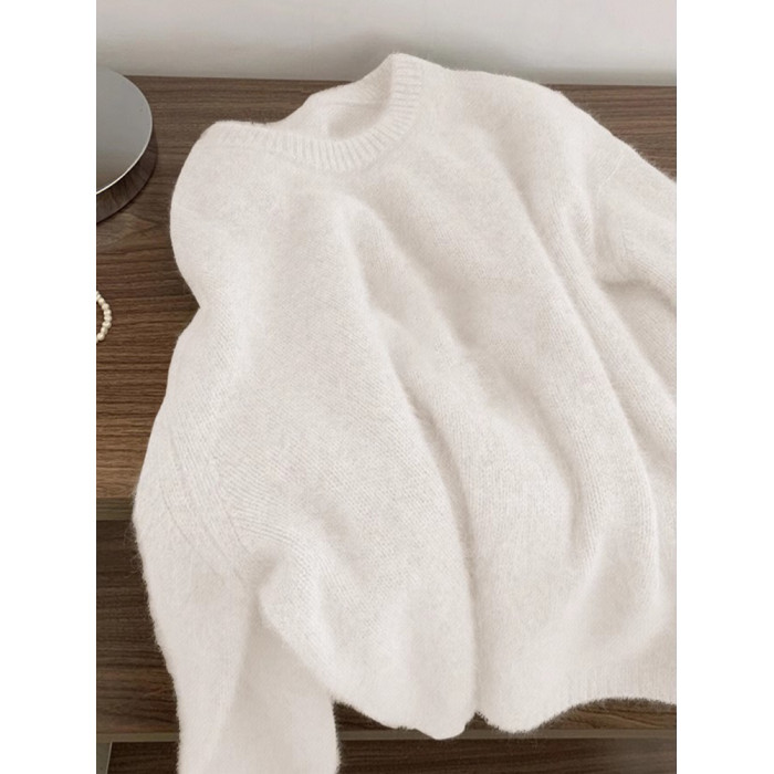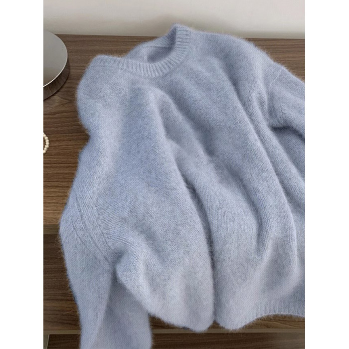 奶藍色毛衣女秋冬加厚內搭小個子圓領軟糯慵懶風寬松羊毛針織上衣