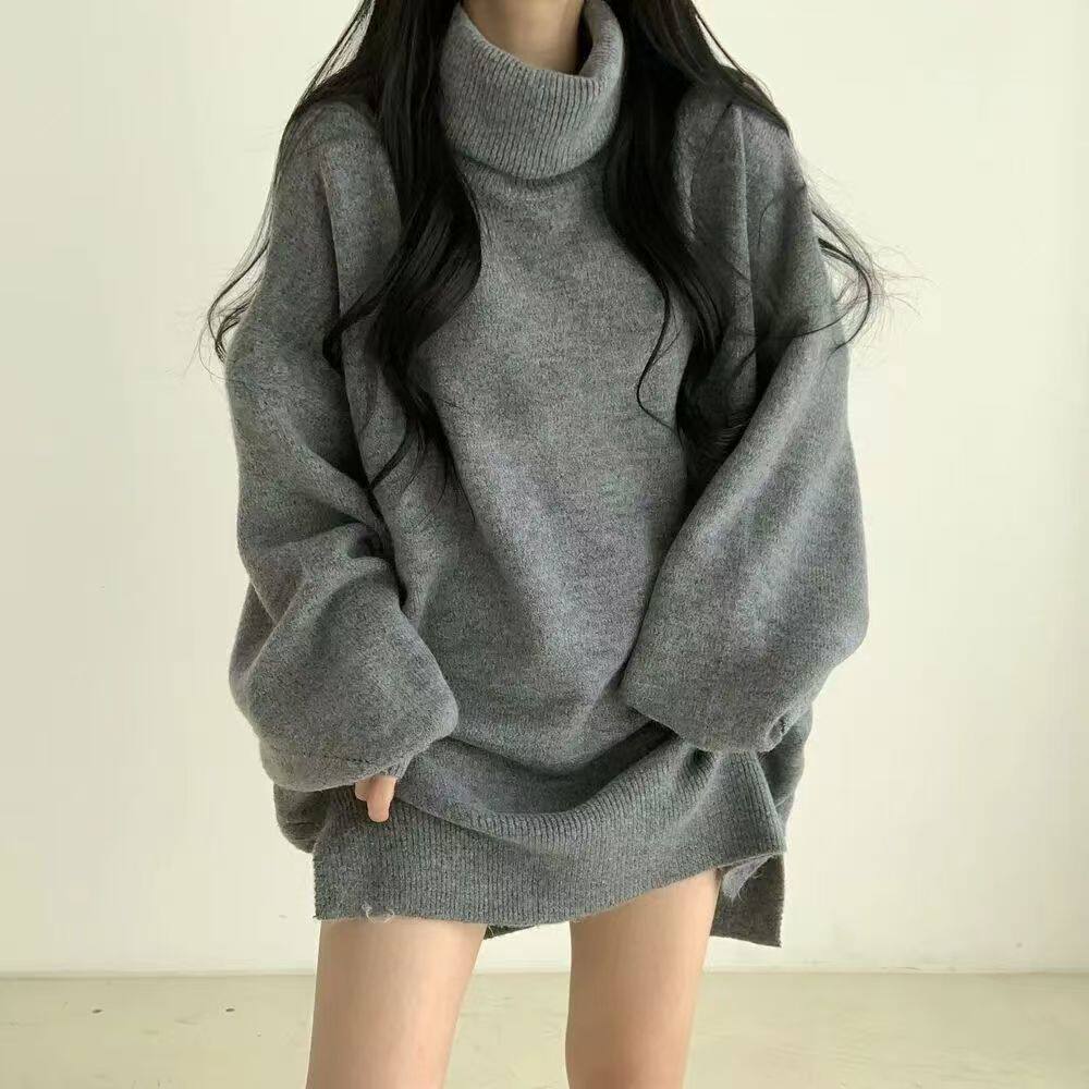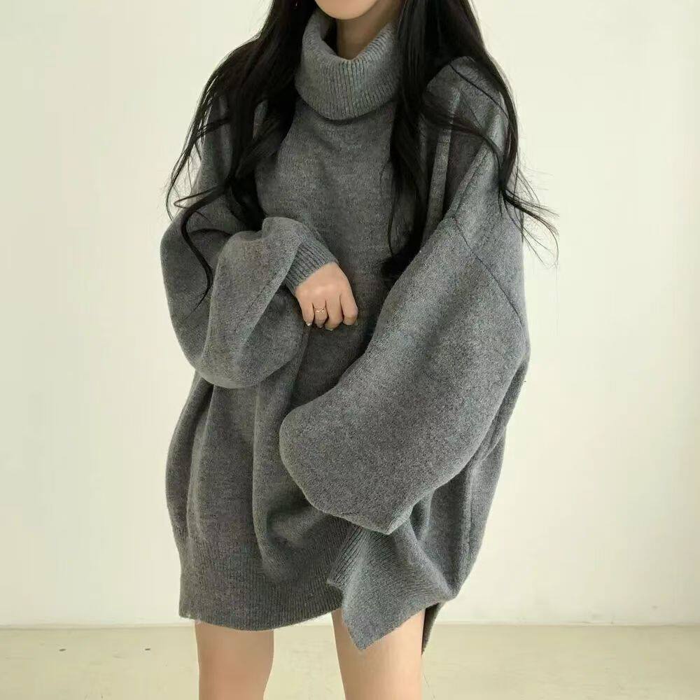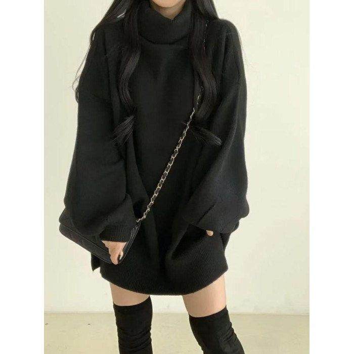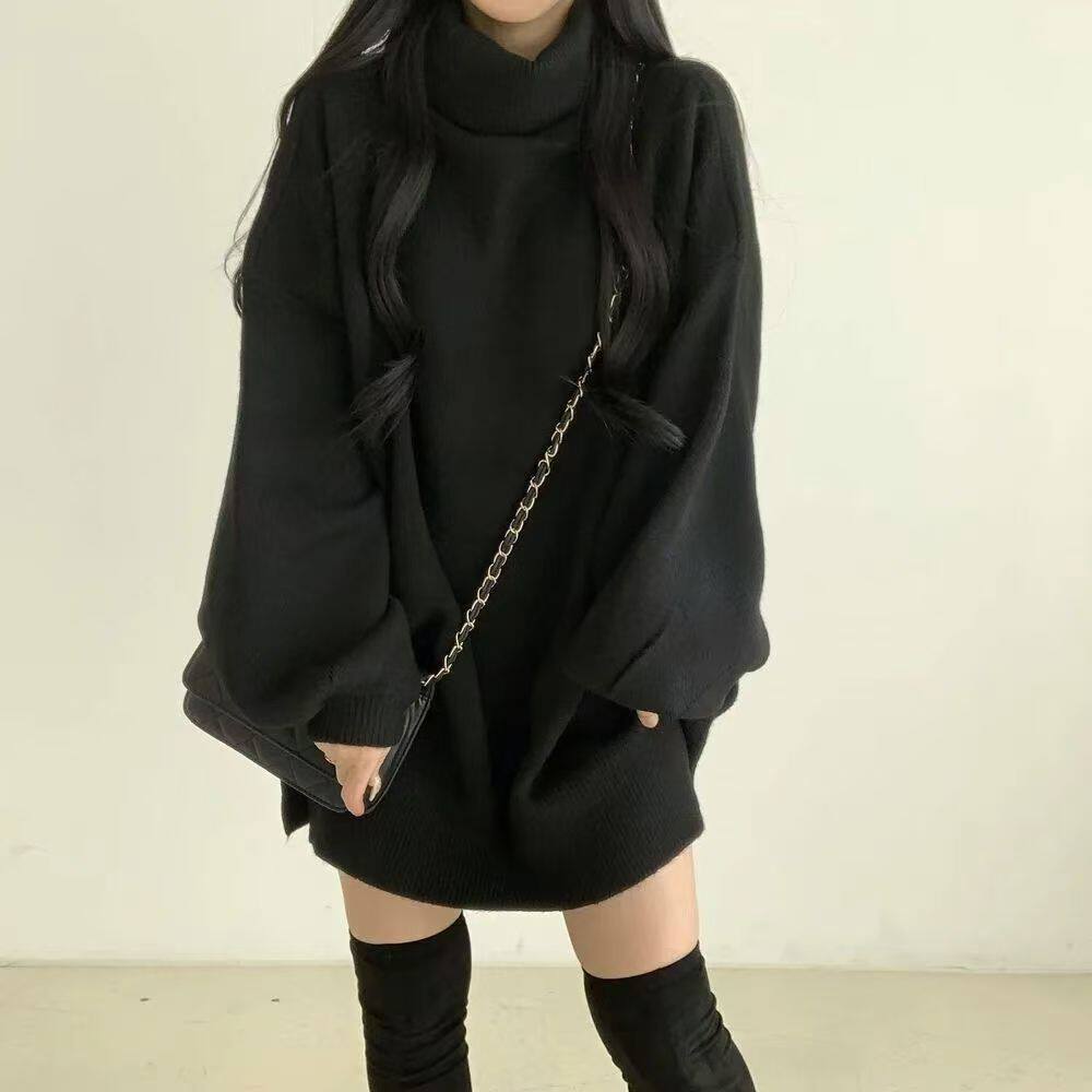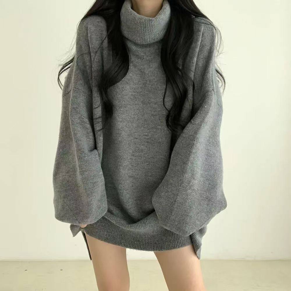 暗黑系高領設計感中長款毛衣女秋冬新款寬松顯瘦開叉上衣保暖外套