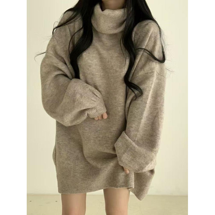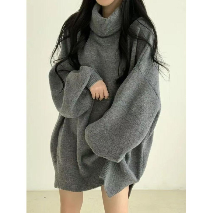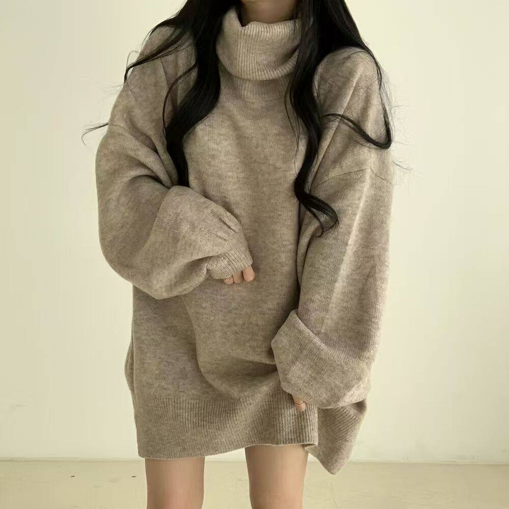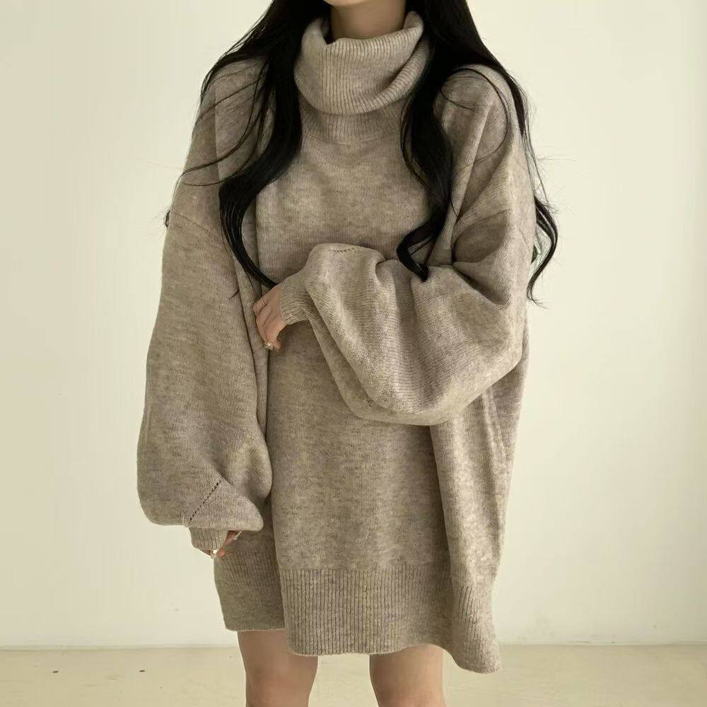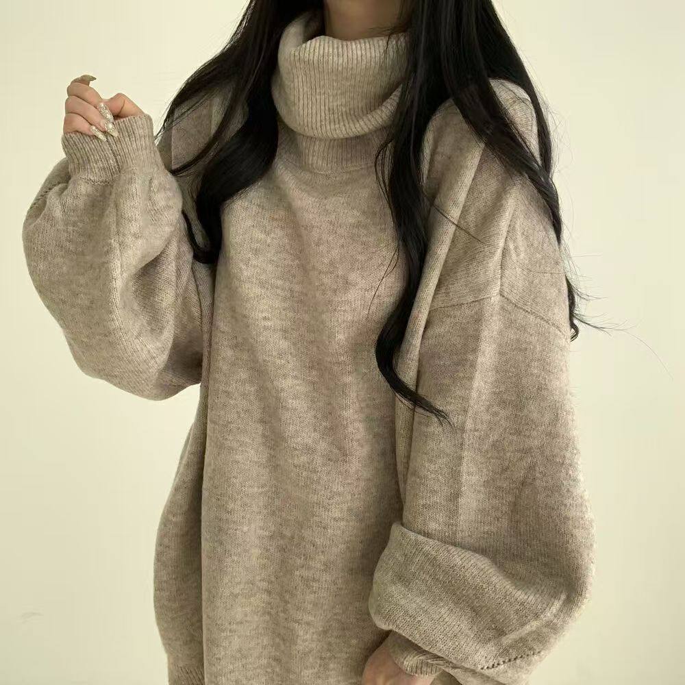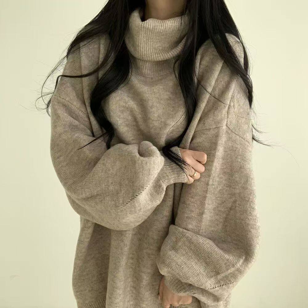 暗黑系高領設計感中長款毛衣女秋冬新款寬松顯瘦開叉上衣保暖外套