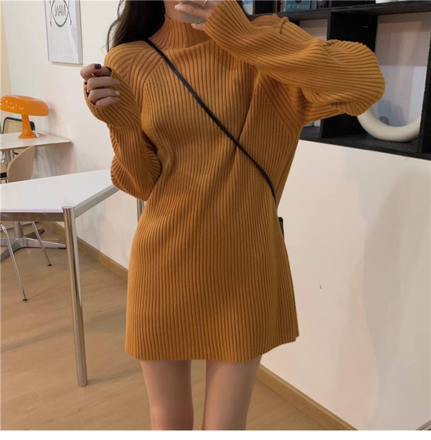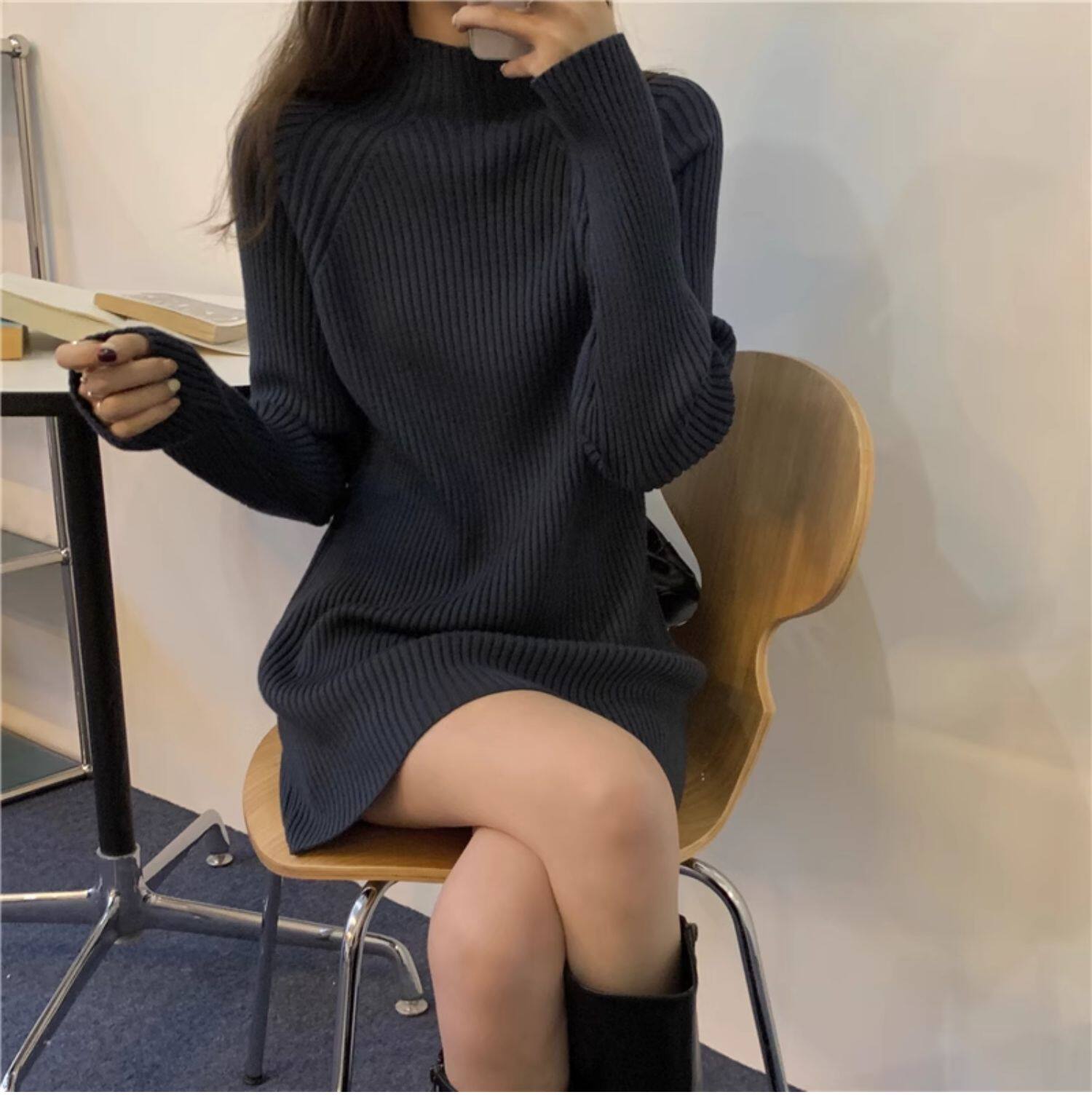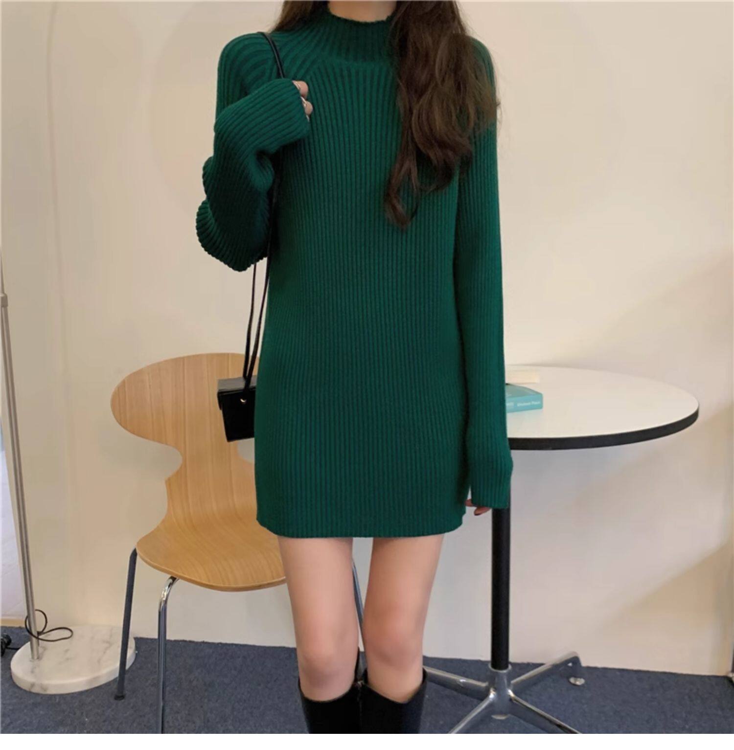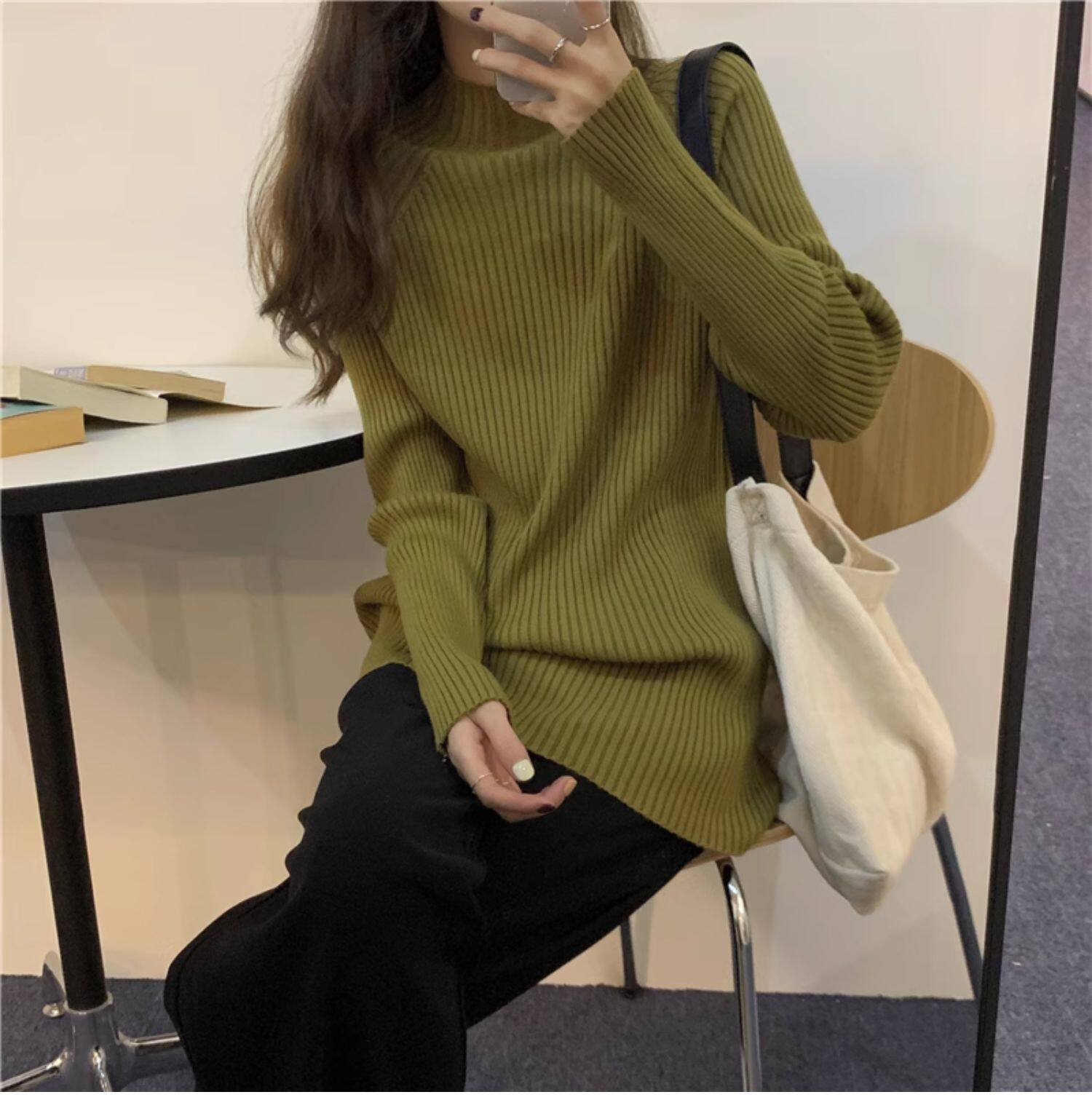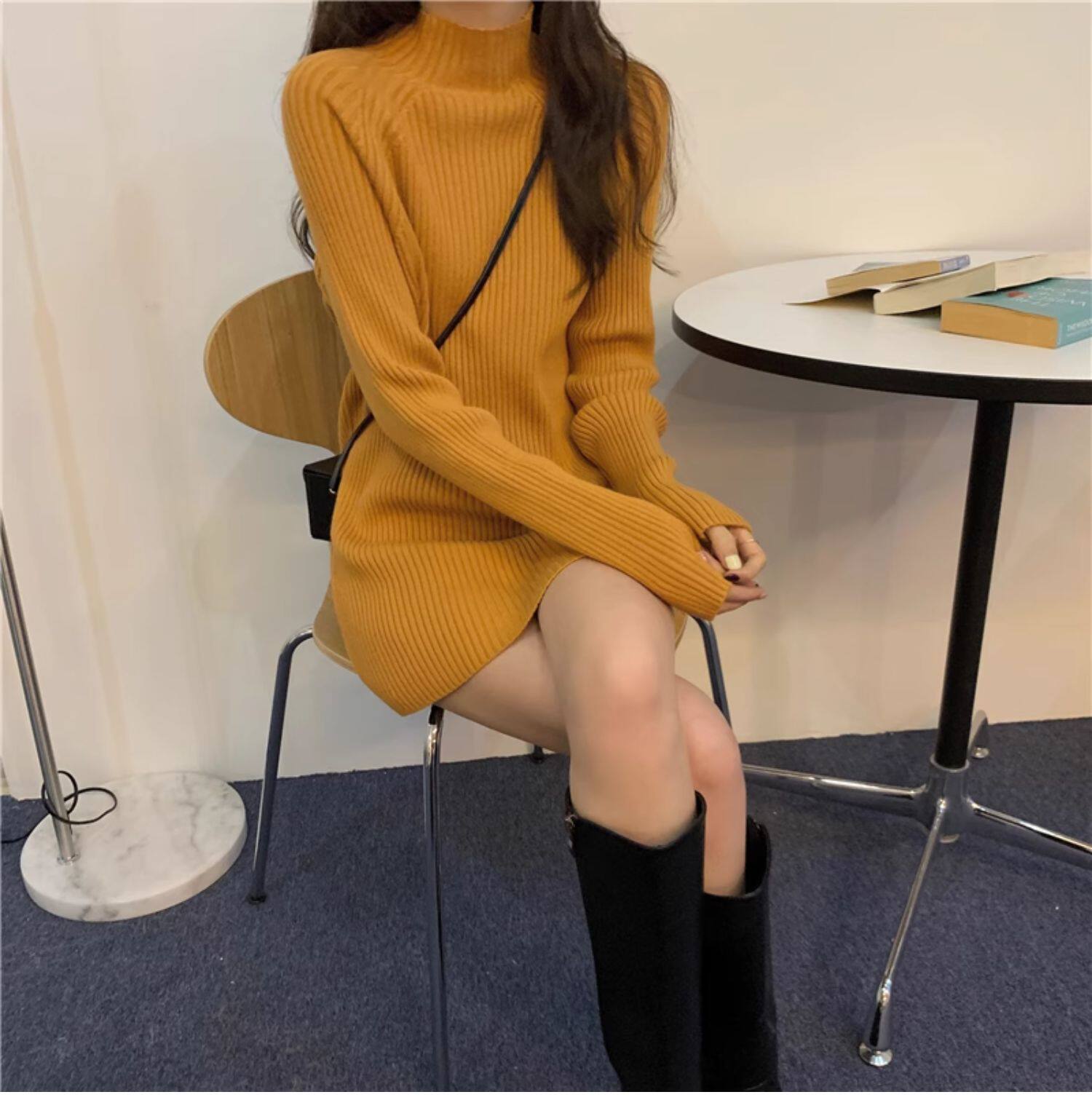 白色中長款半高領針織衫女秋冬小個子配大衣內搭毛衣遮屁股上衣