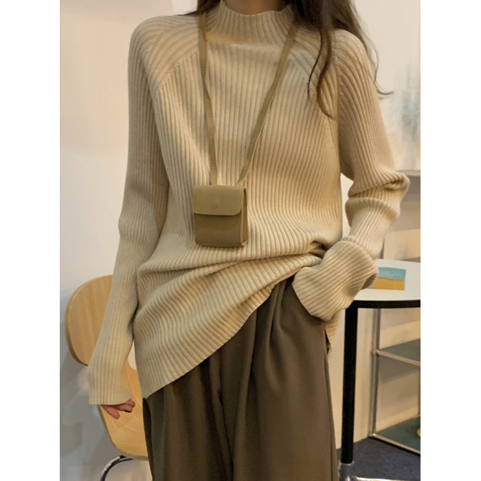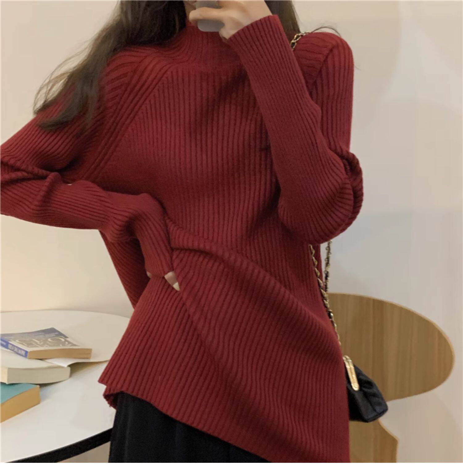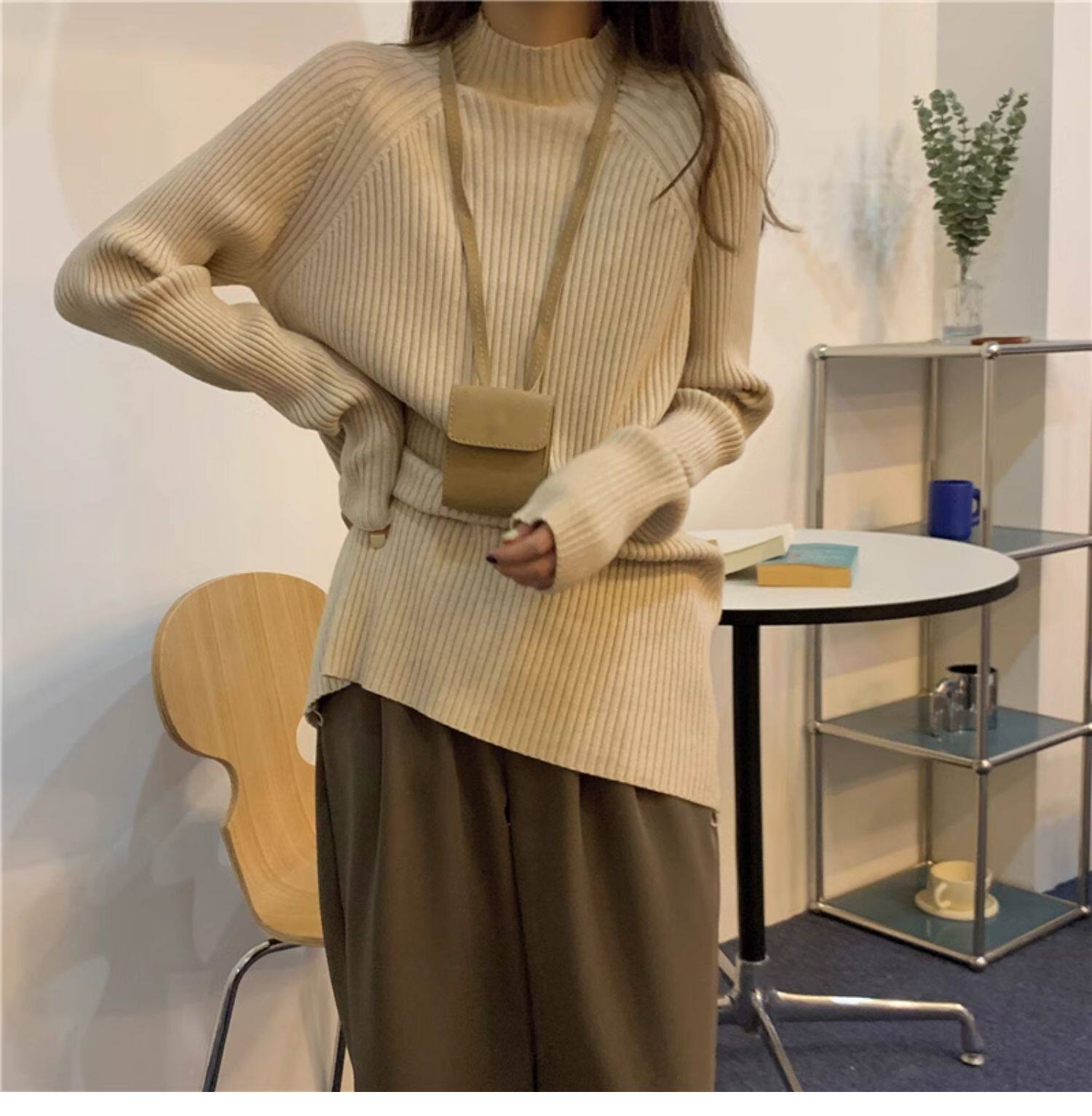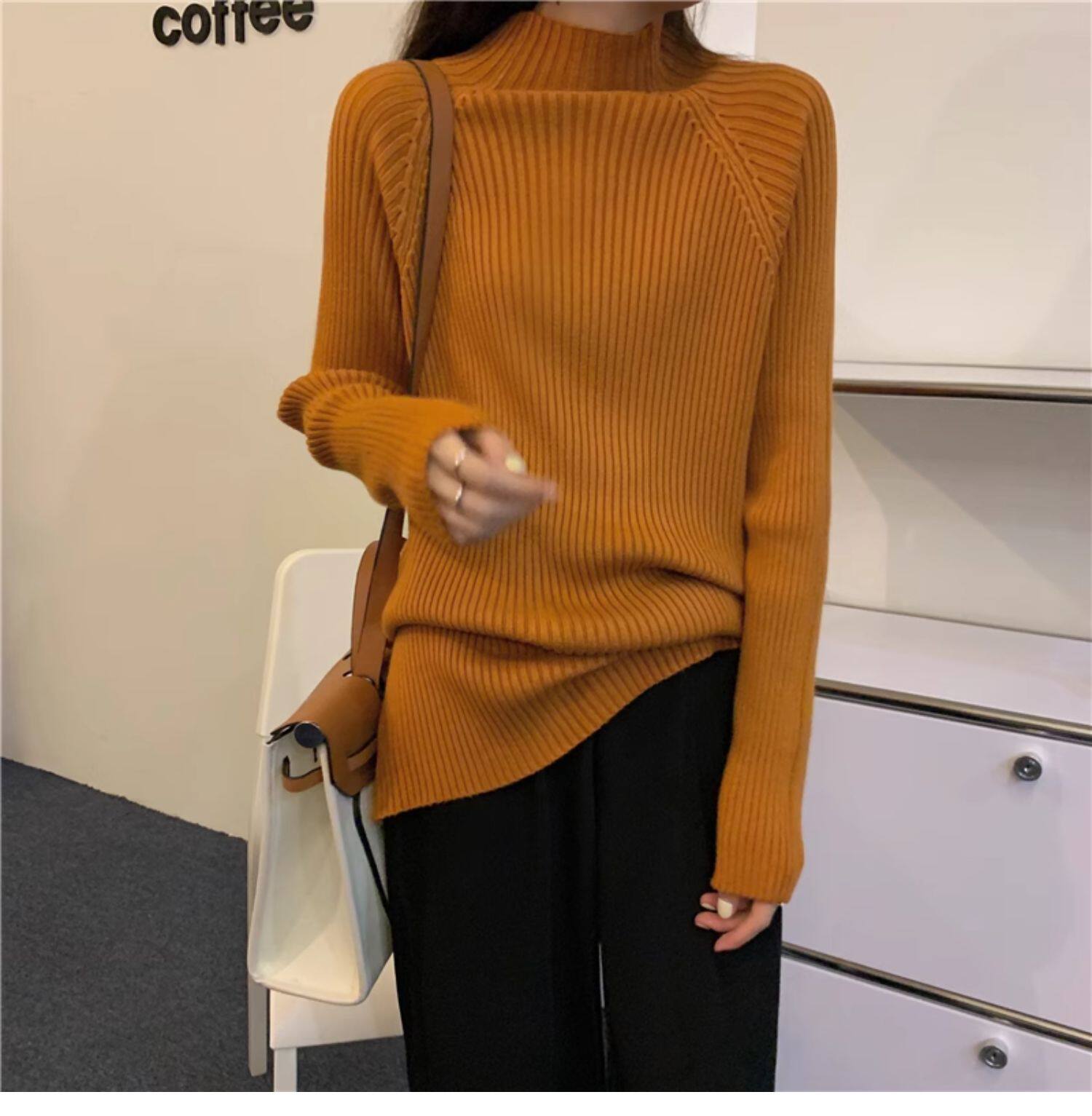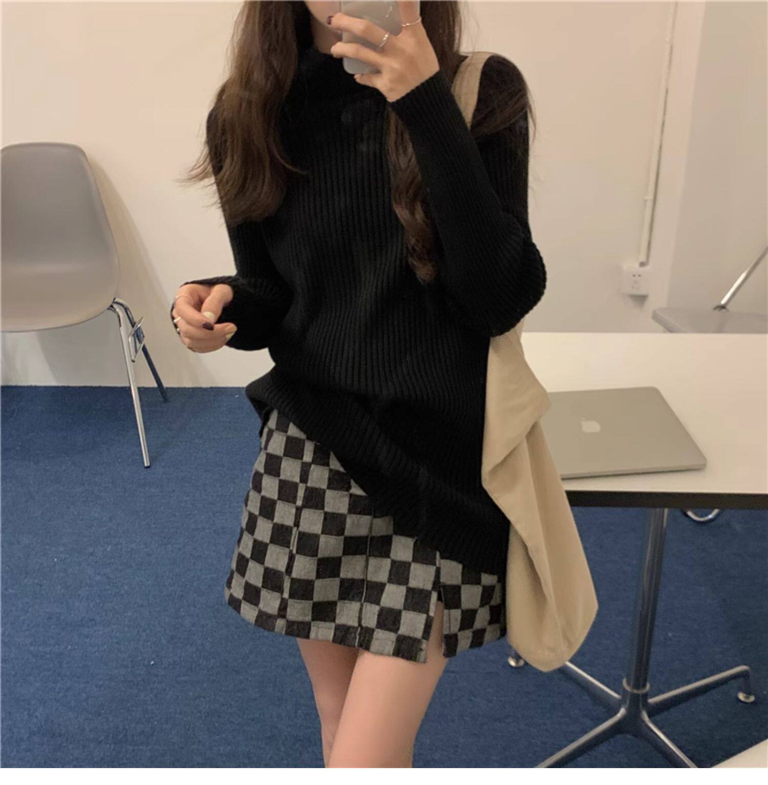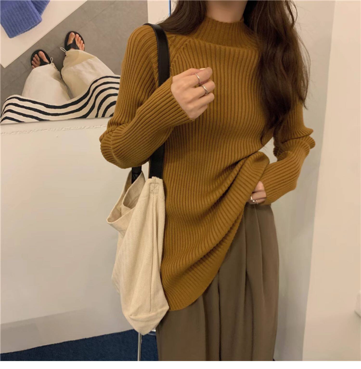白色中長款半高領針織衫女秋冬小個子配大衣內搭毛衣遮屁股上衣