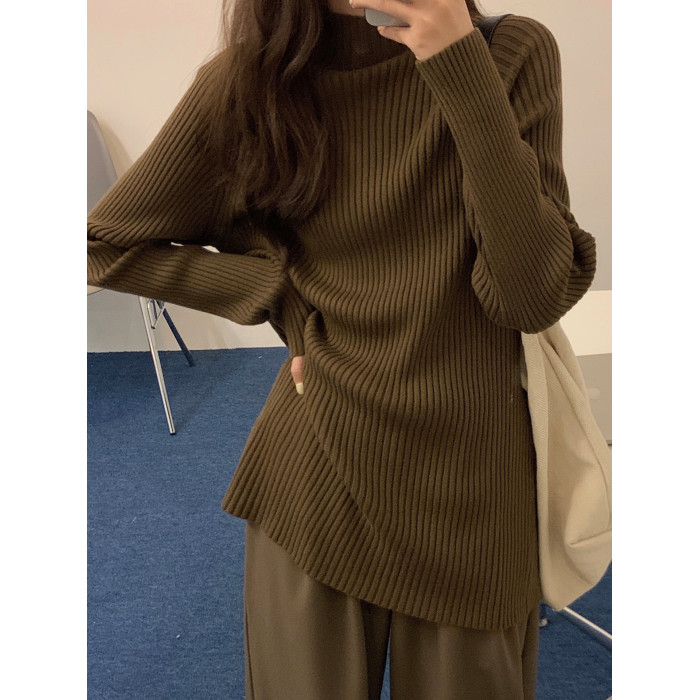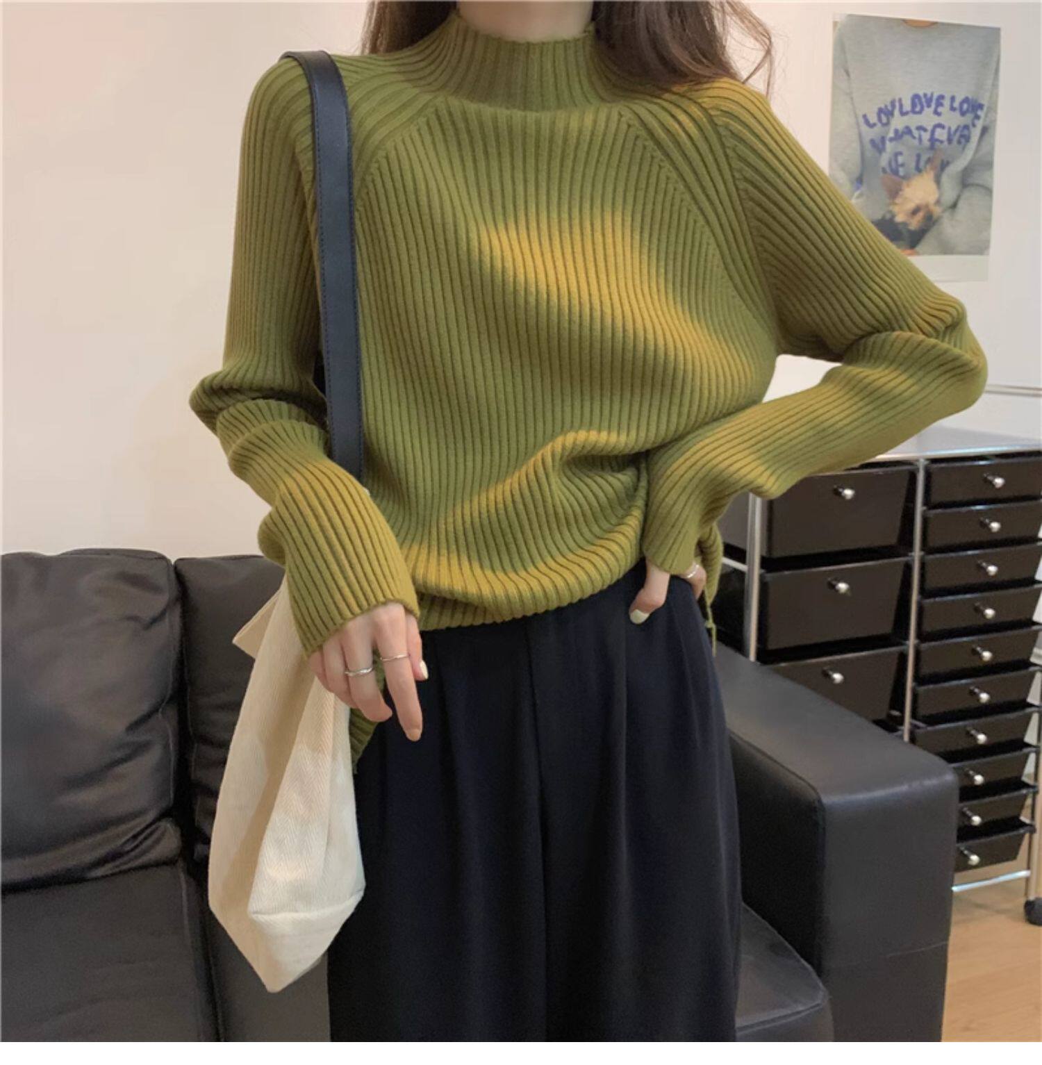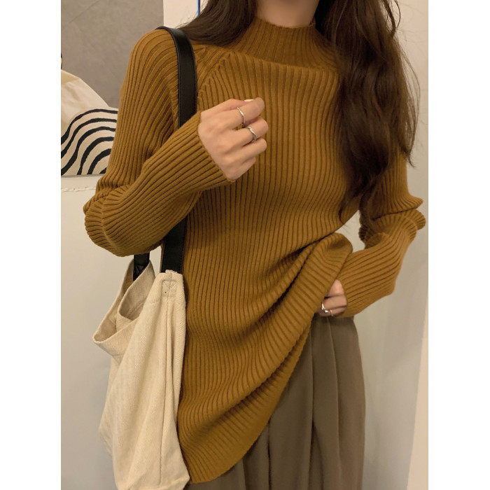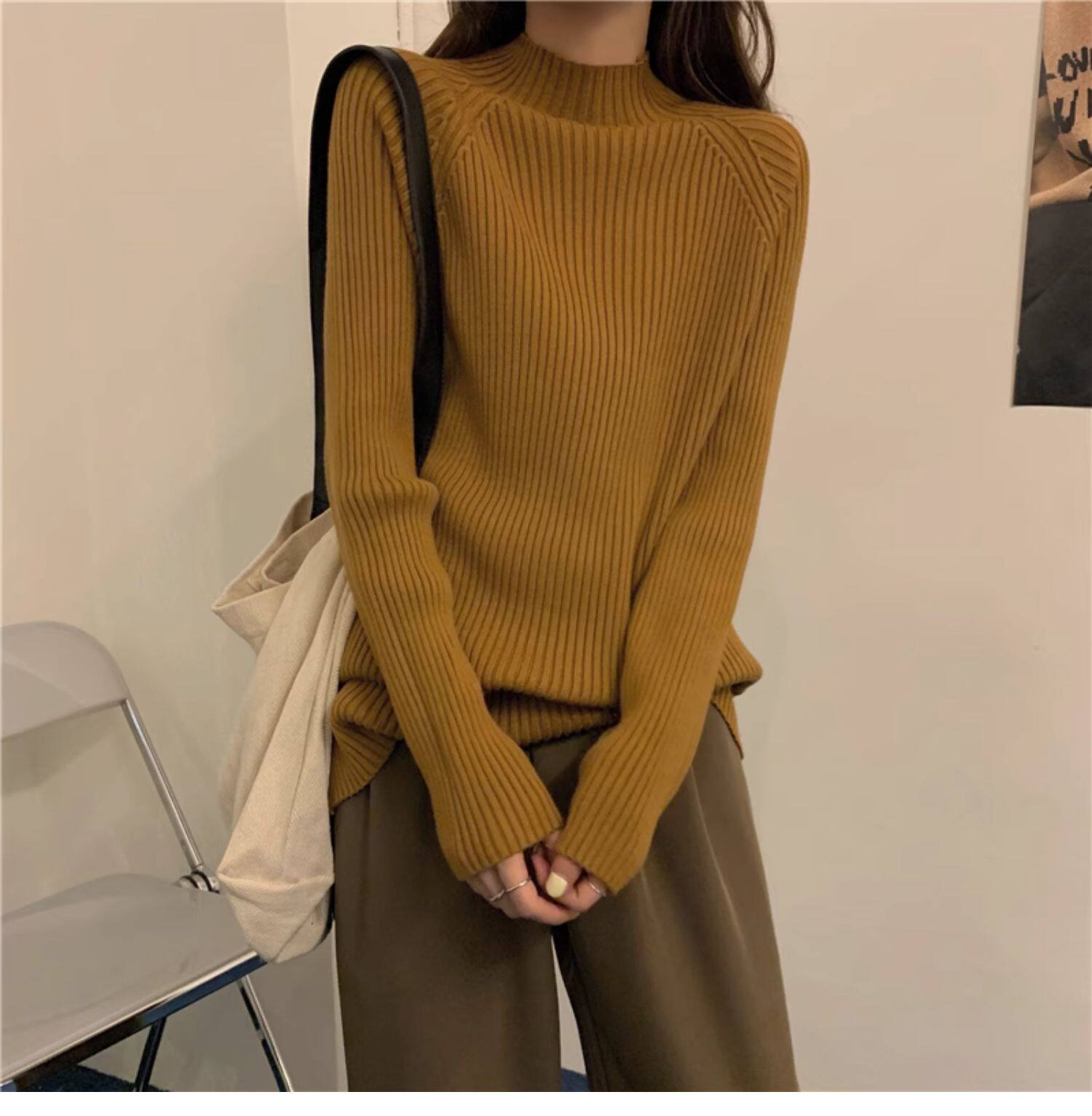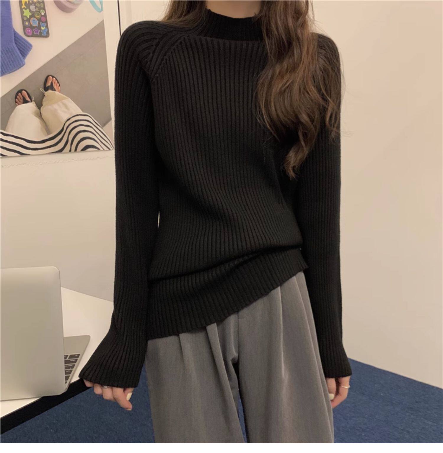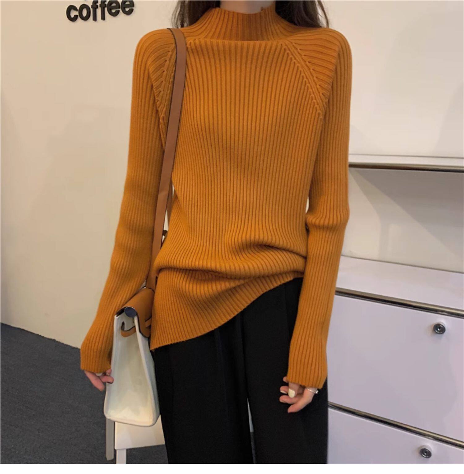 白色中長款半高領針織衫女秋冬小個子配大衣內搭毛衣遮屁股上衣
