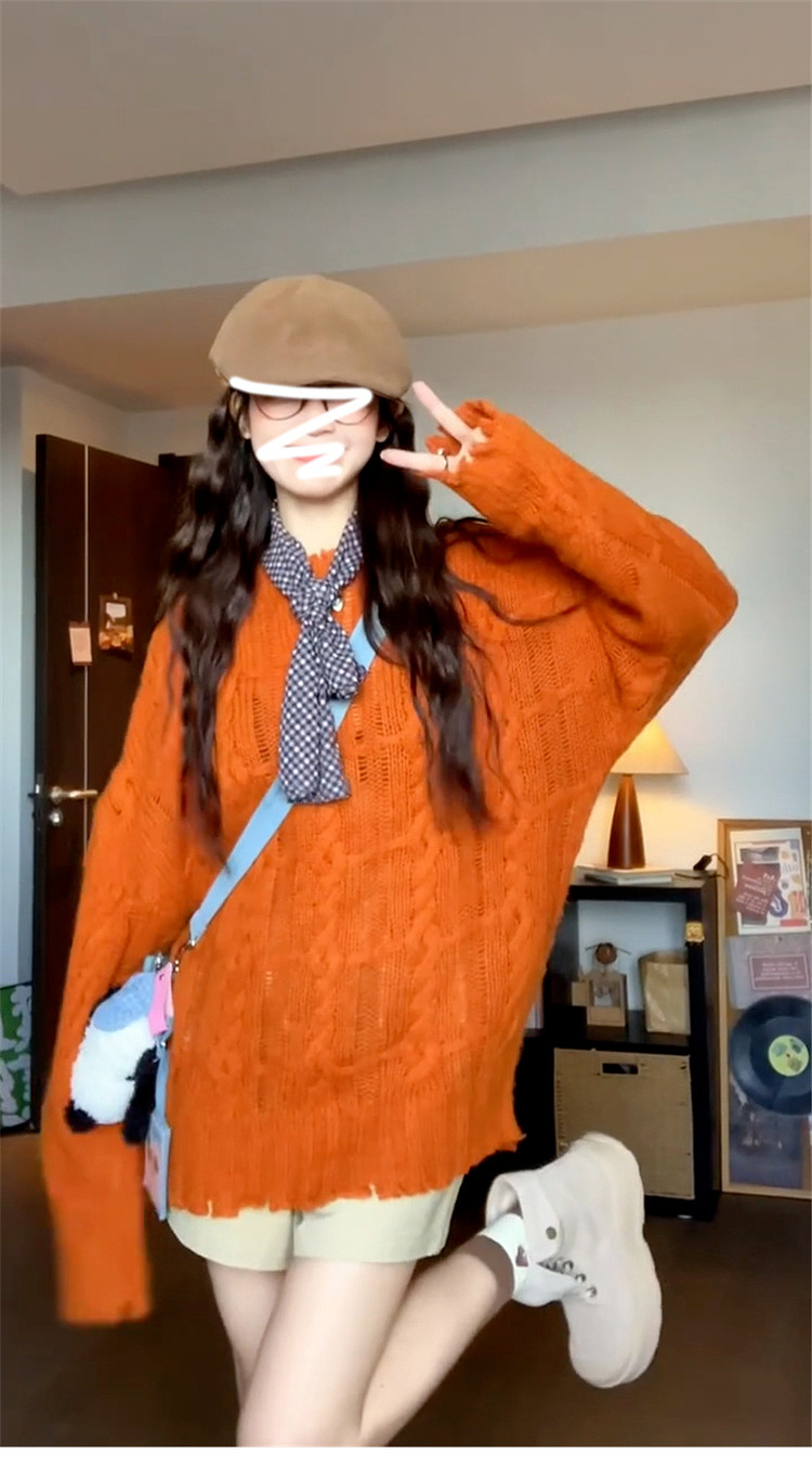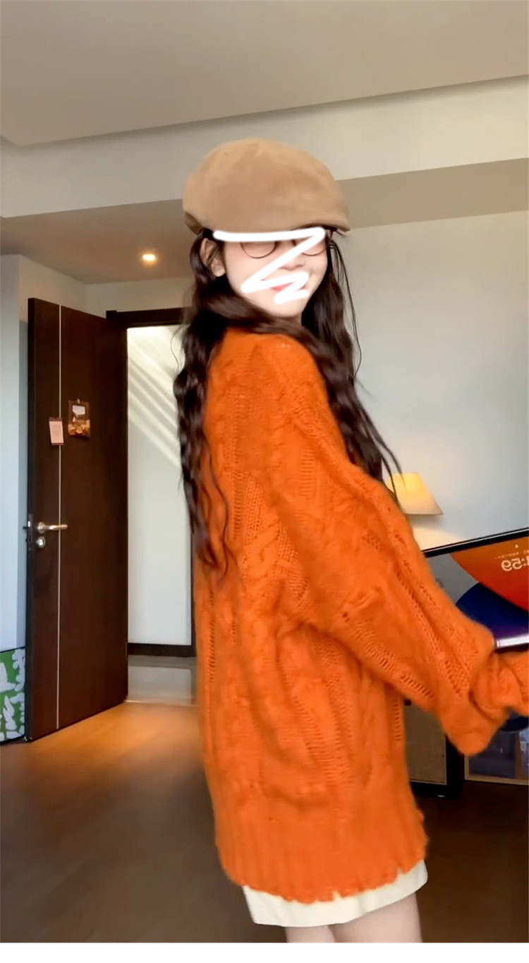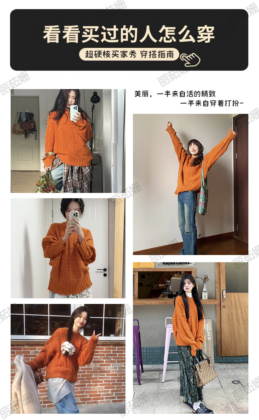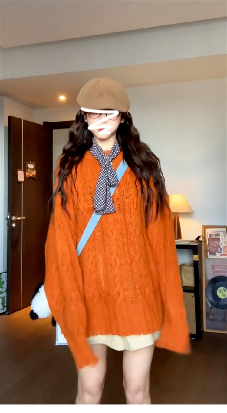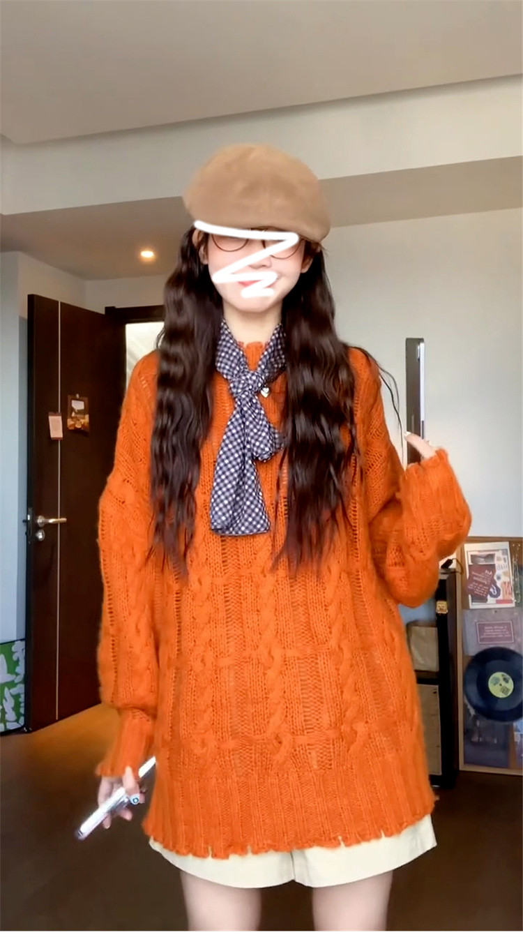 慵懶風高級松弛感毛線衣橘色毛衣女秋冬2025新款寬松套頭針織上衣
