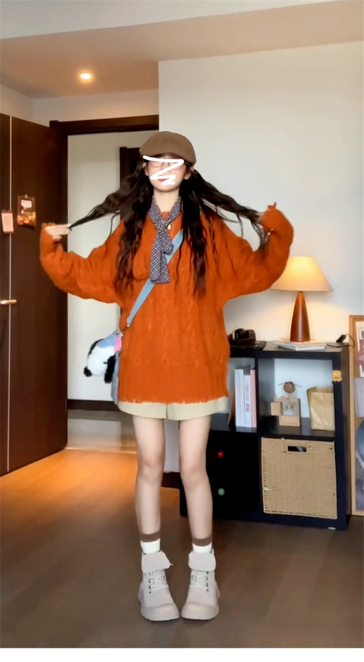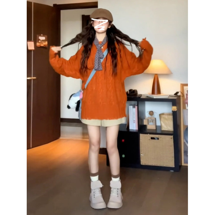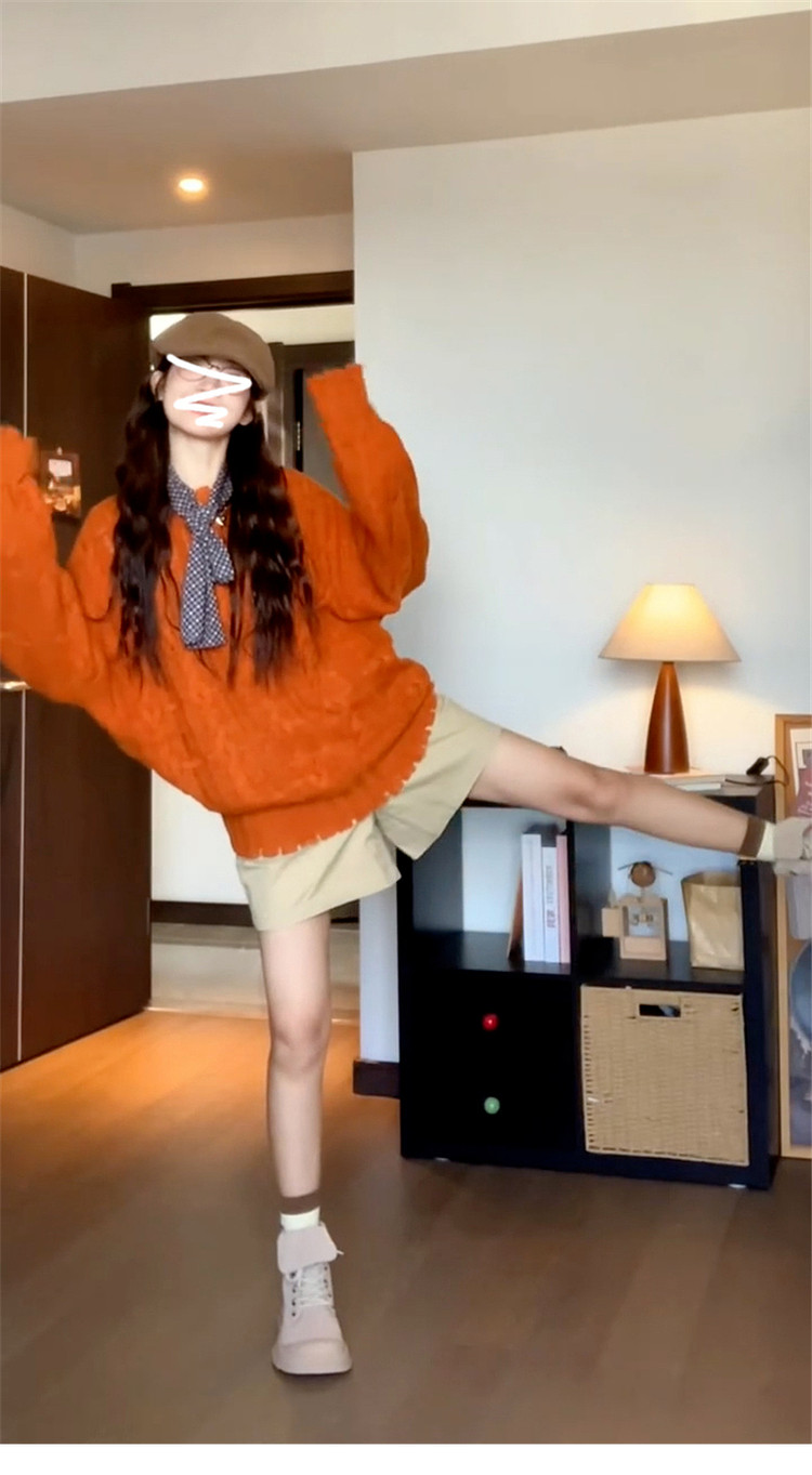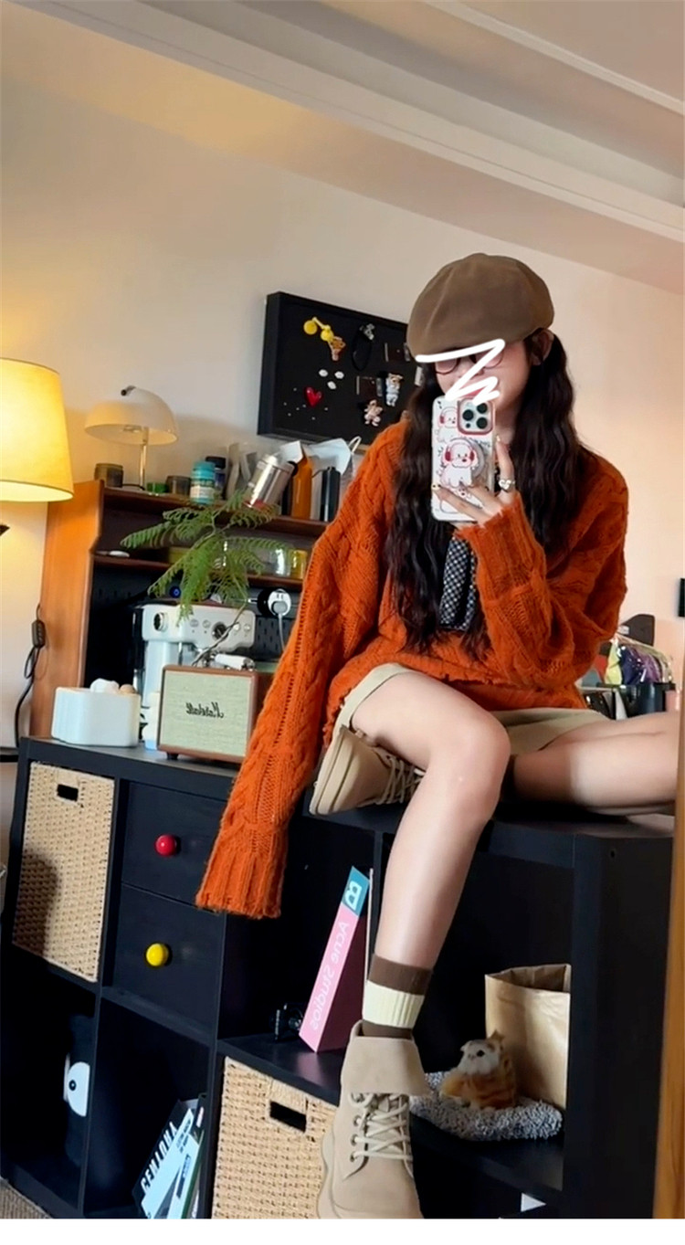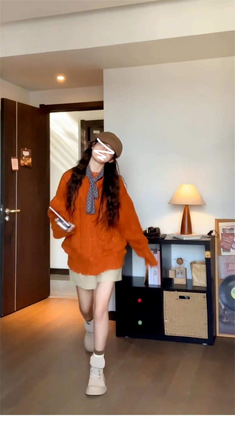 慵懶風高級松弛感毛線衣橘色毛衣女秋冬2025新款寬松套頭針織上衣