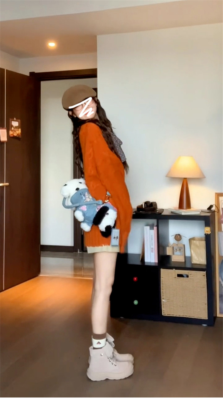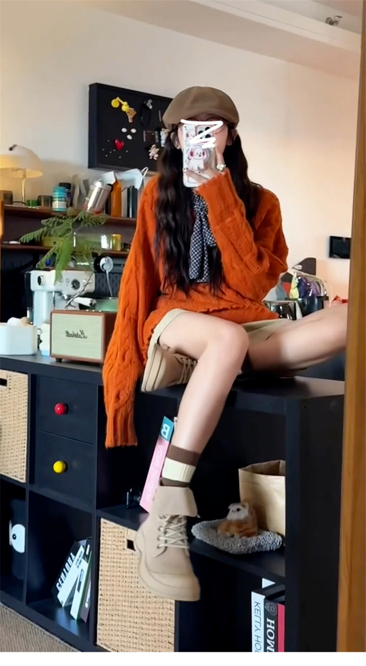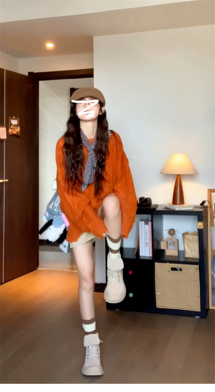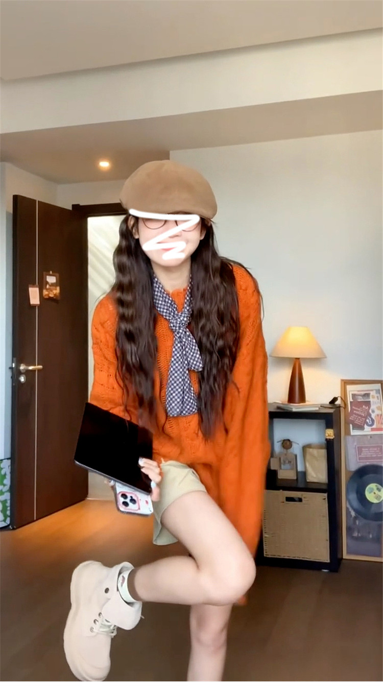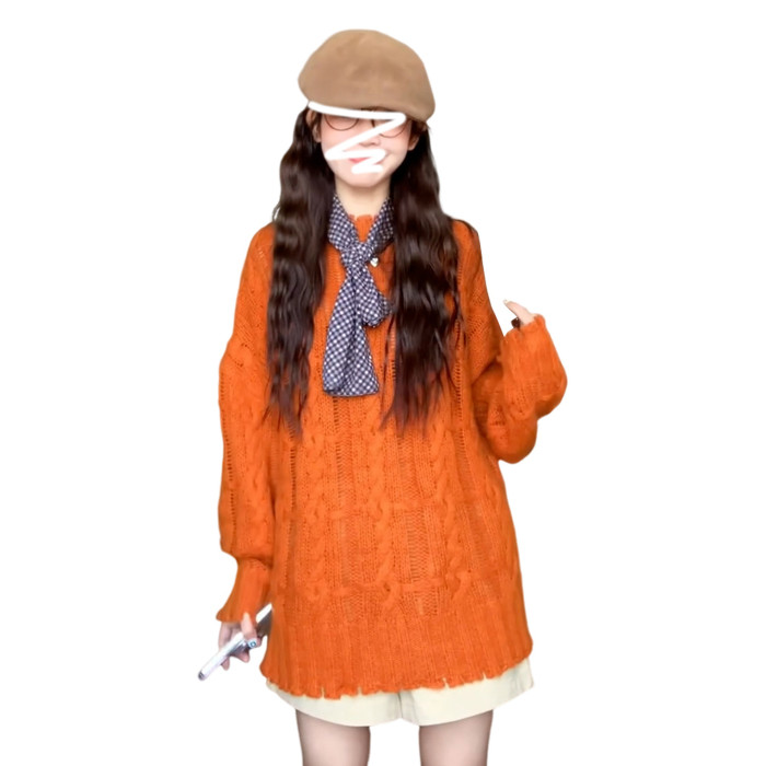 慵懶風高級松弛感毛線衣橘色毛衣女秋冬2025新款寬松套頭針織上衣