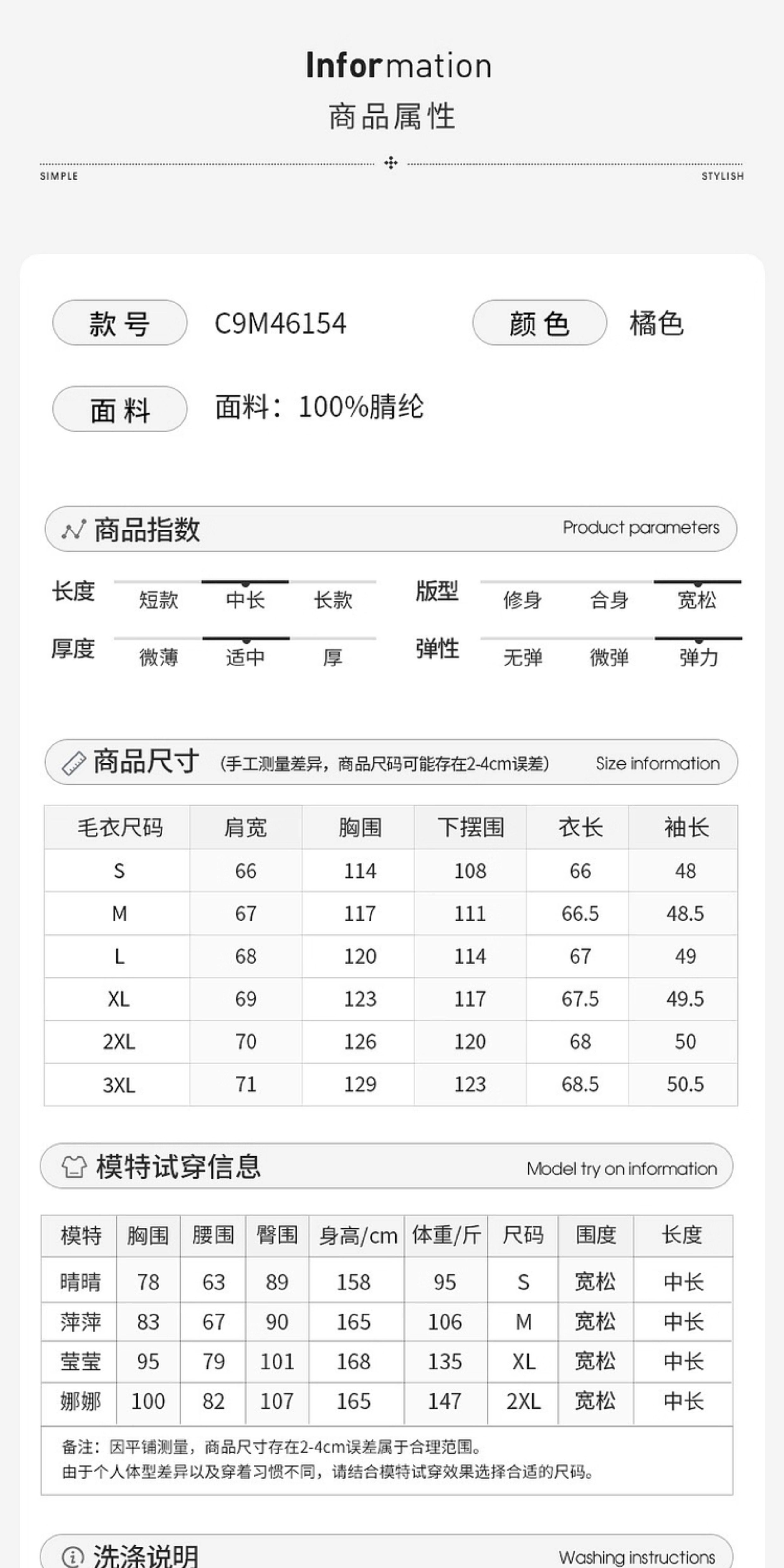 款式及尺寸: