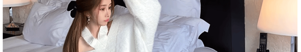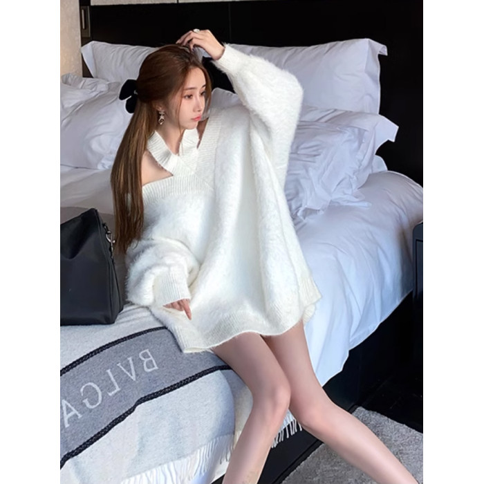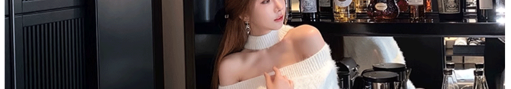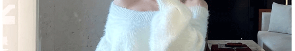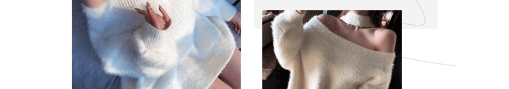 聖誕穿搭一字肩毛衣女秋冬高級感慵懶風性感露肩水貂絨白色毛衣女