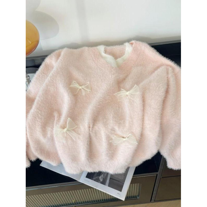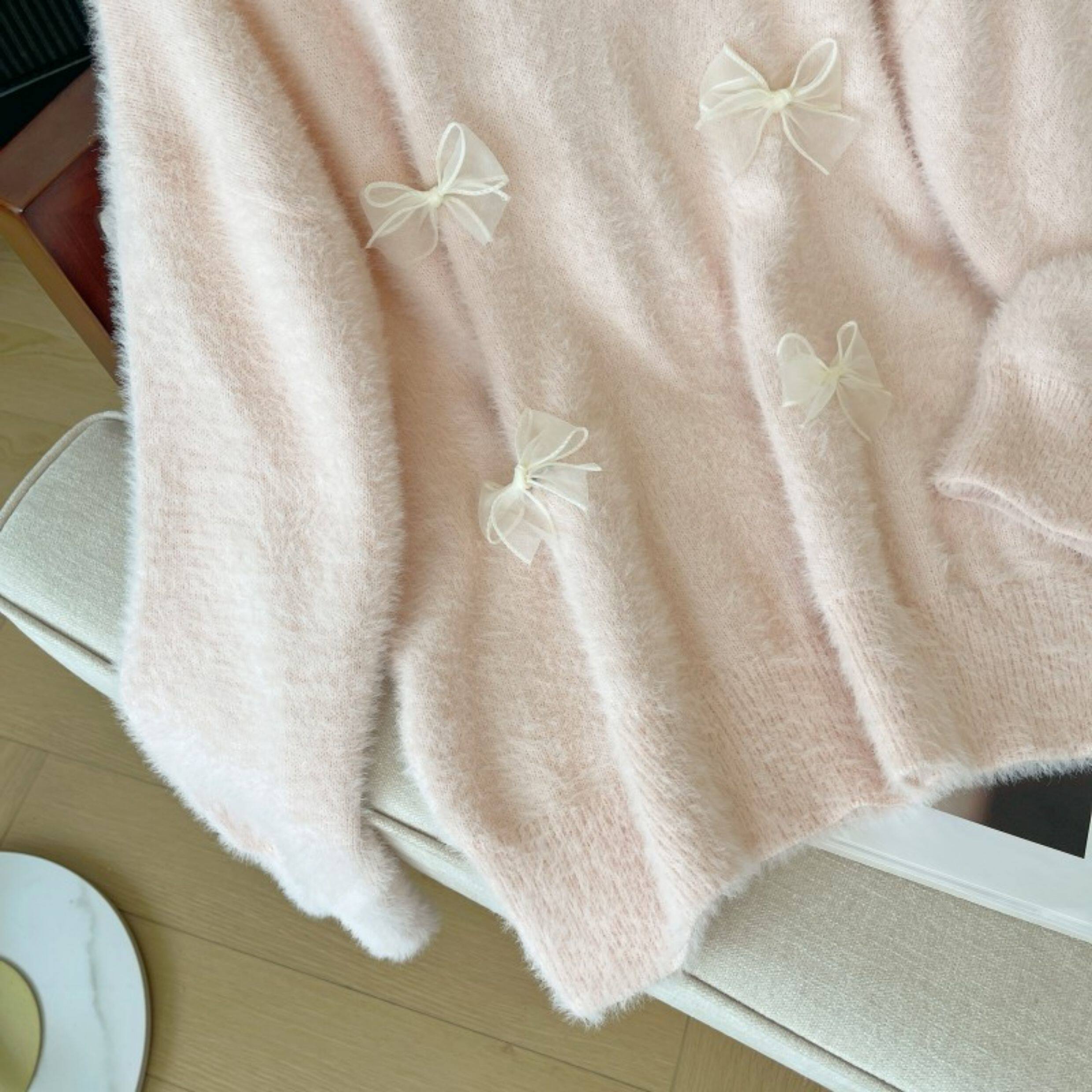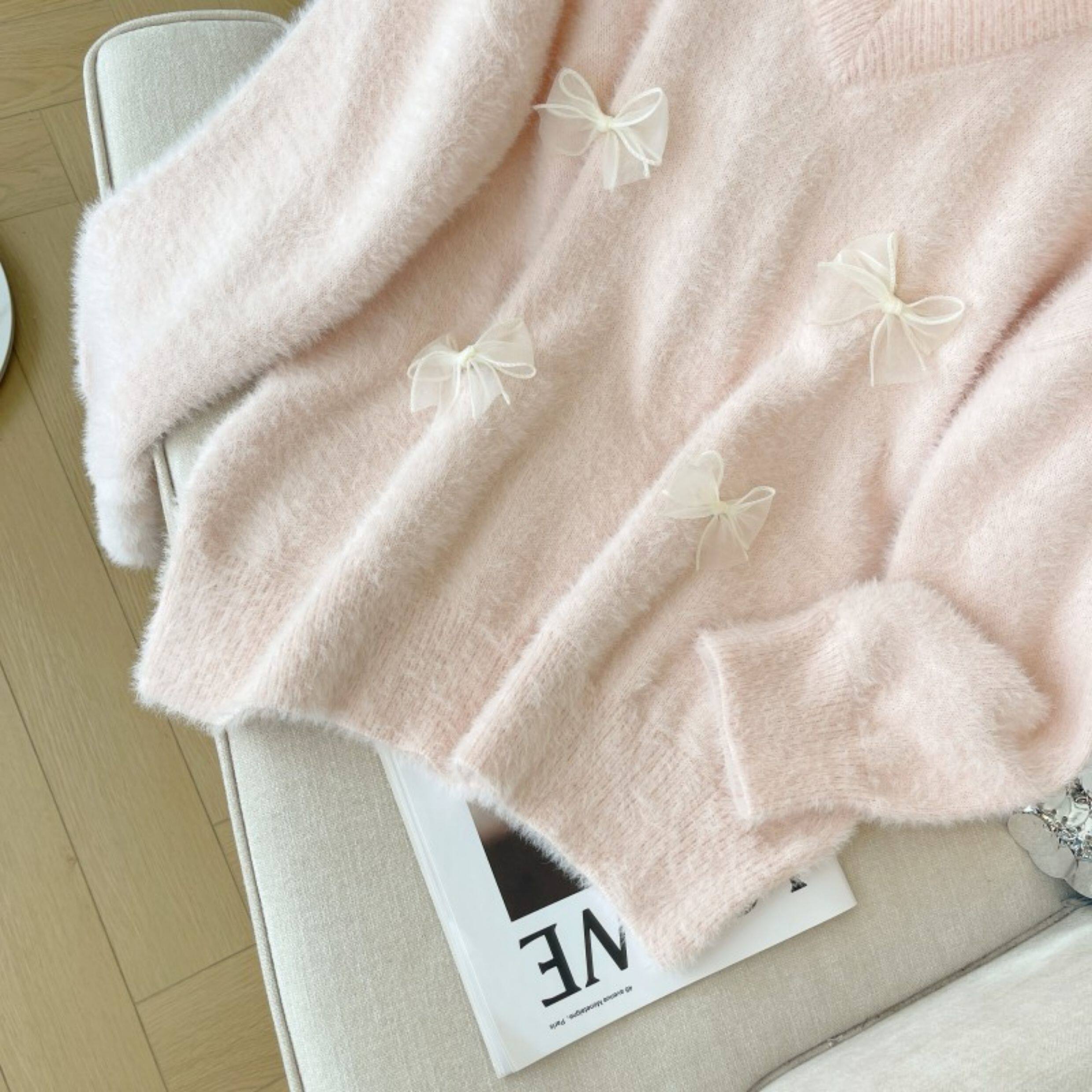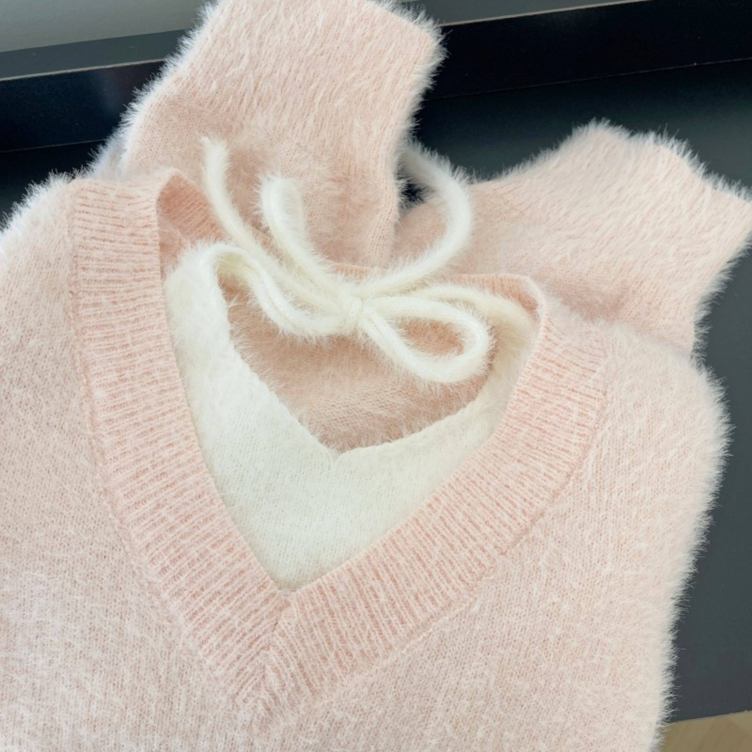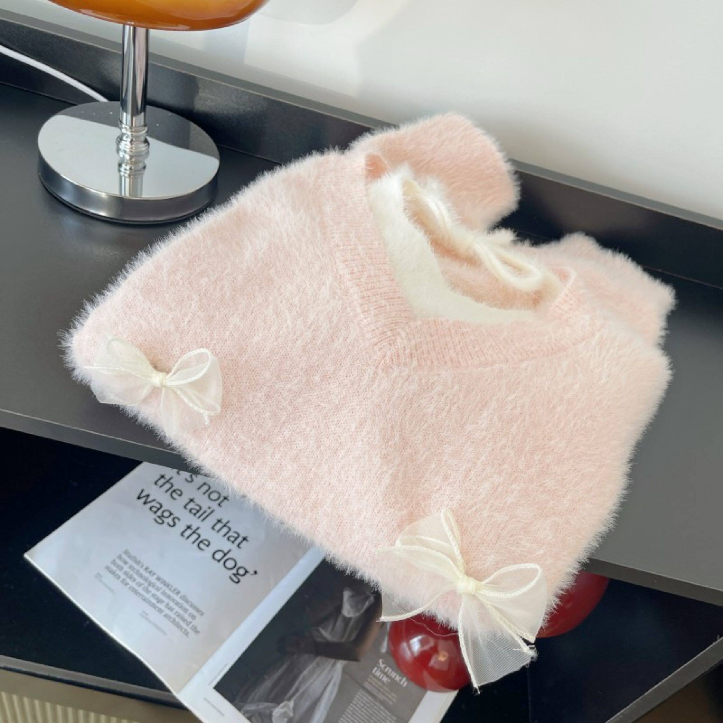 粉色假兩件掛脖水貂絨毛衣女秋冬大碼胖mm顯瘦韓系軟糯針織衫上衣