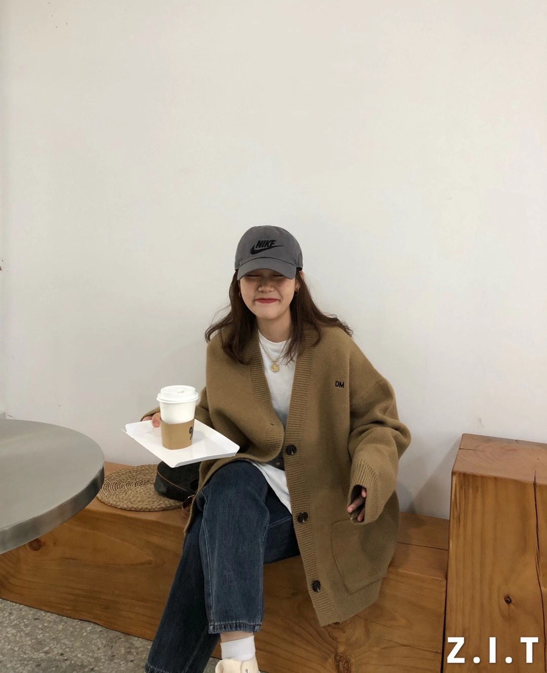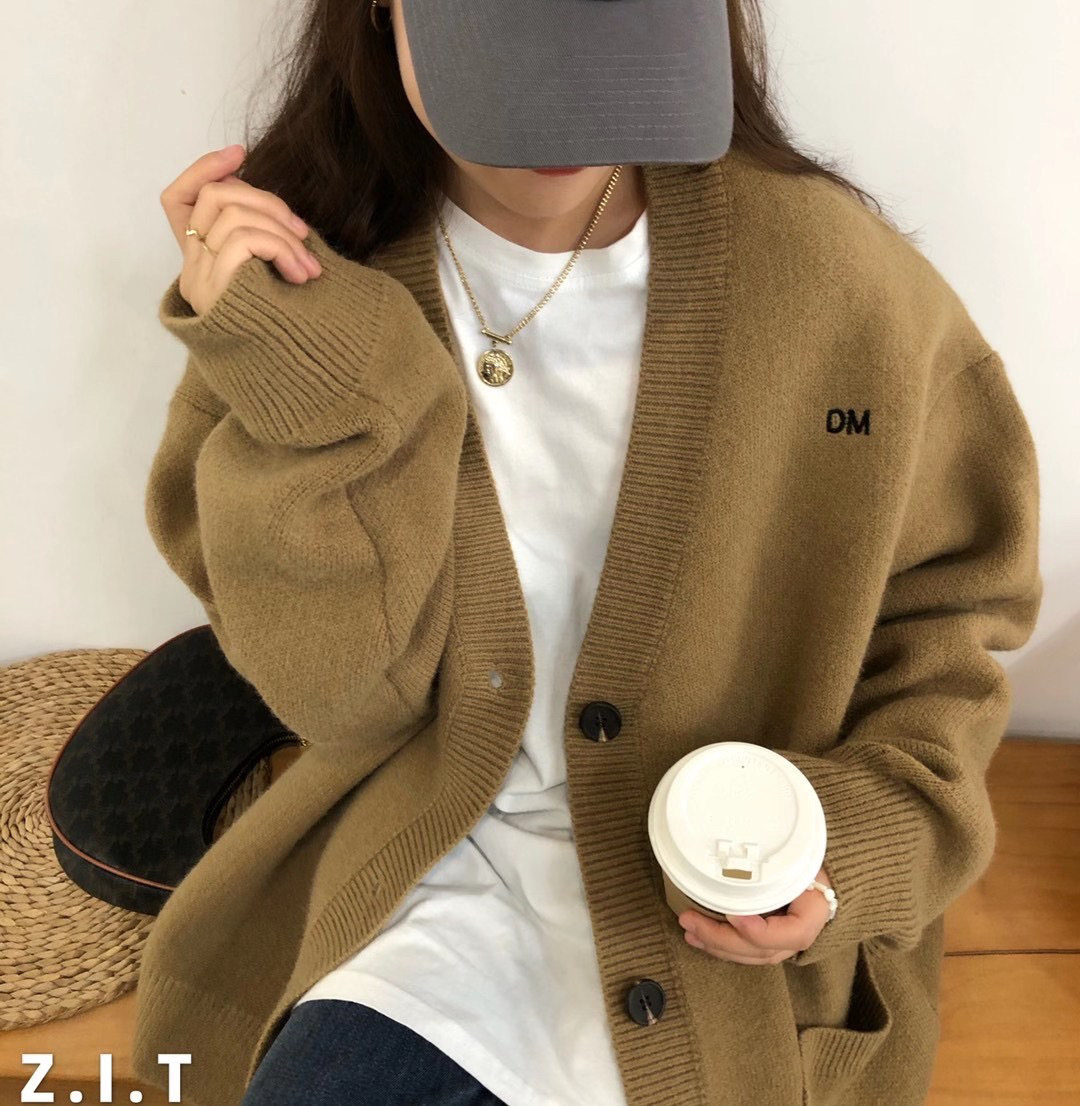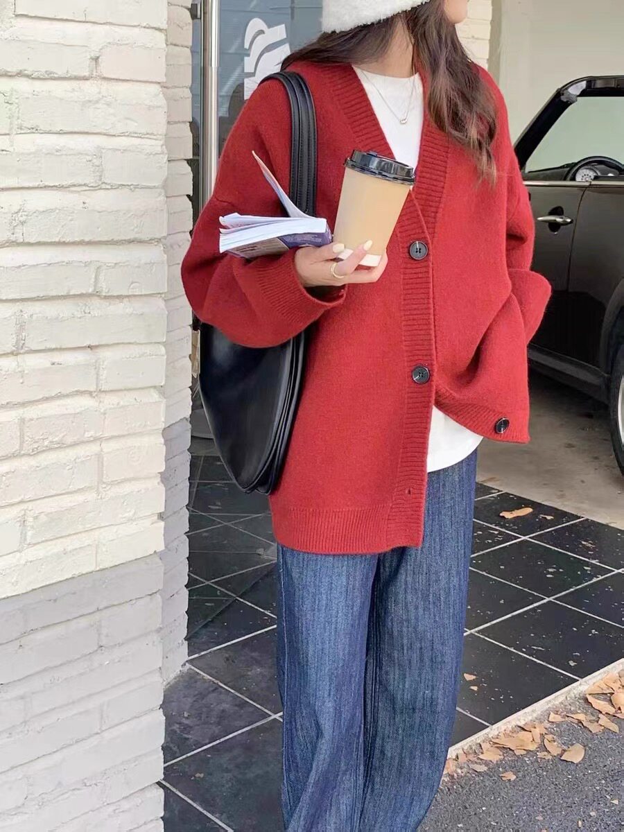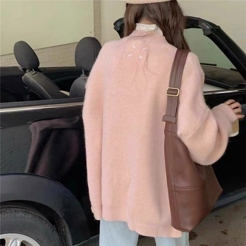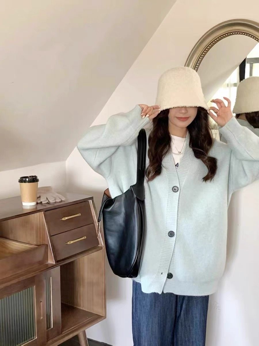 2025秋冬新韓國東大門胖mm寬松慵懶風v領毛衣外套女加厚針織開衫