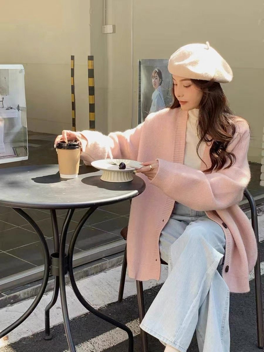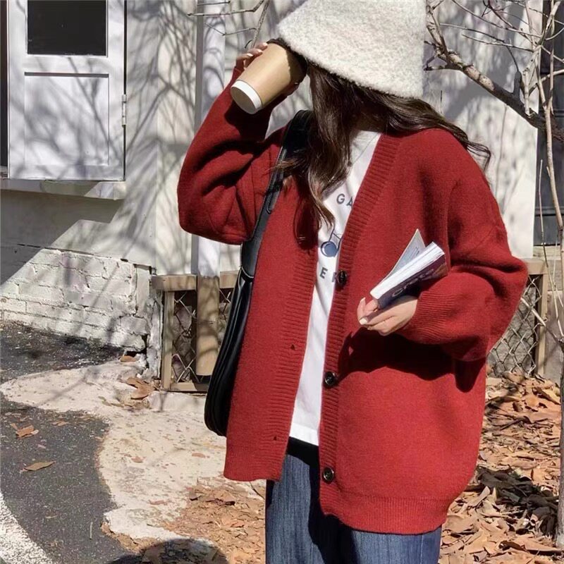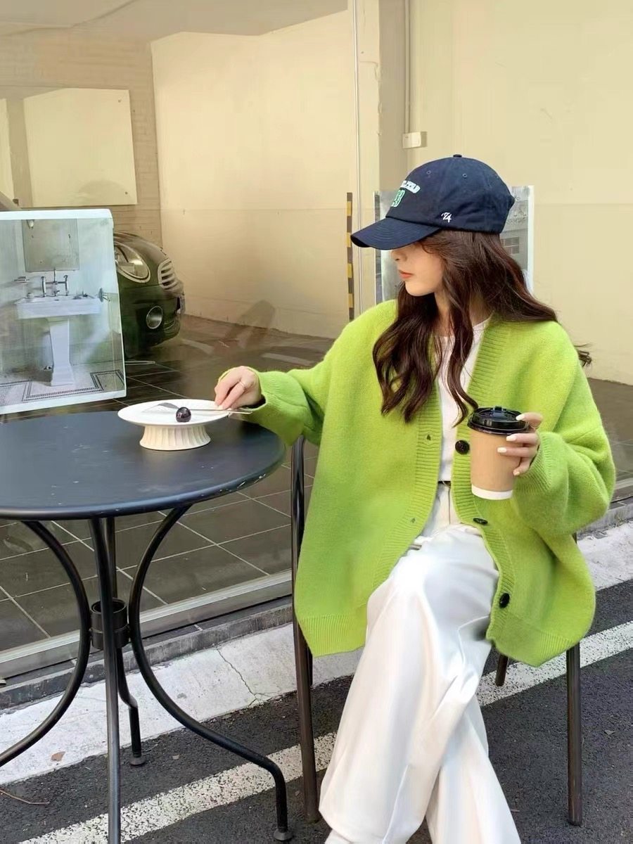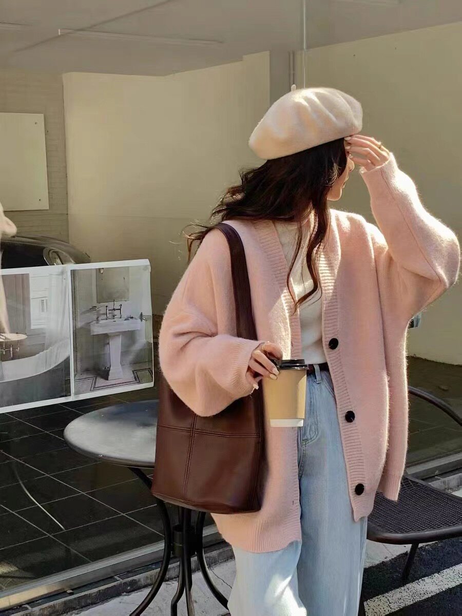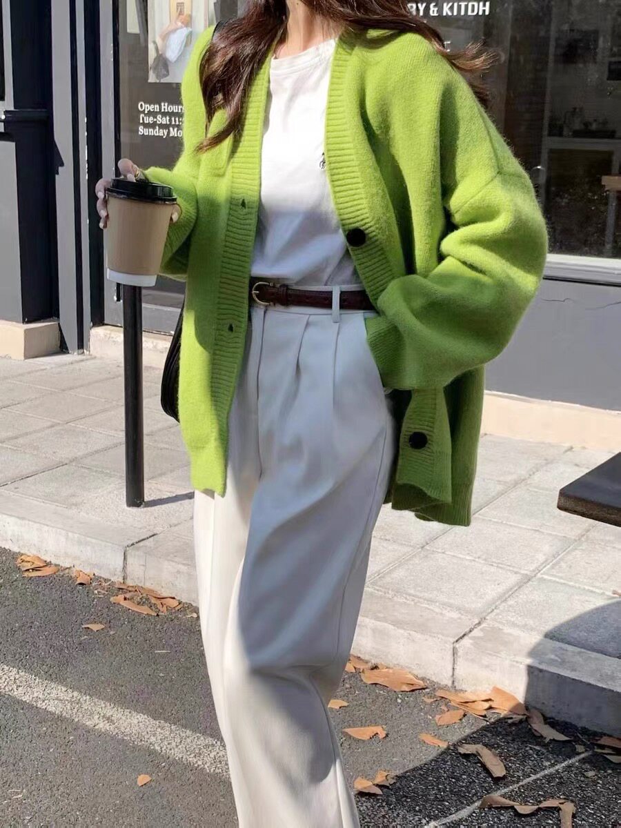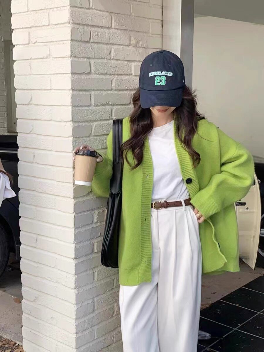 2025秋冬新韓國東大門胖mm寬松慵懶風v領毛衣外套女加厚針織開衫