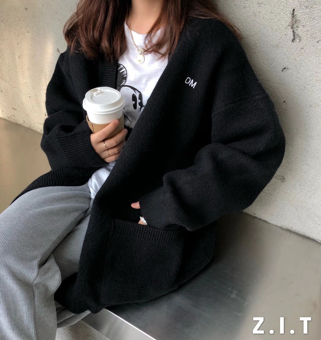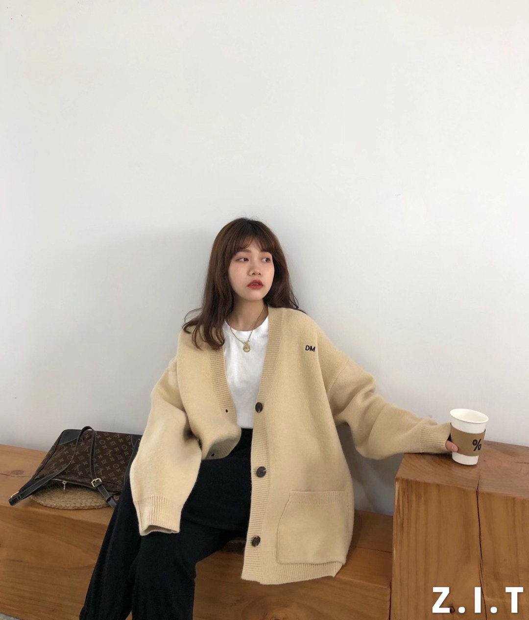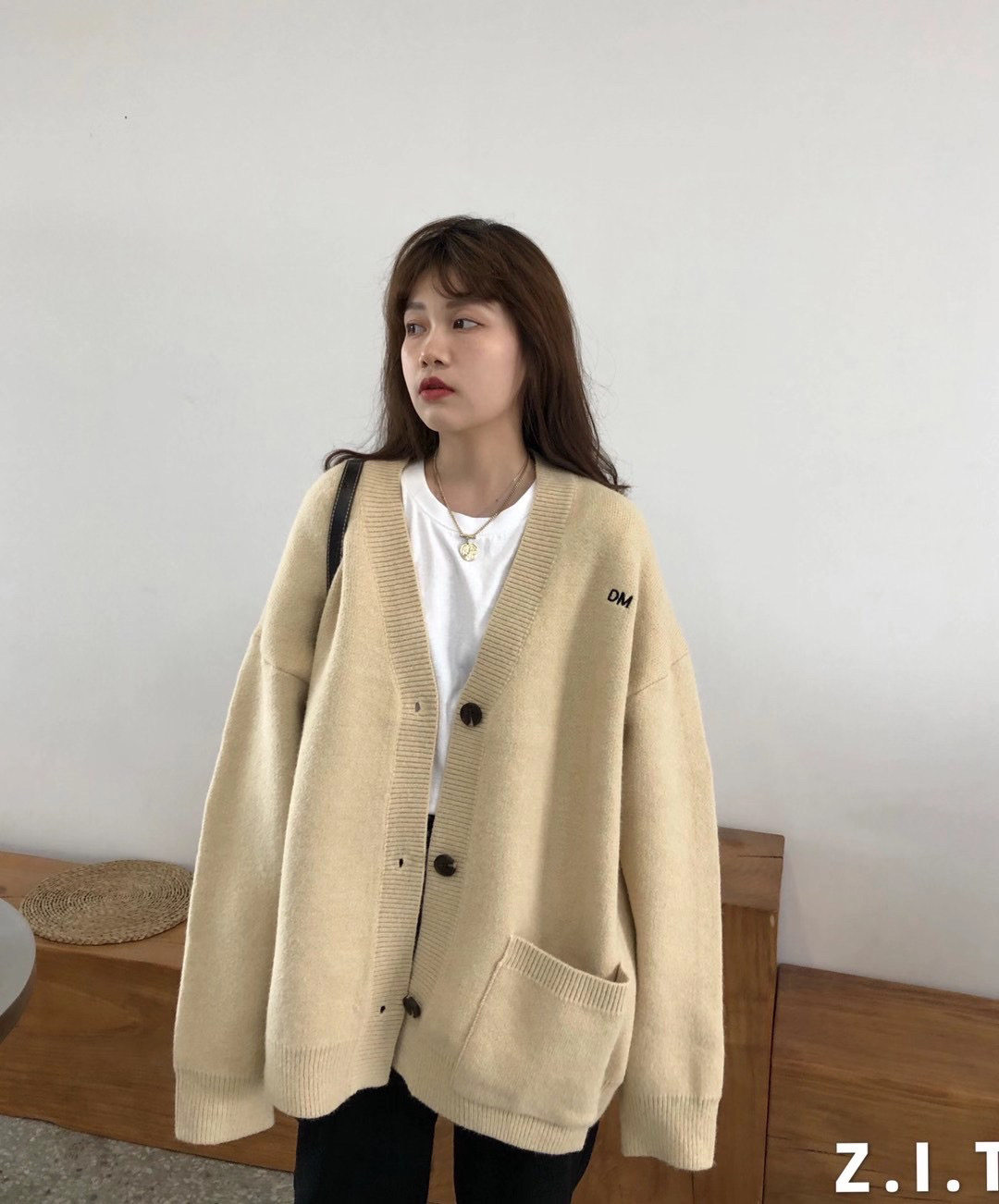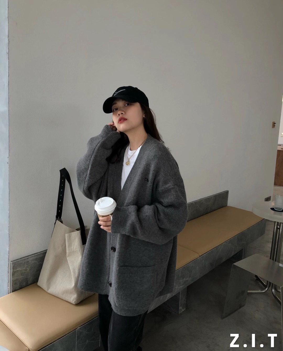2025秋冬新韓國東大門胖mm寬松慵懶風v領毛衣外套女加厚針織開衫