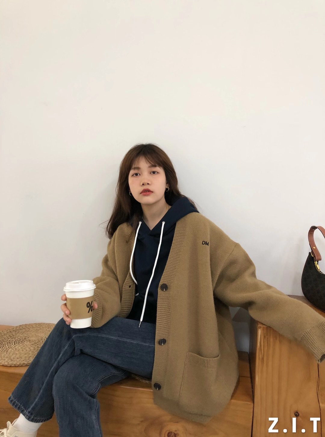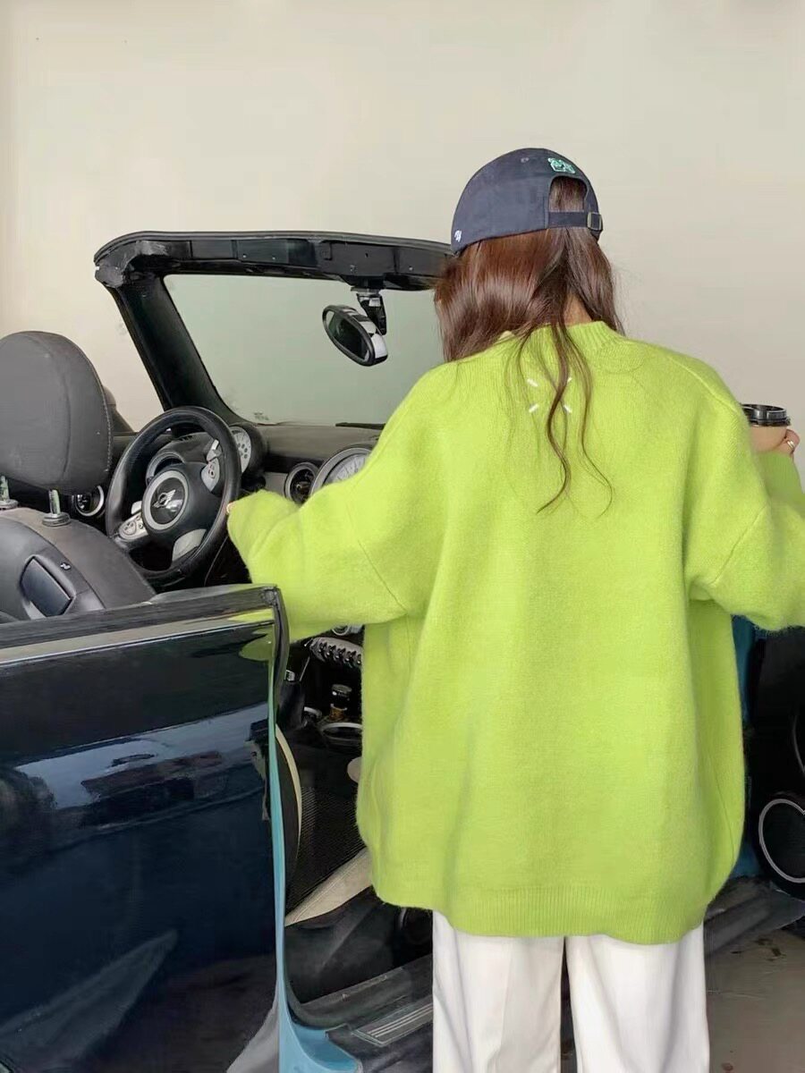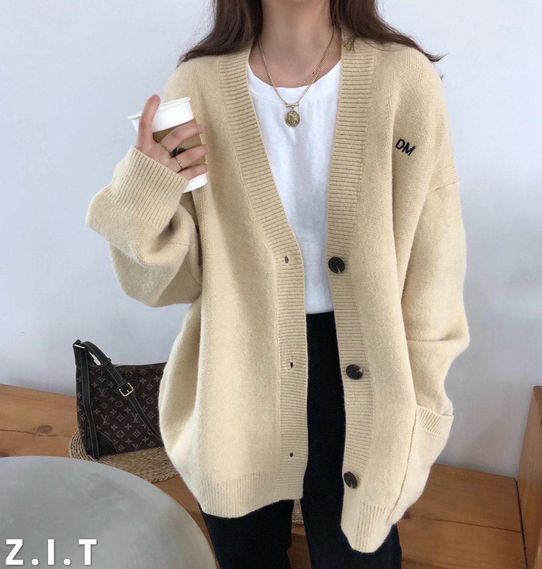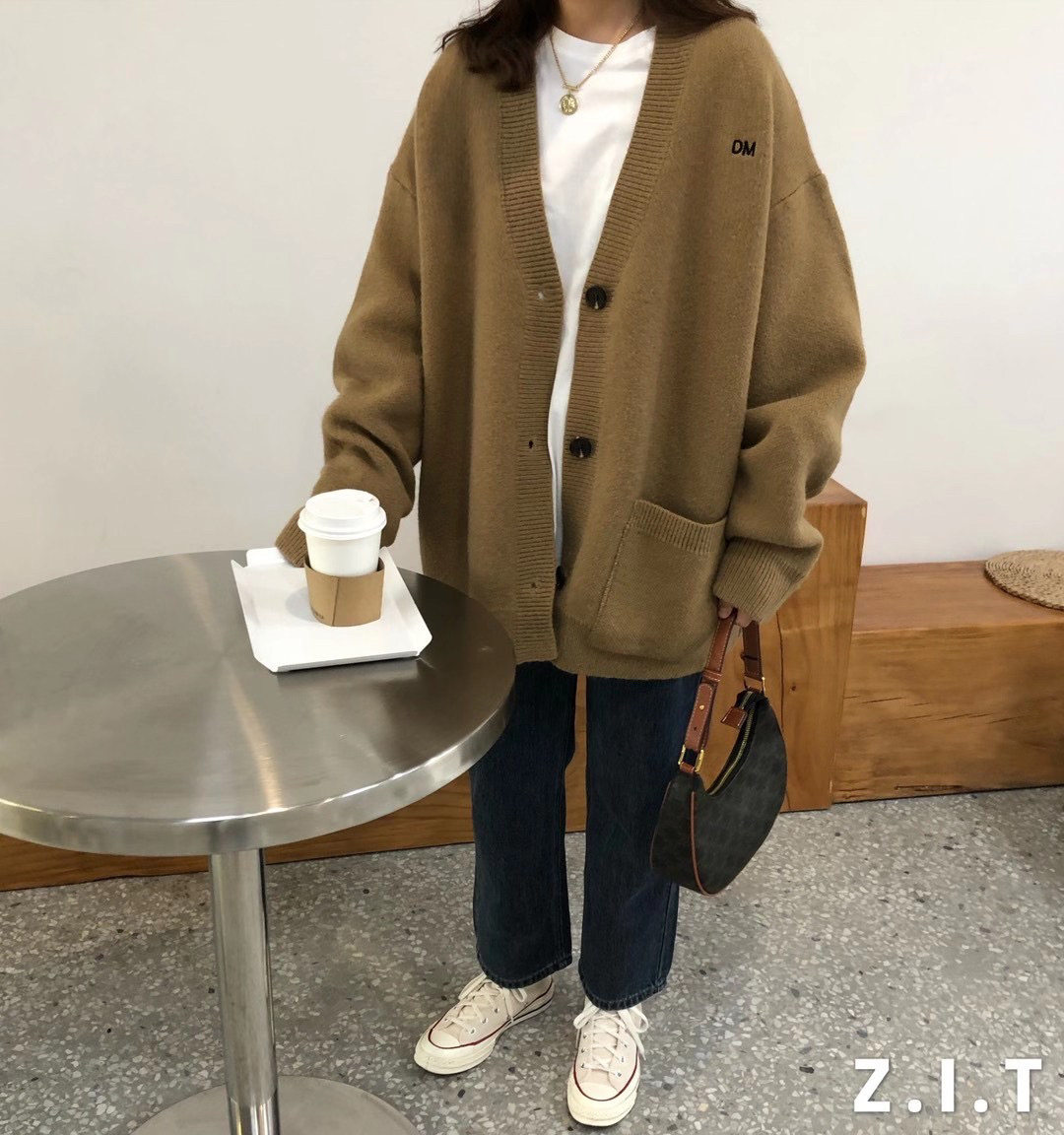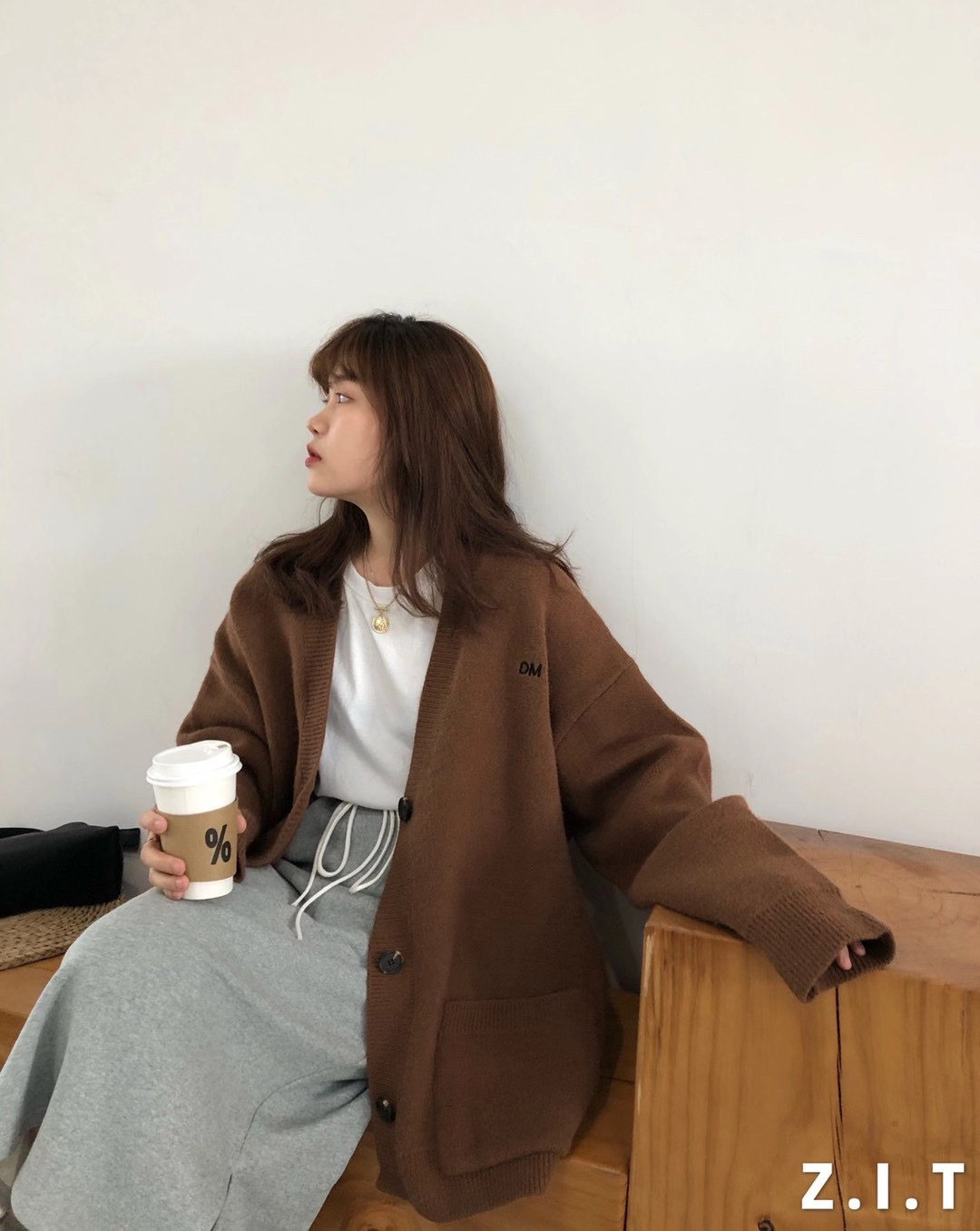 2025秋冬新韓國東大門胖mm寬松慵懶風v領毛衣外套女加厚針織開衫