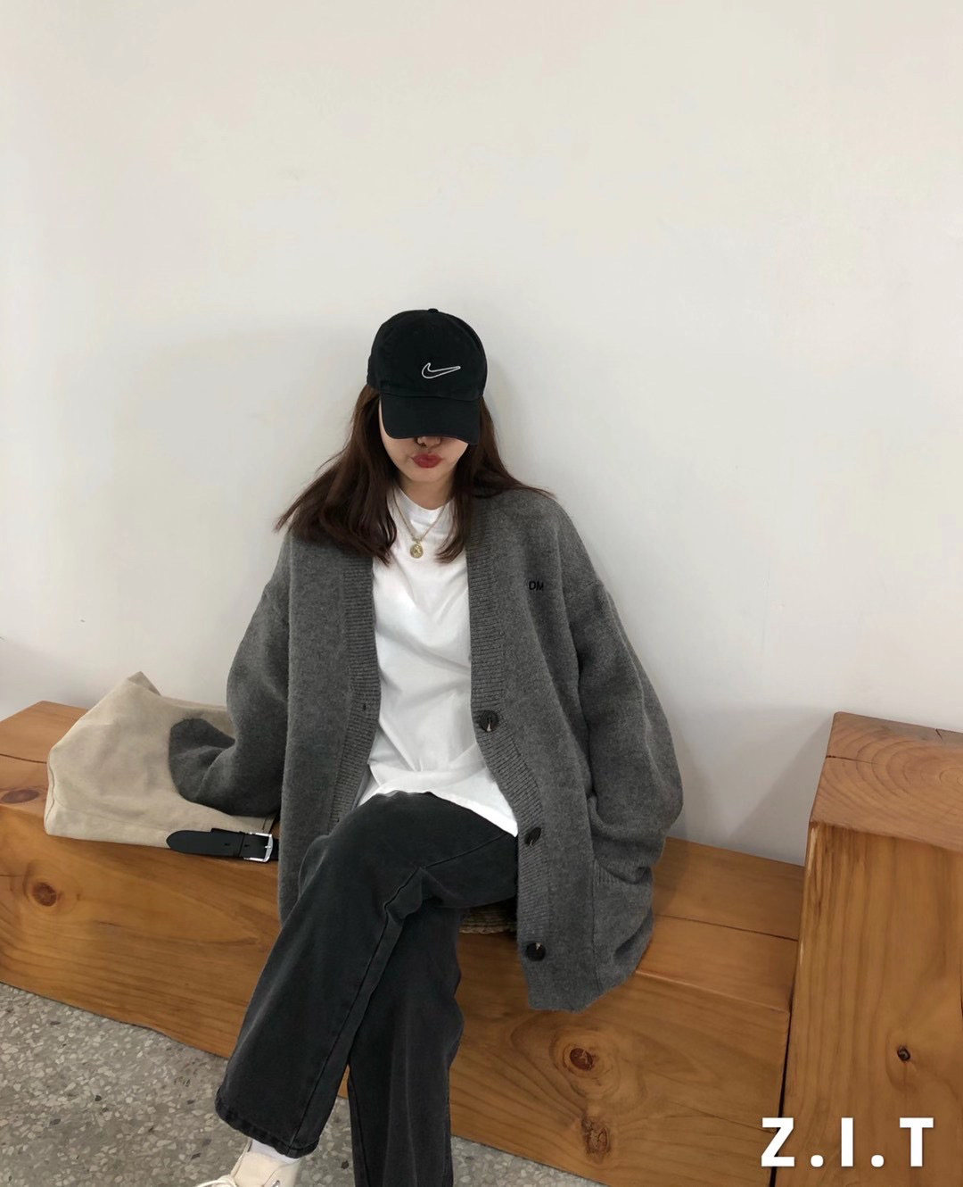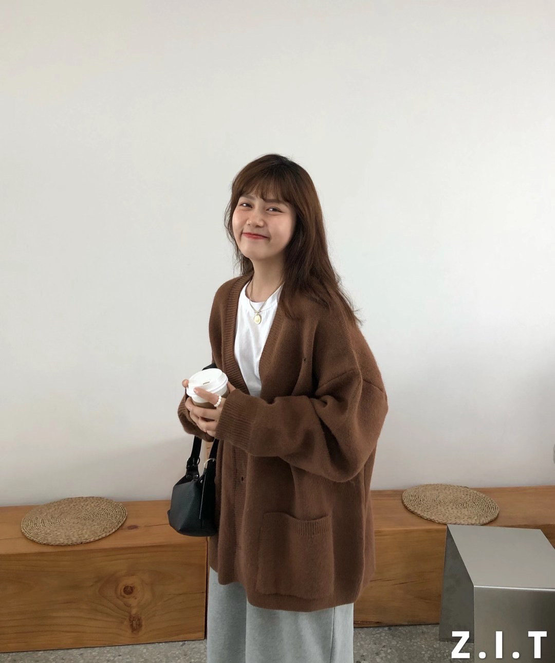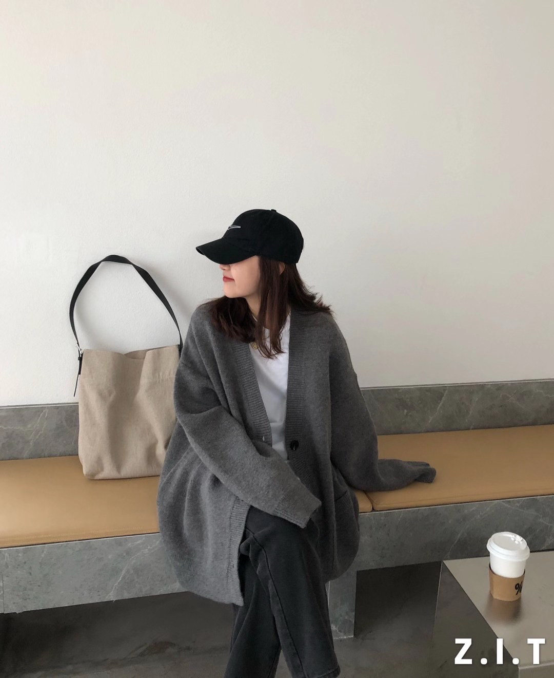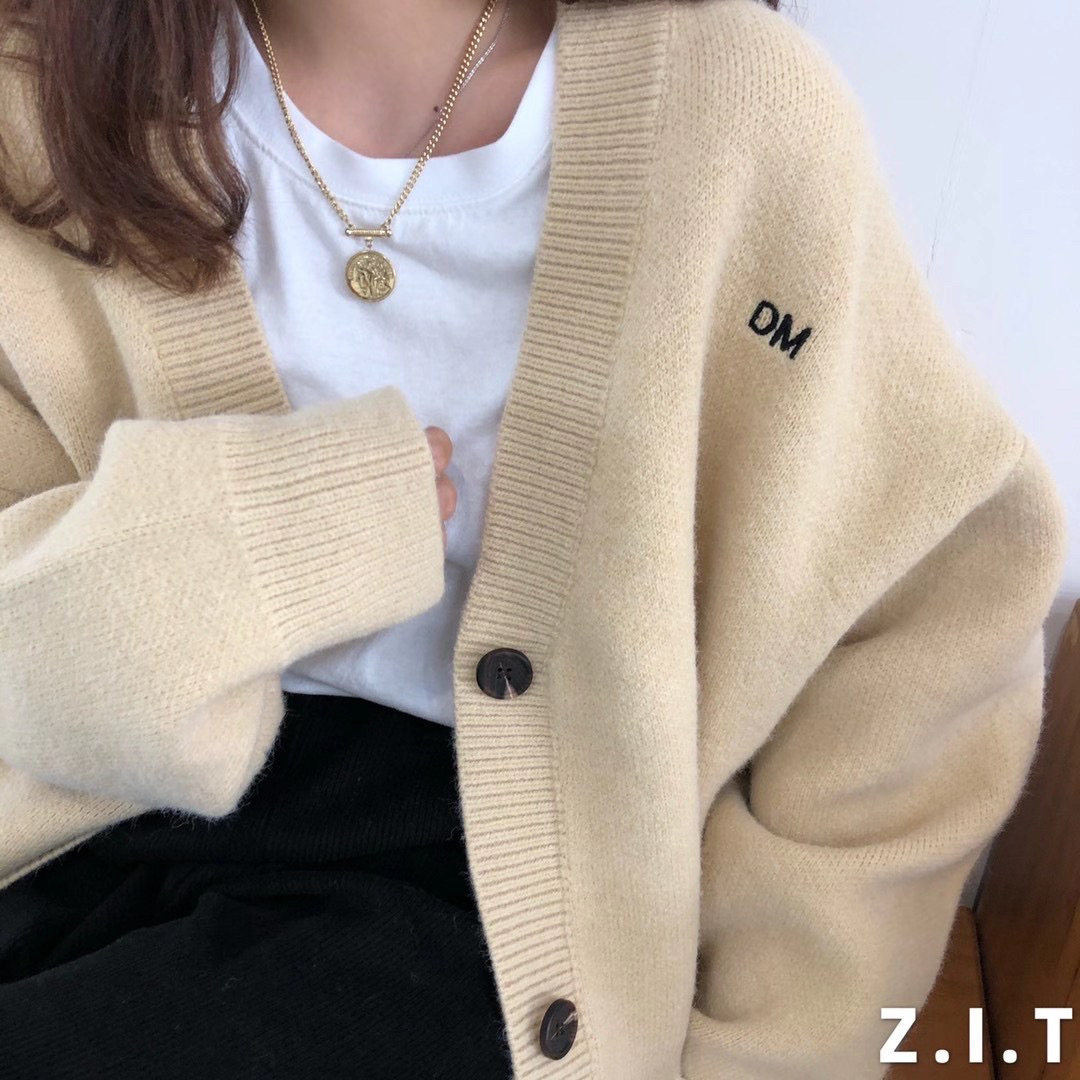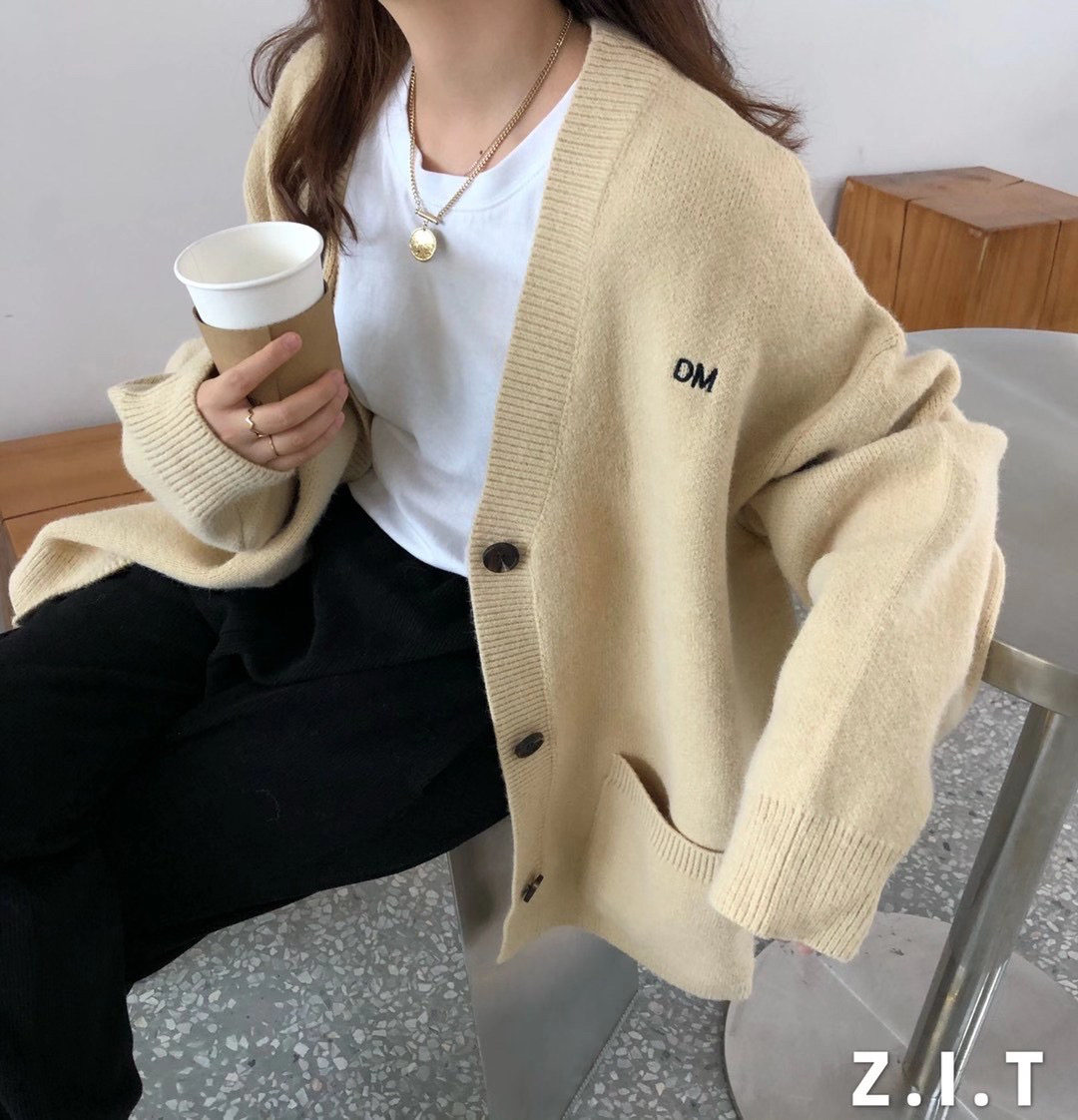 2025秋冬新韓國東大門胖mm寬松慵懶風v領毛衣外套女加厚針織開衫