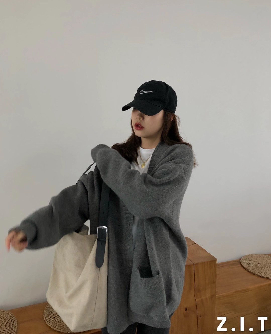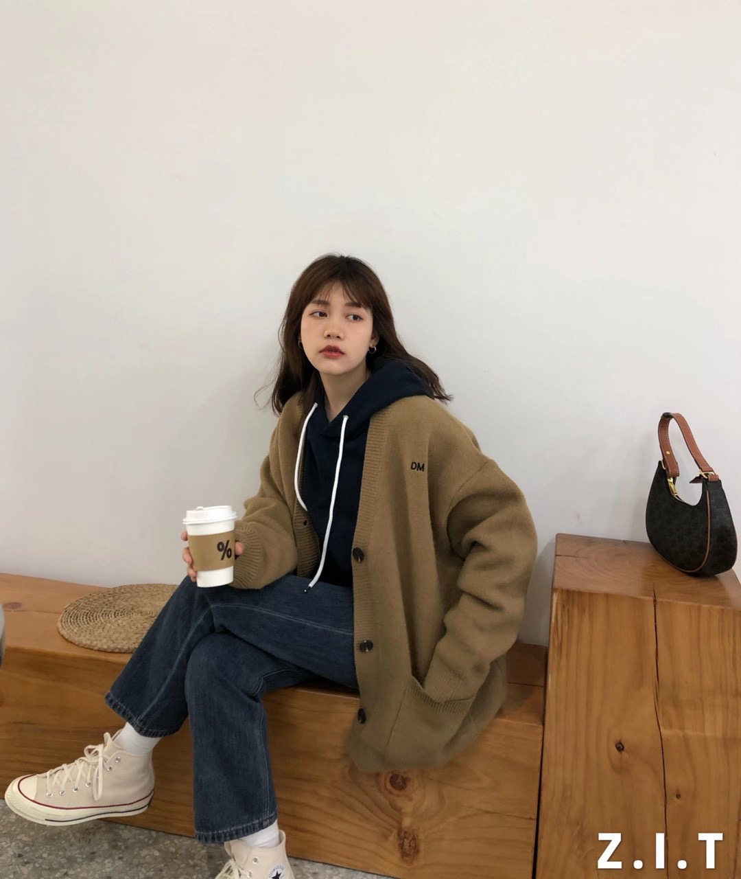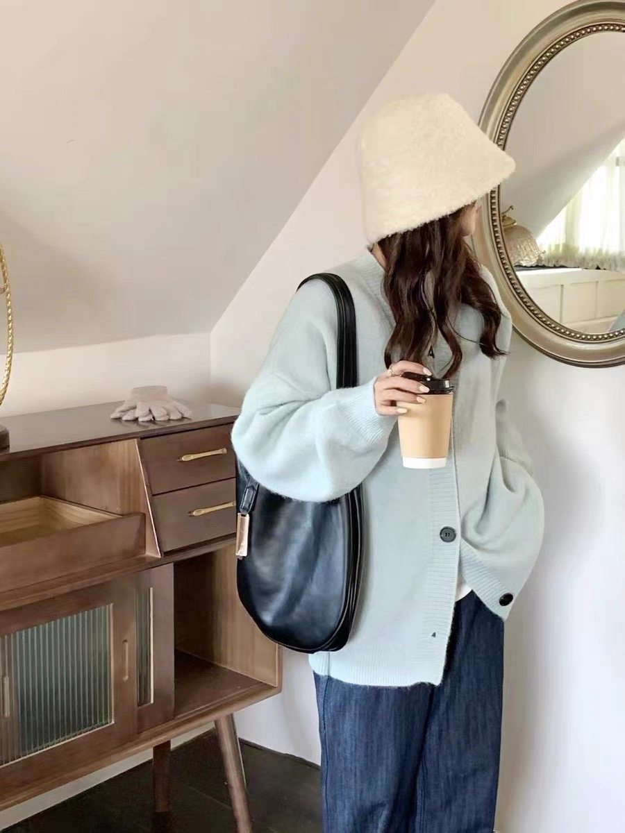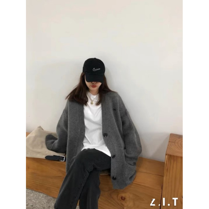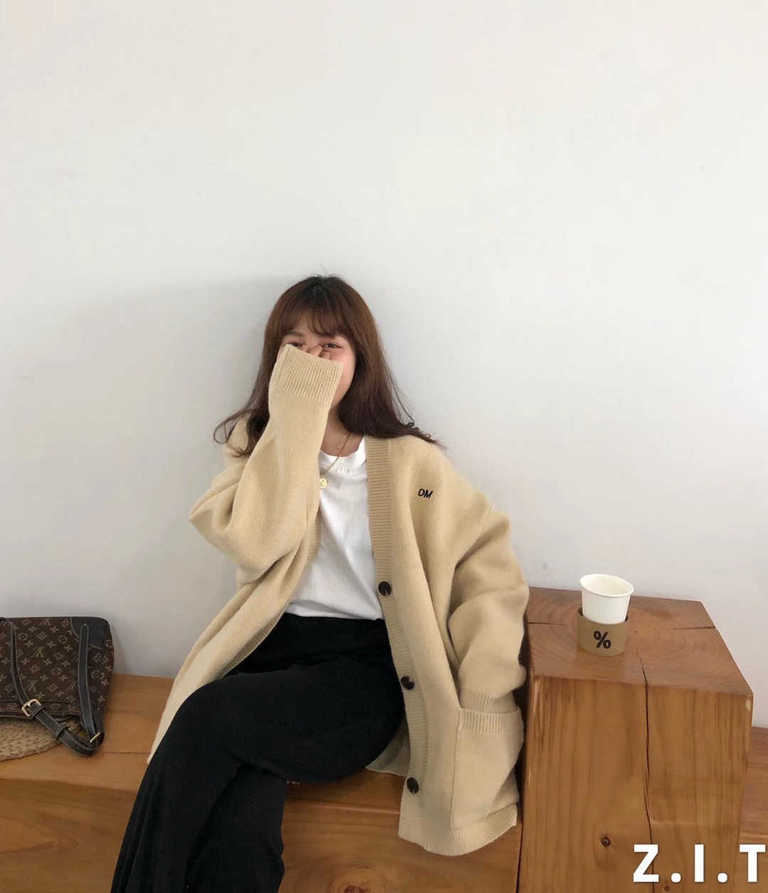 2025秋冬新韓國東大門胖mm寬松慵懶風v領毛衣外套女加厚針織開衫