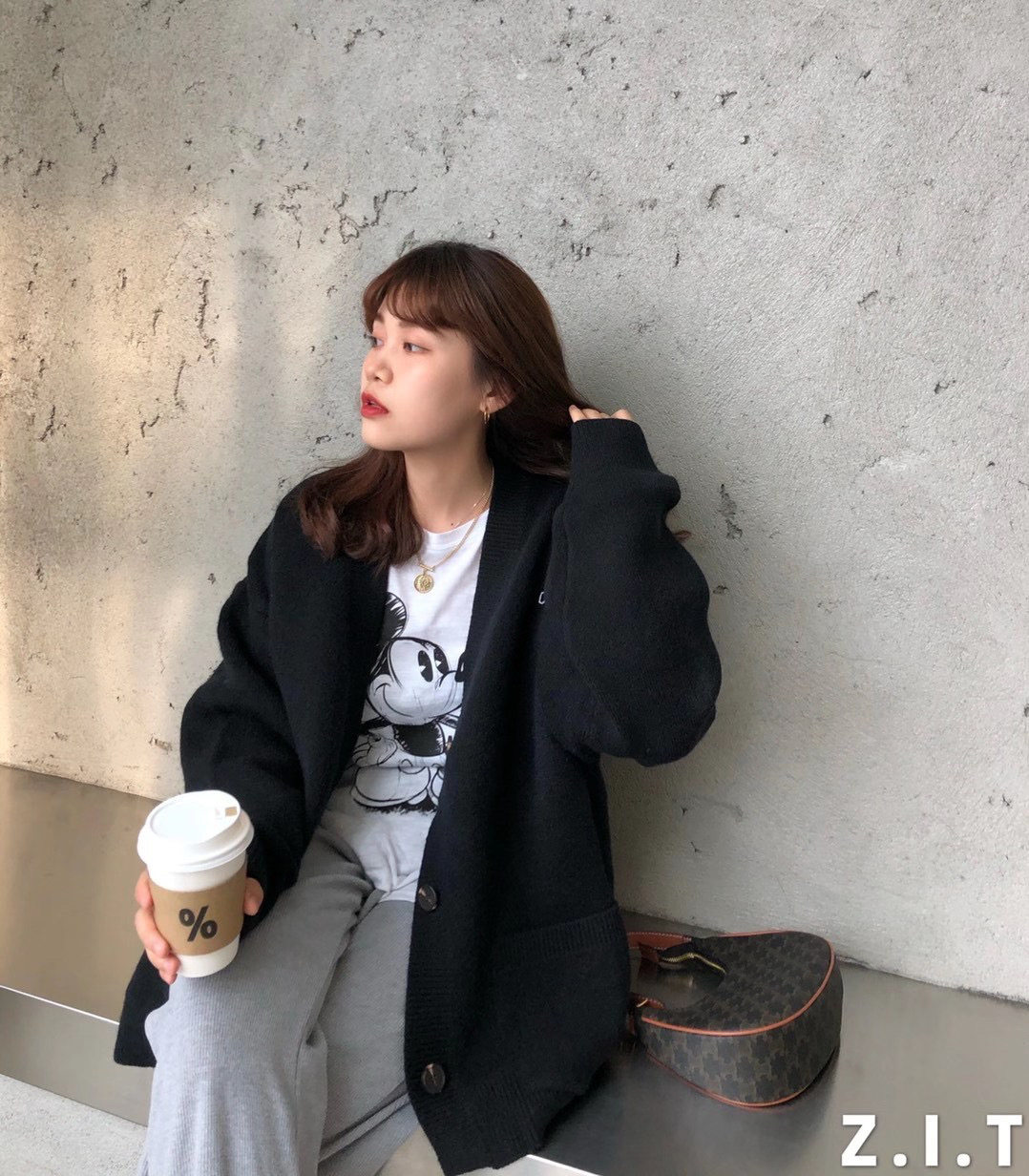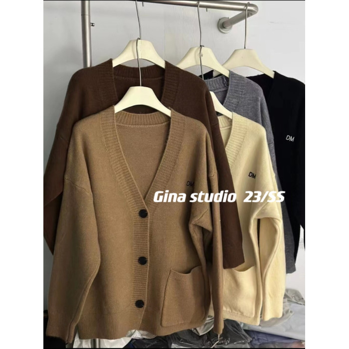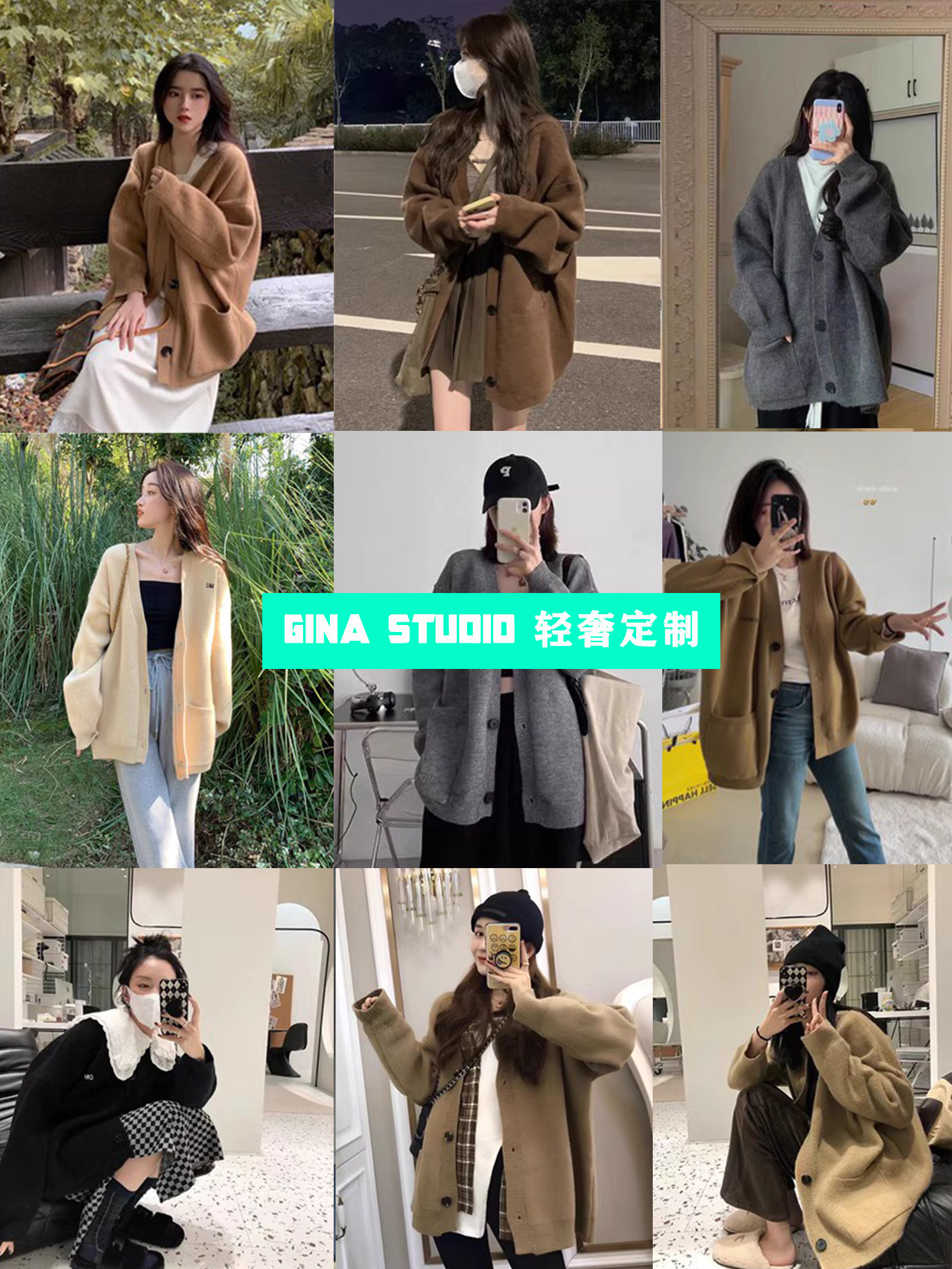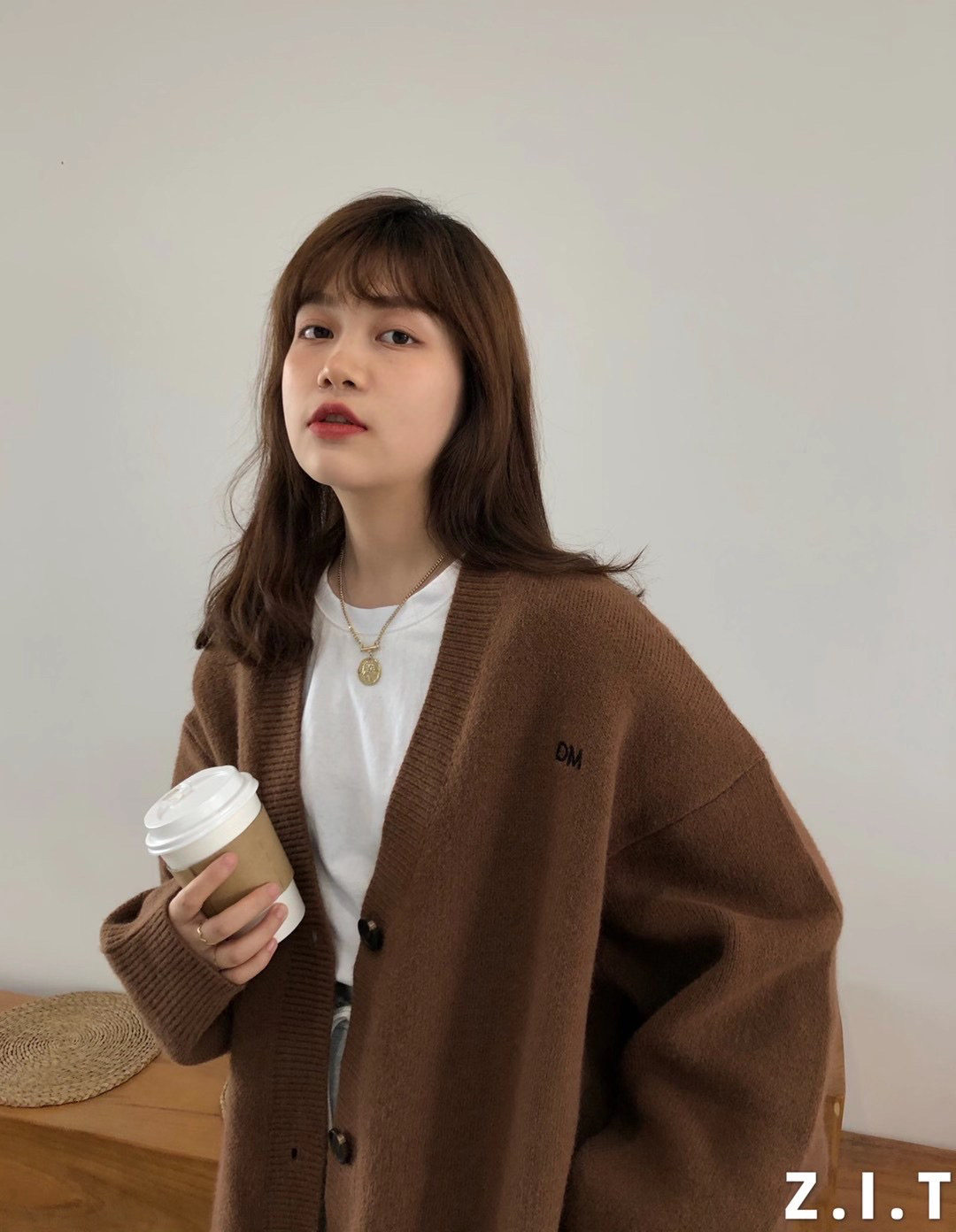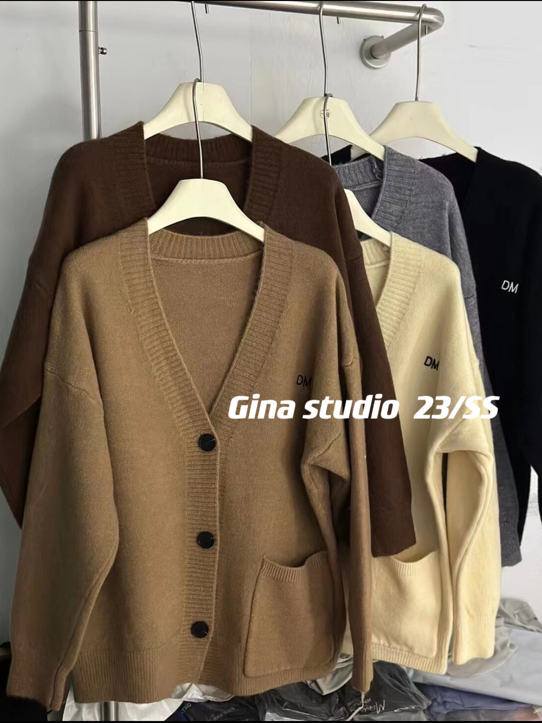 2025秋冬新韓國東大門胖mm寬松慵懶風v領毛衣外套女加厚針織開衫