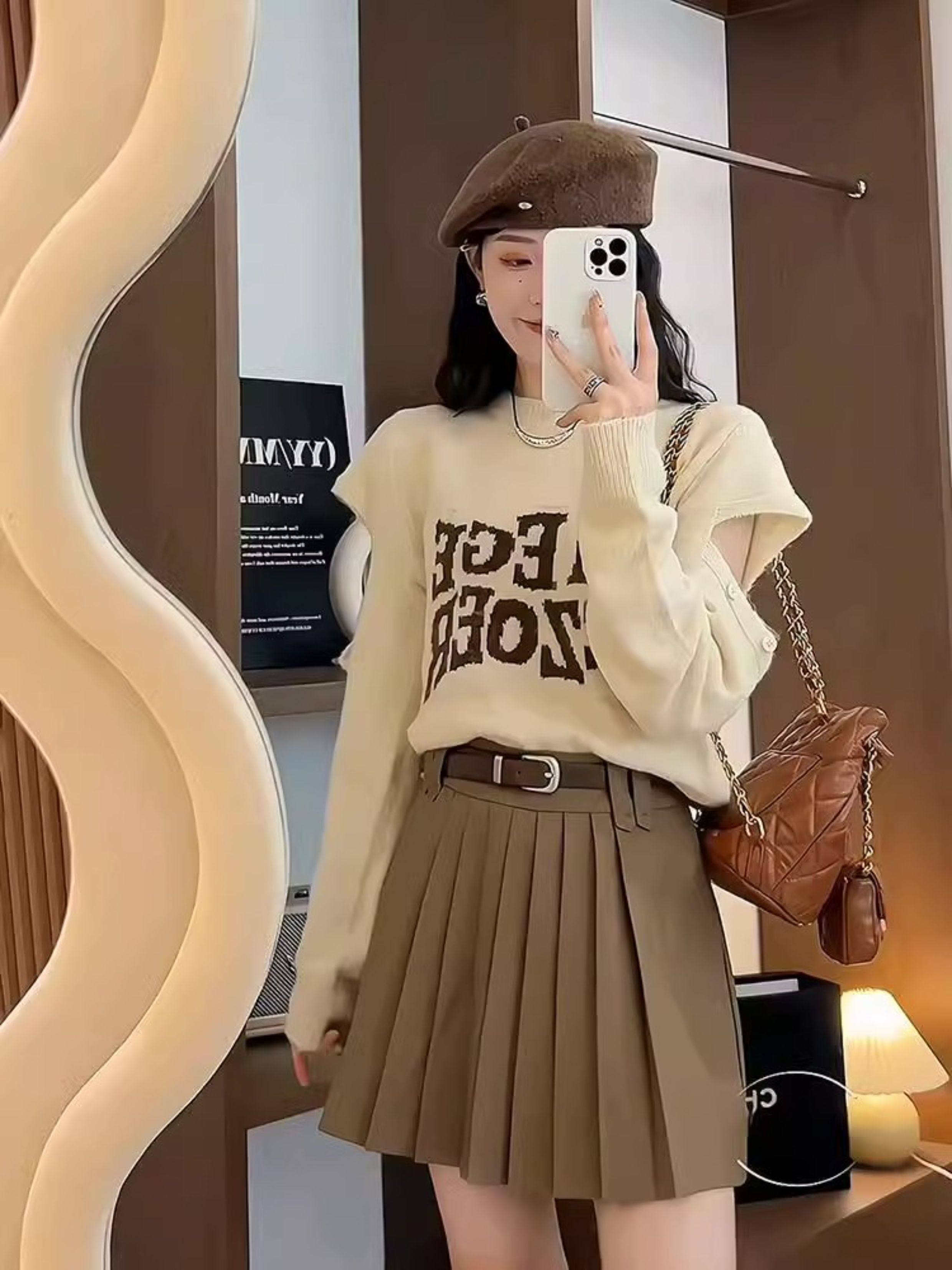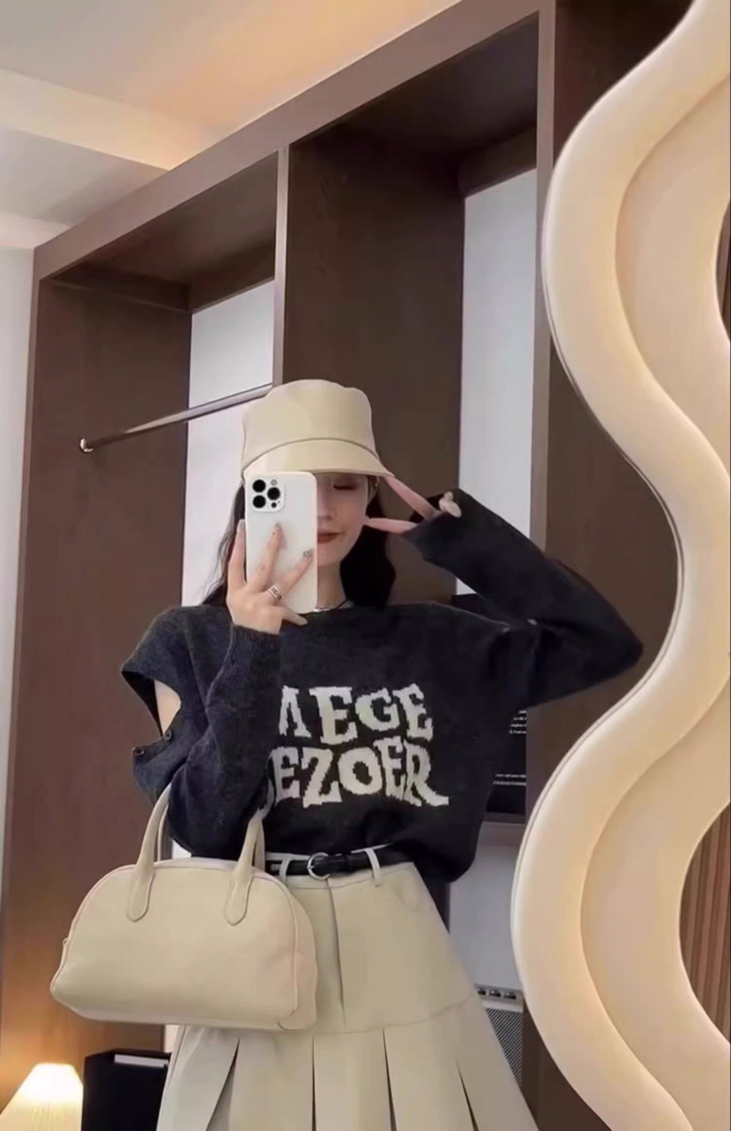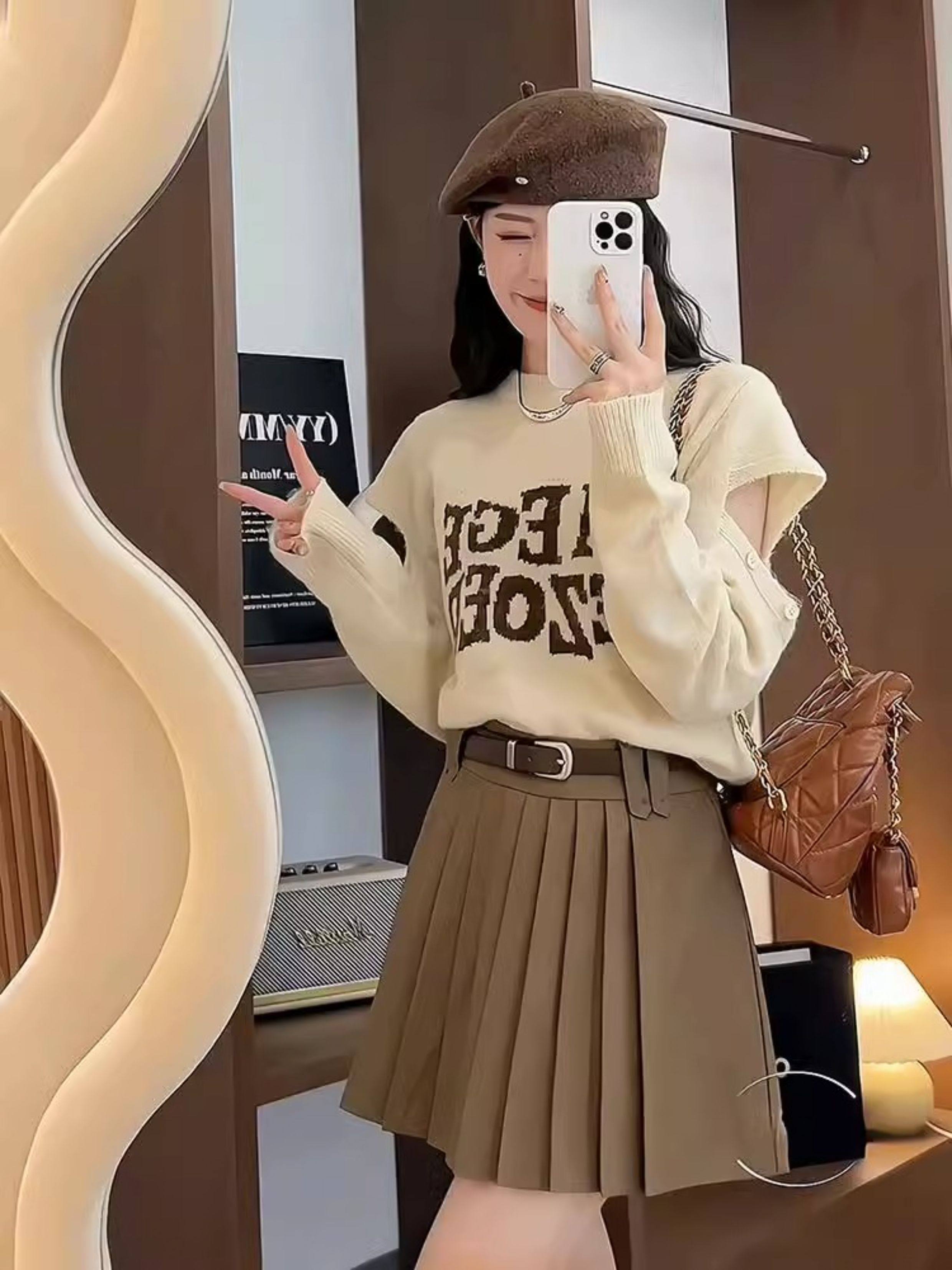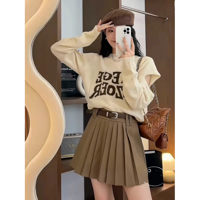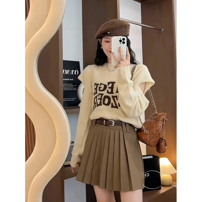 設計感小衆套頭毛衣女秋季新款小個子字母露肩短款外穿針織衫上衣