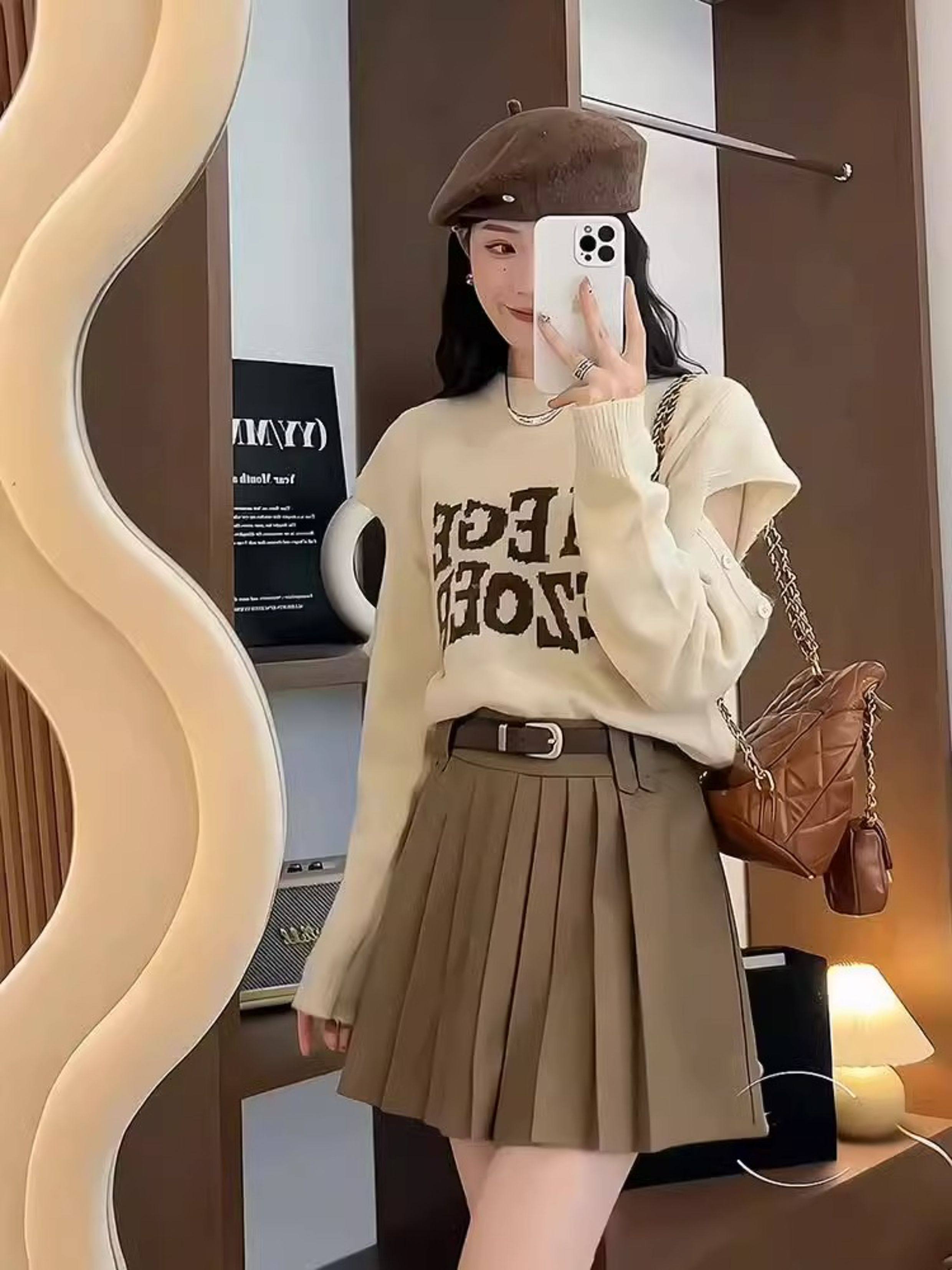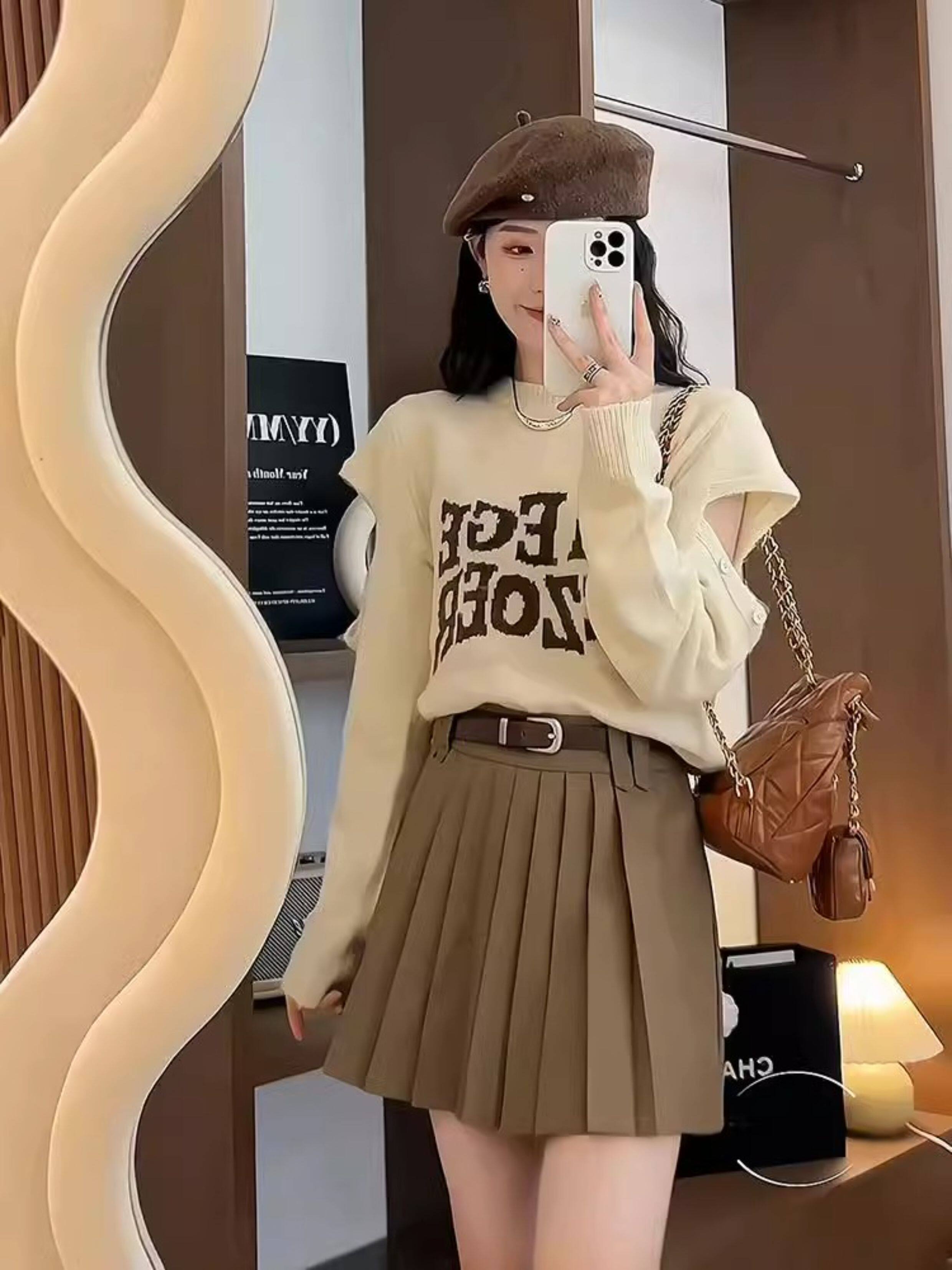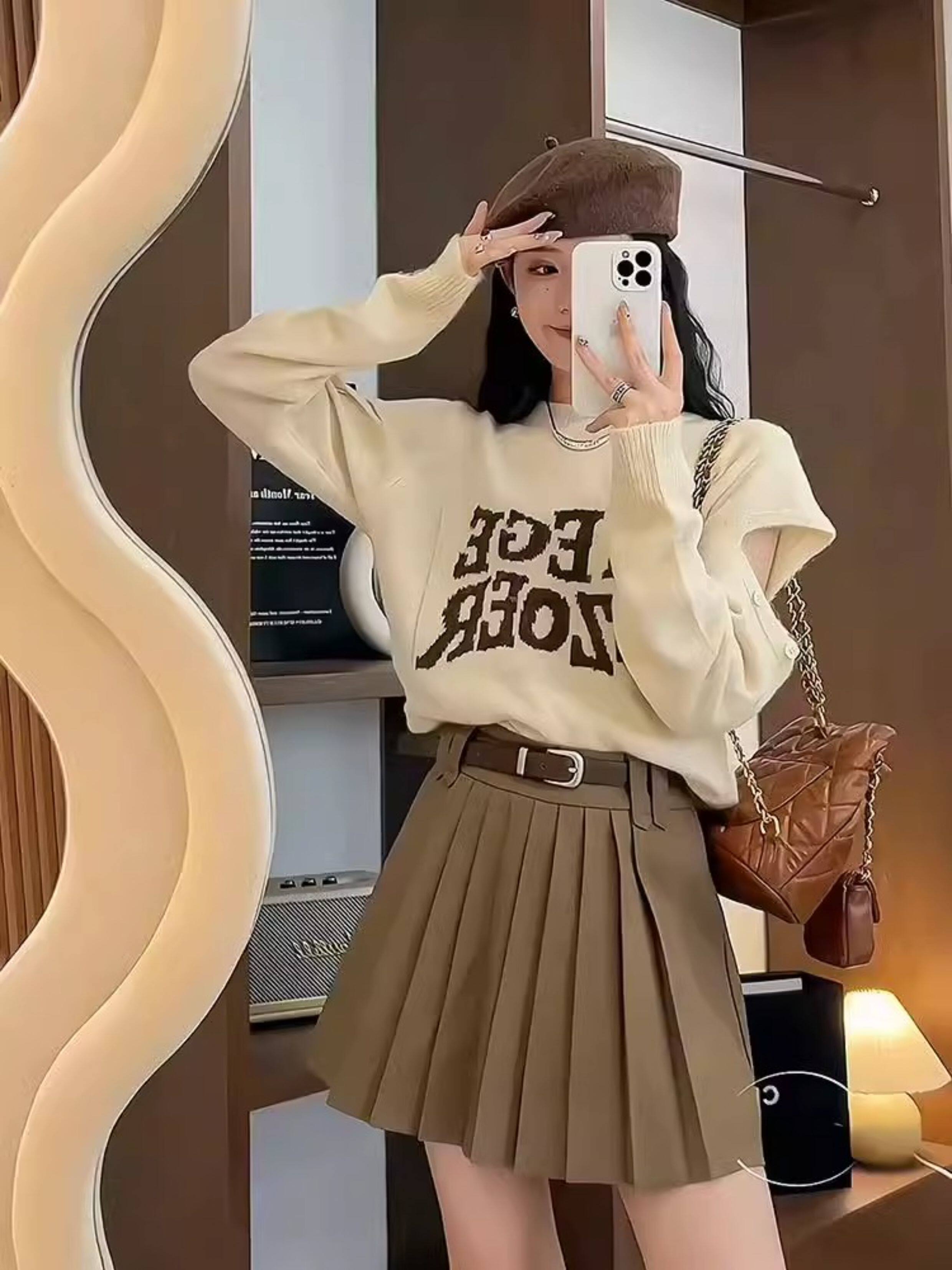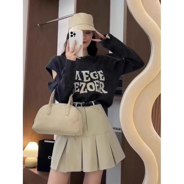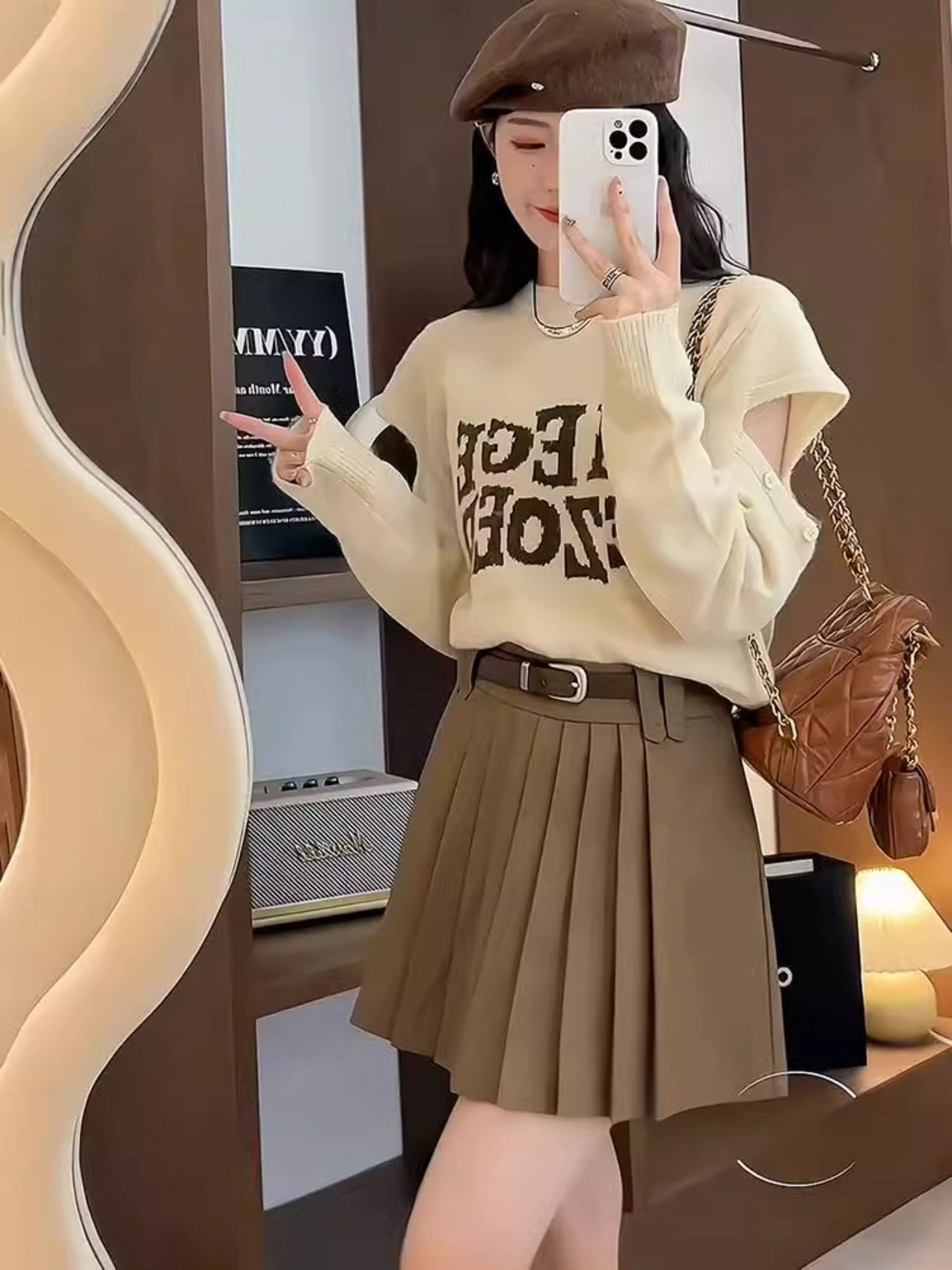設計感小衆套頭毛衣女秋季新款小個子字母露肩短款外穿針織衫上衣