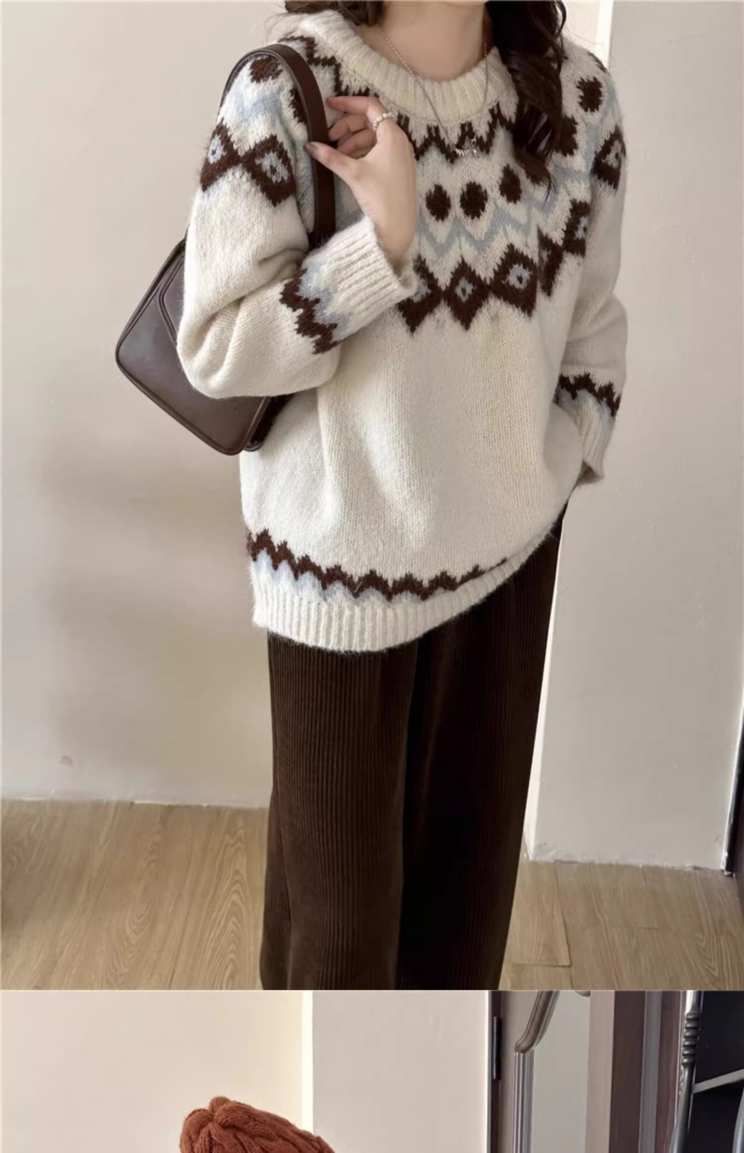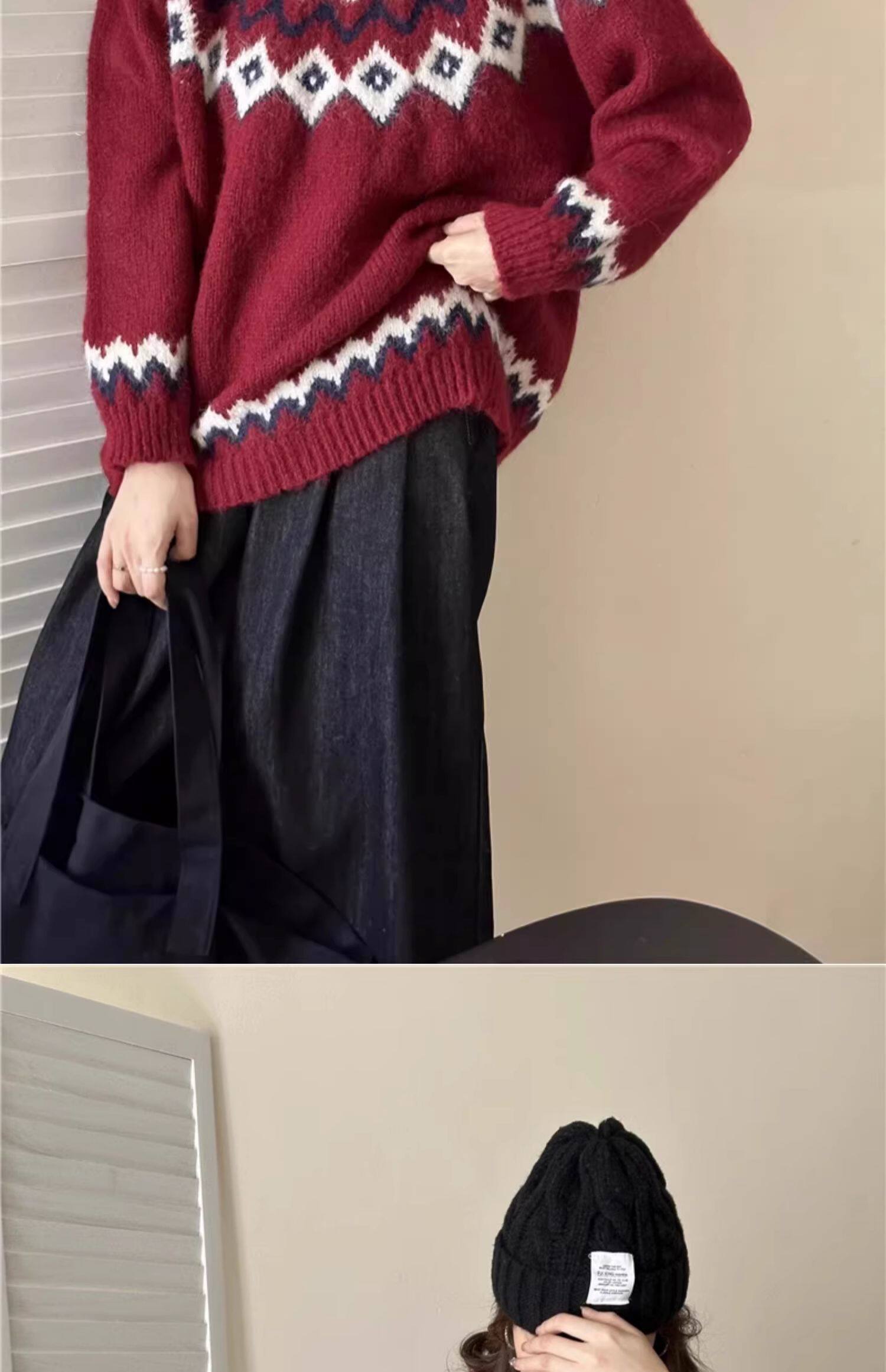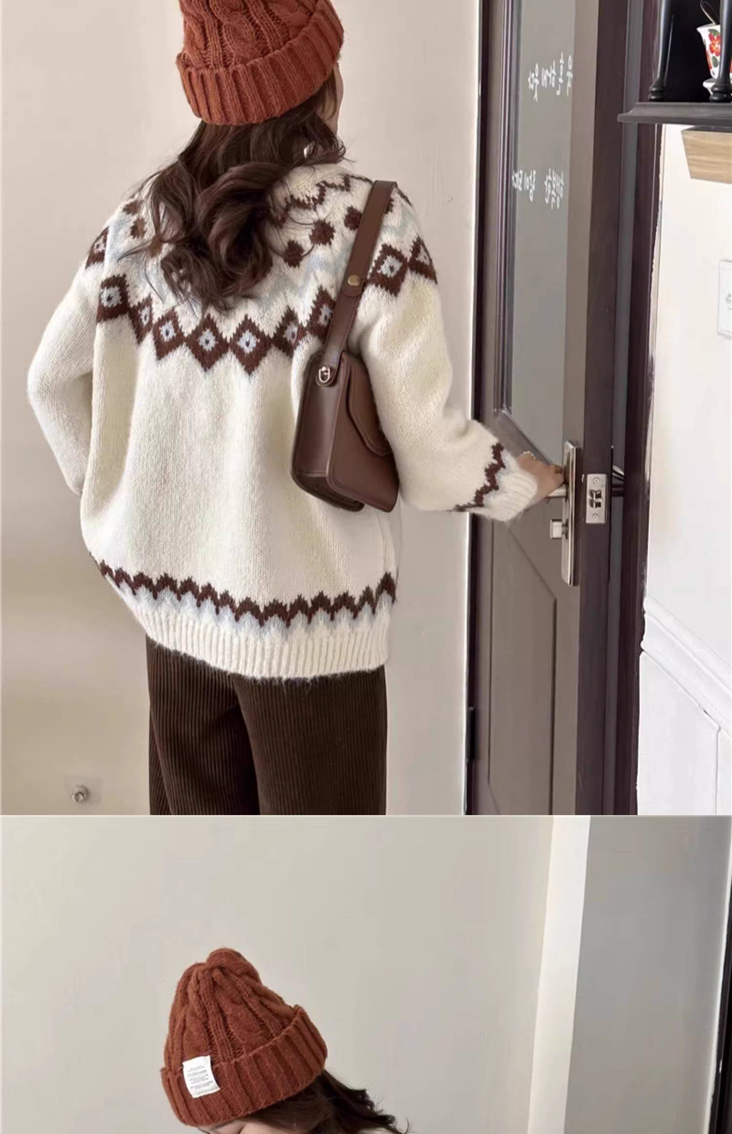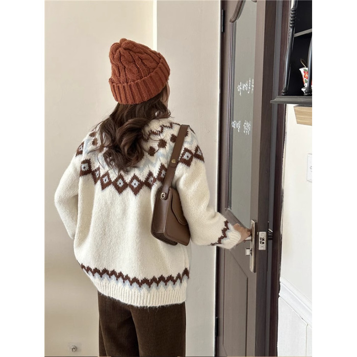 復古費爾島軟糯毛衣女秋冬寬松加厚溫柔慵懶風套頭針織衫聖誕穿搭