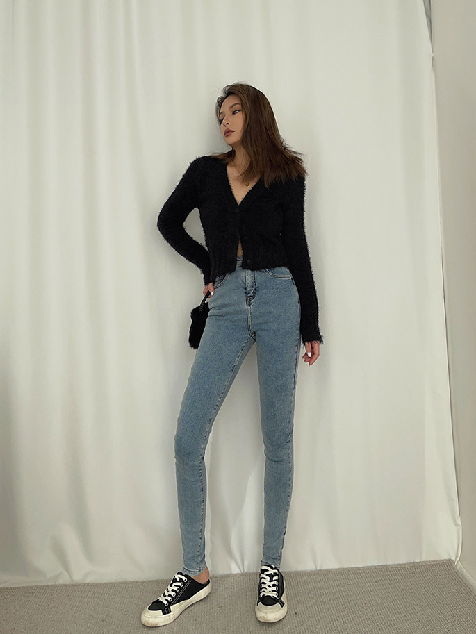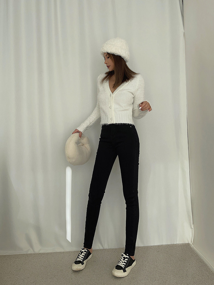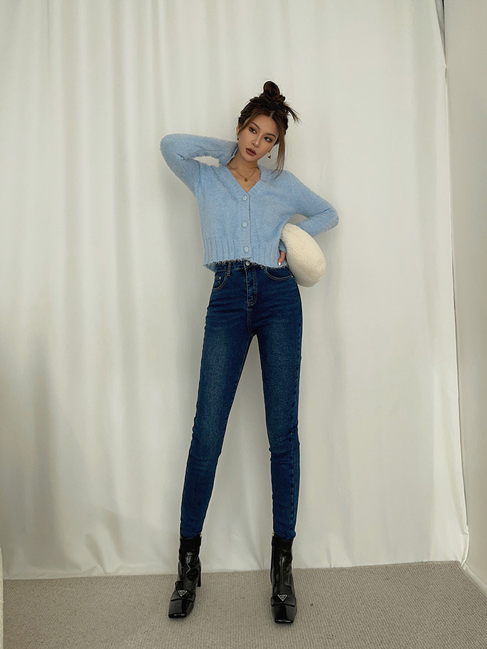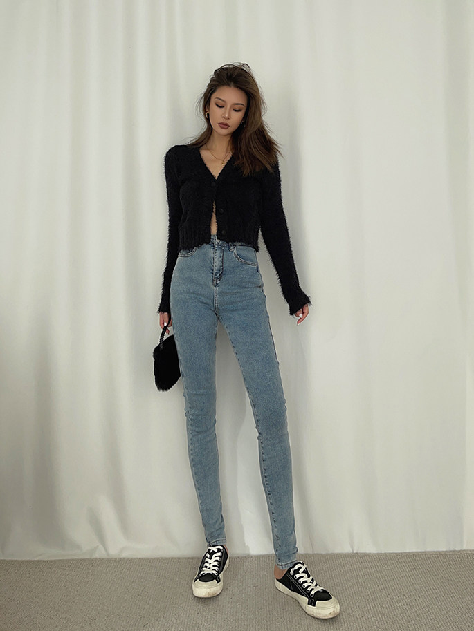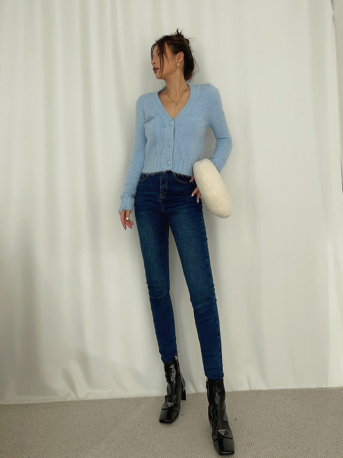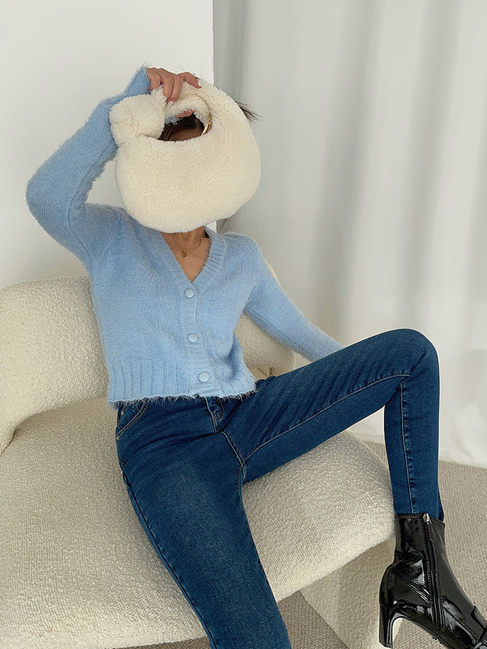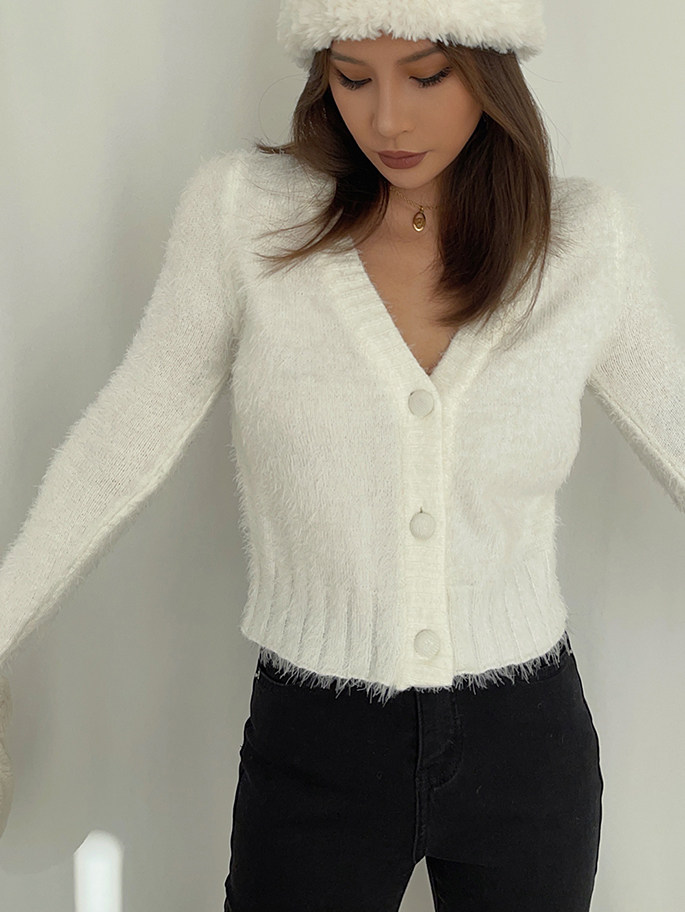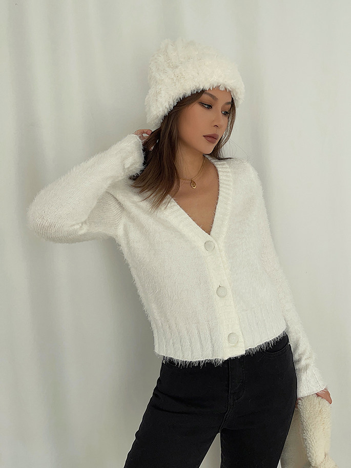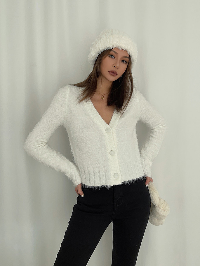 辣妹顯瘦高腰V領毛絨軟糯針織小開衫長袖毛衣短款外套2024年新款