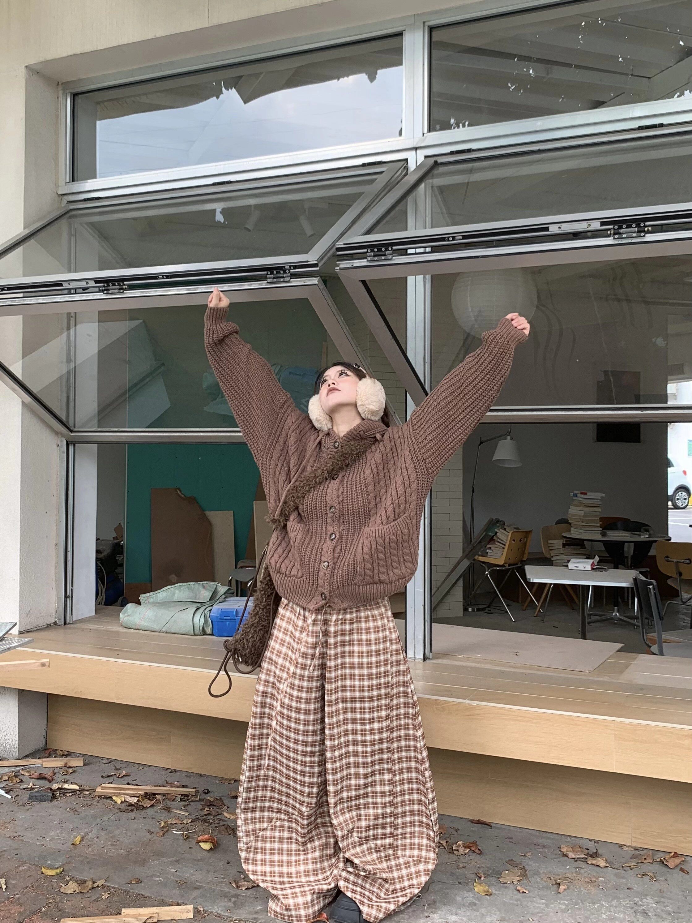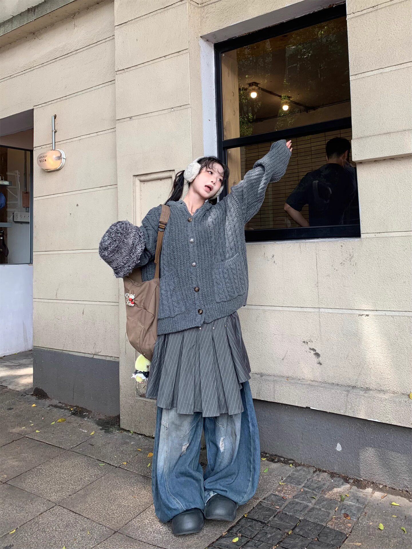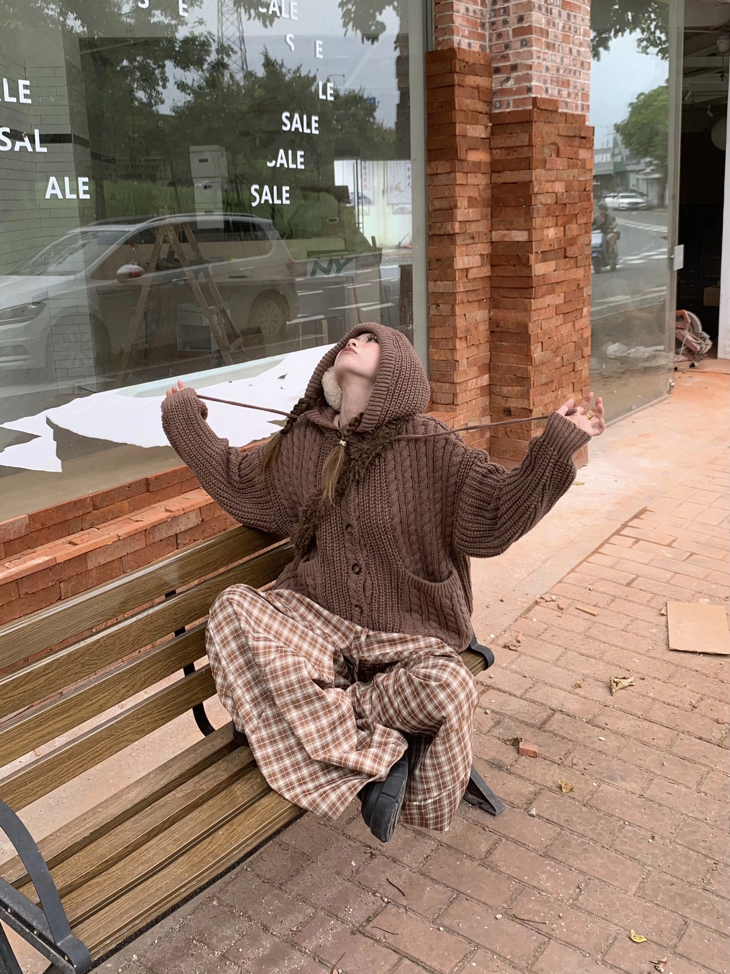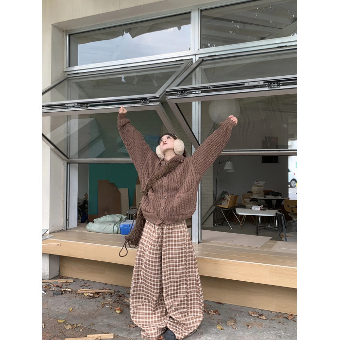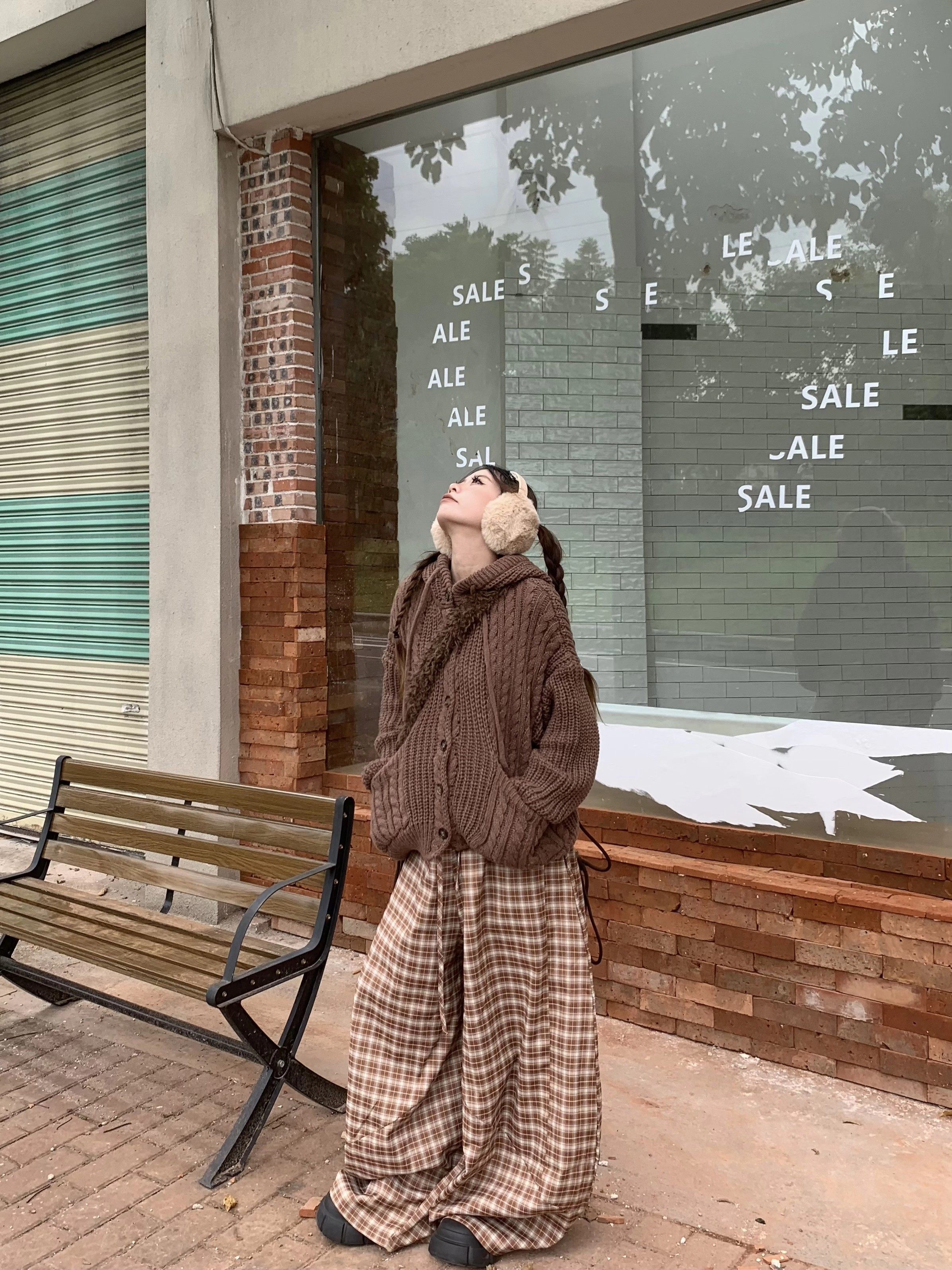 美式復古慵懶風秋冬新款連帽開衫毛衣外套女設計感寬松針織上衣潮