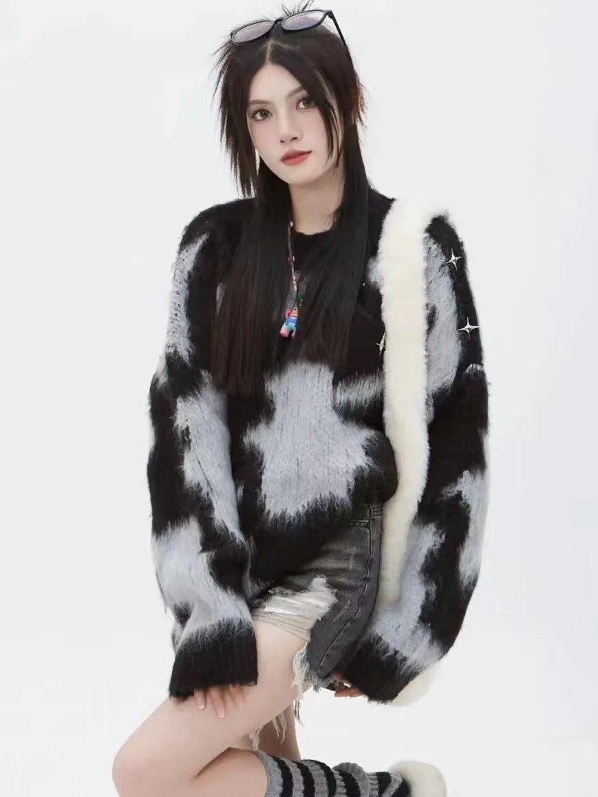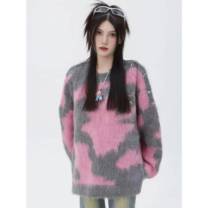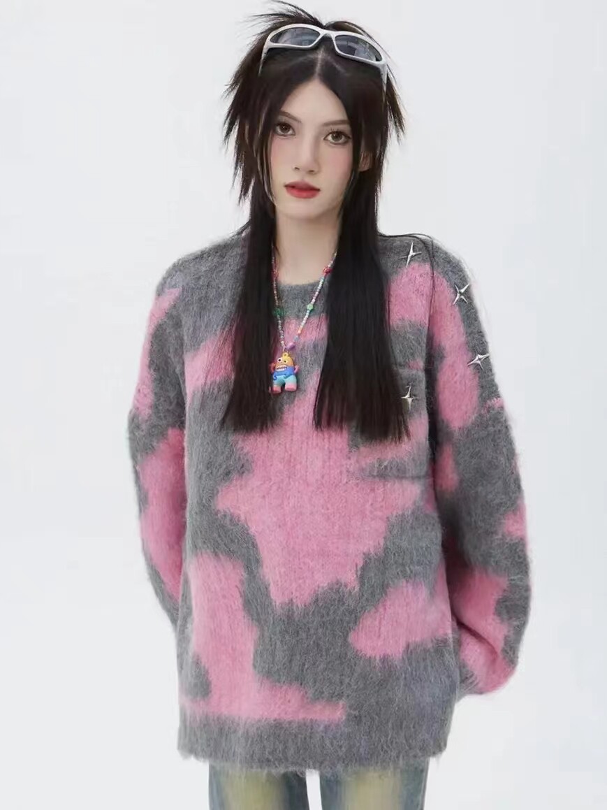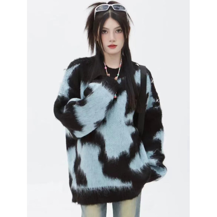 慵懶風紥染套頭針織毛衣女2024秋冬季新款寬松顯瘦水貂絨氣質上衣