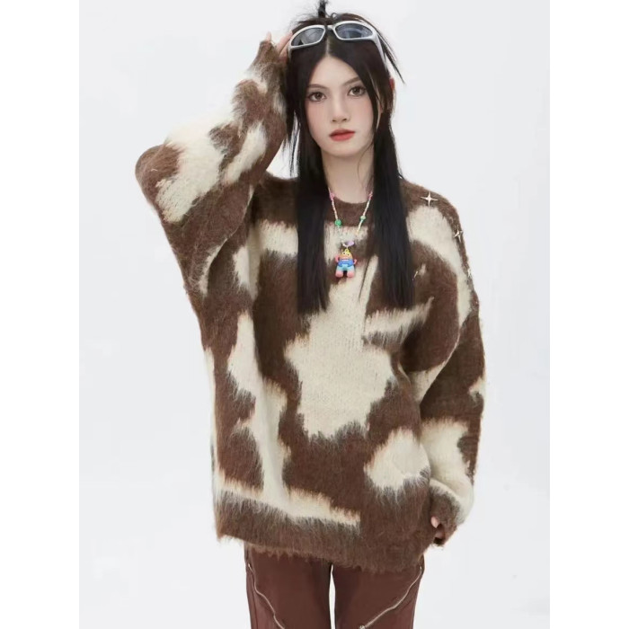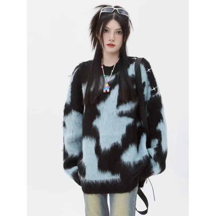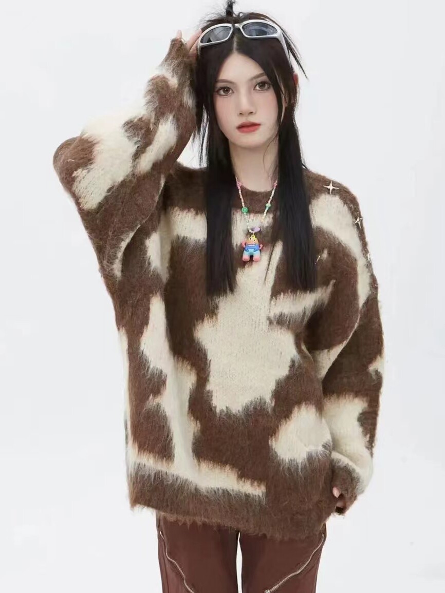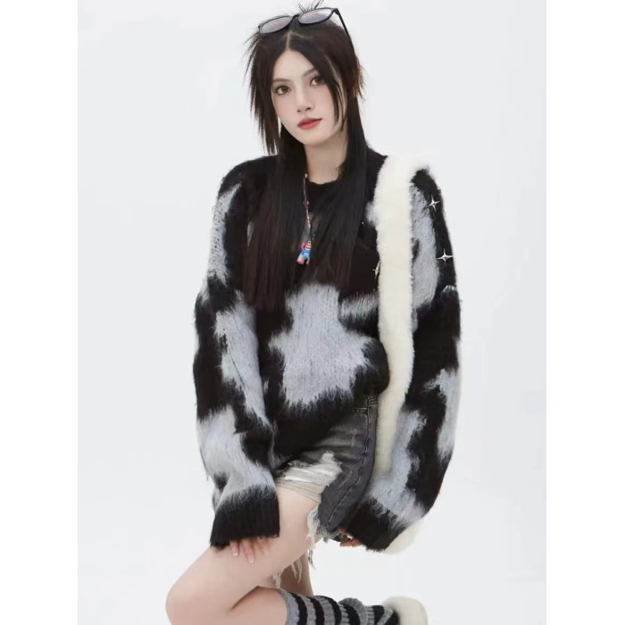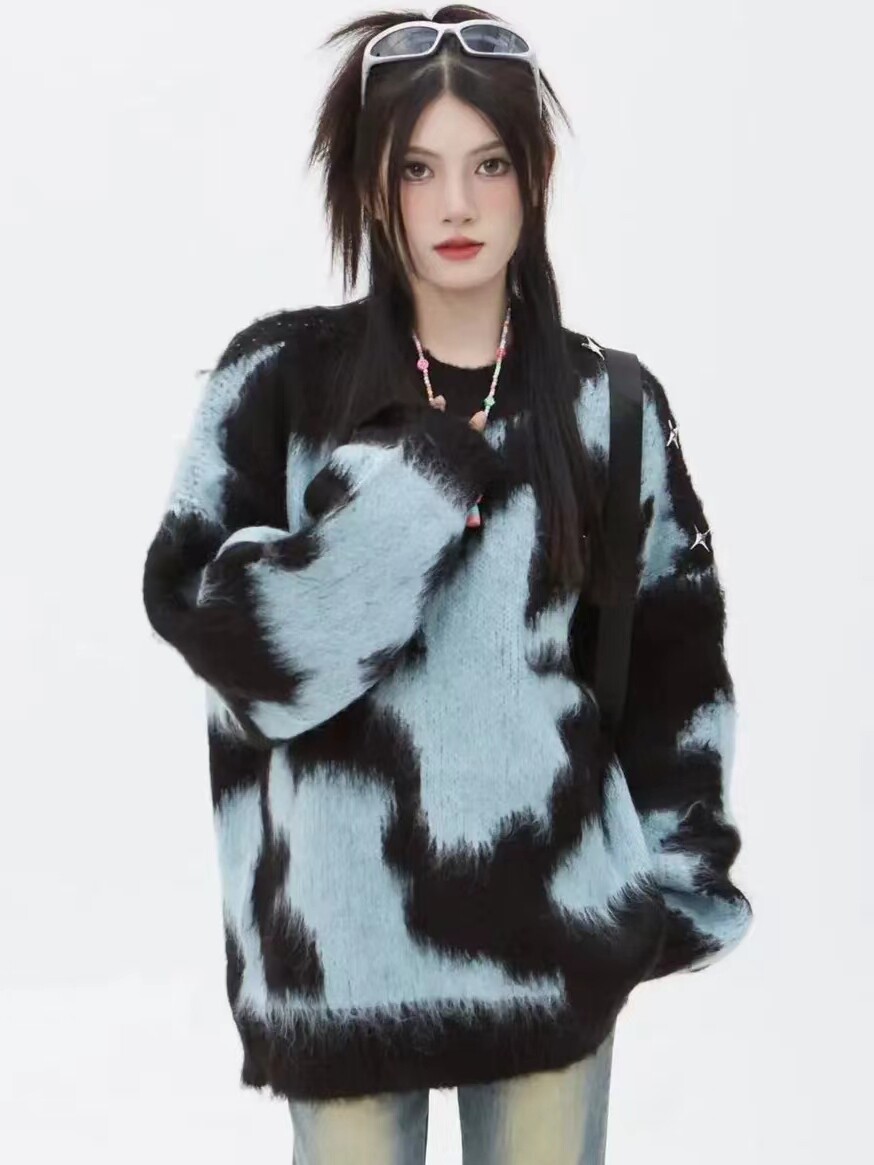 慵懶風紥染套頭針織毛衣女2024秋冬季新款寬松顯瘦水貂絨氣質上衣