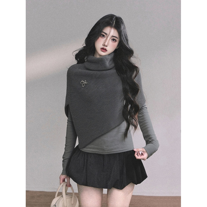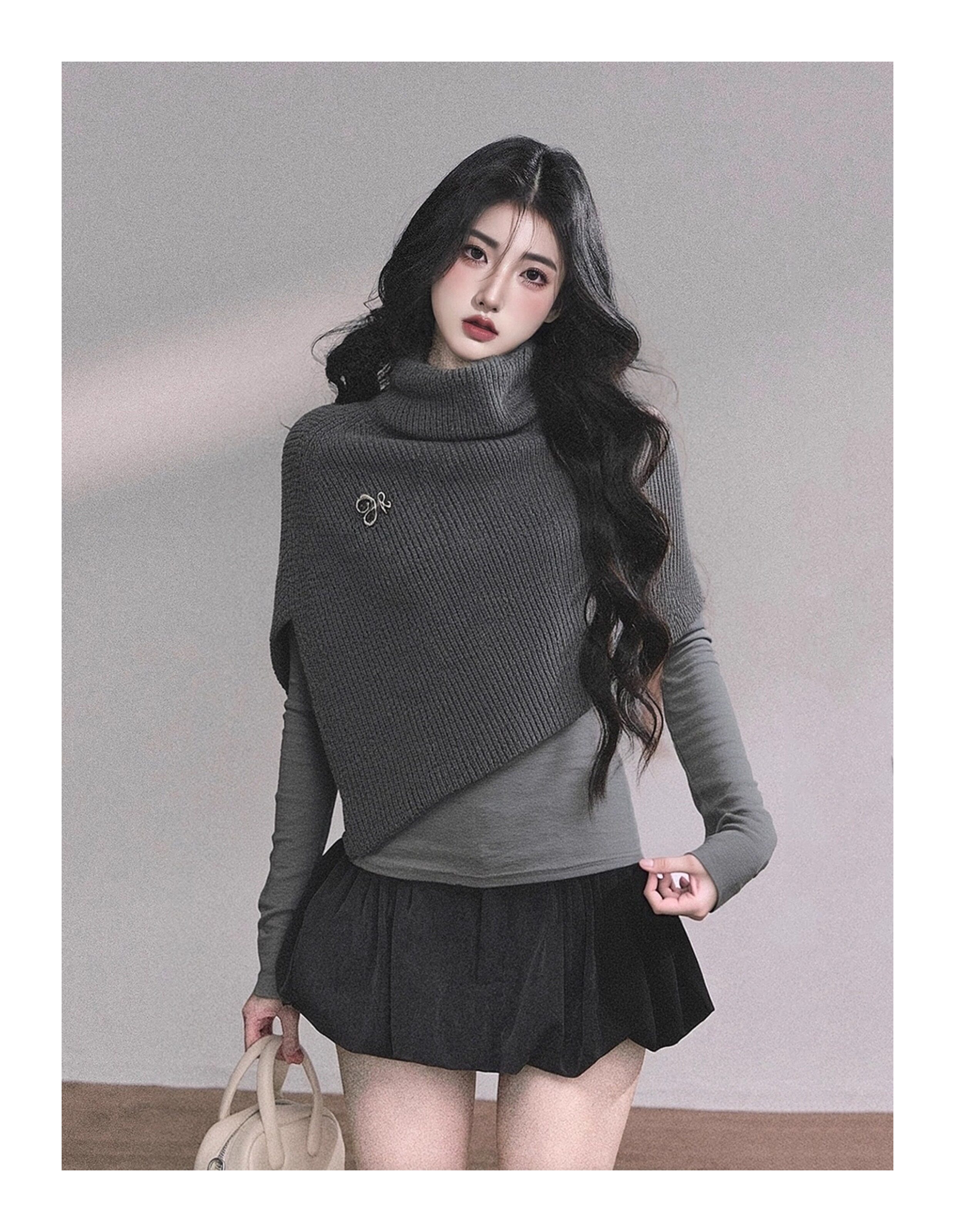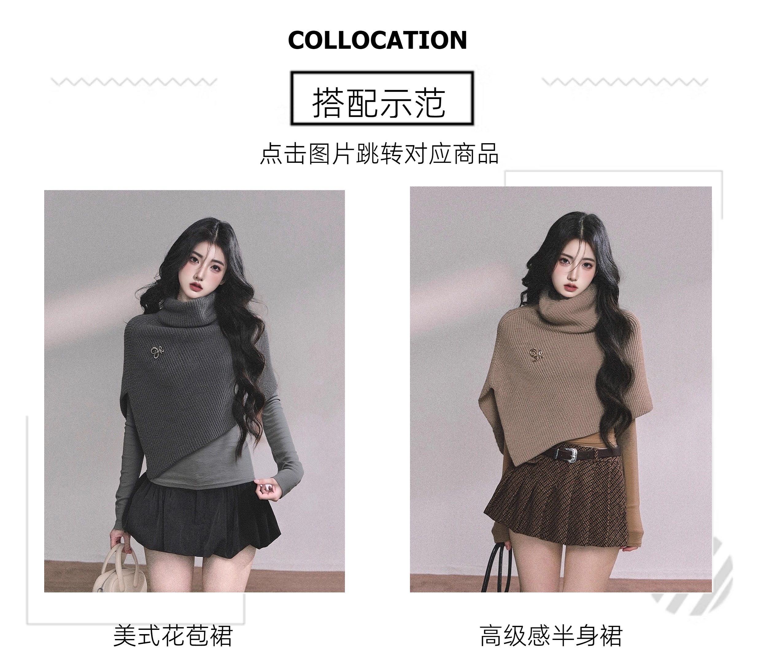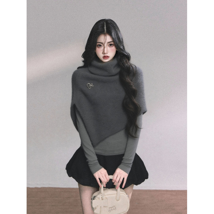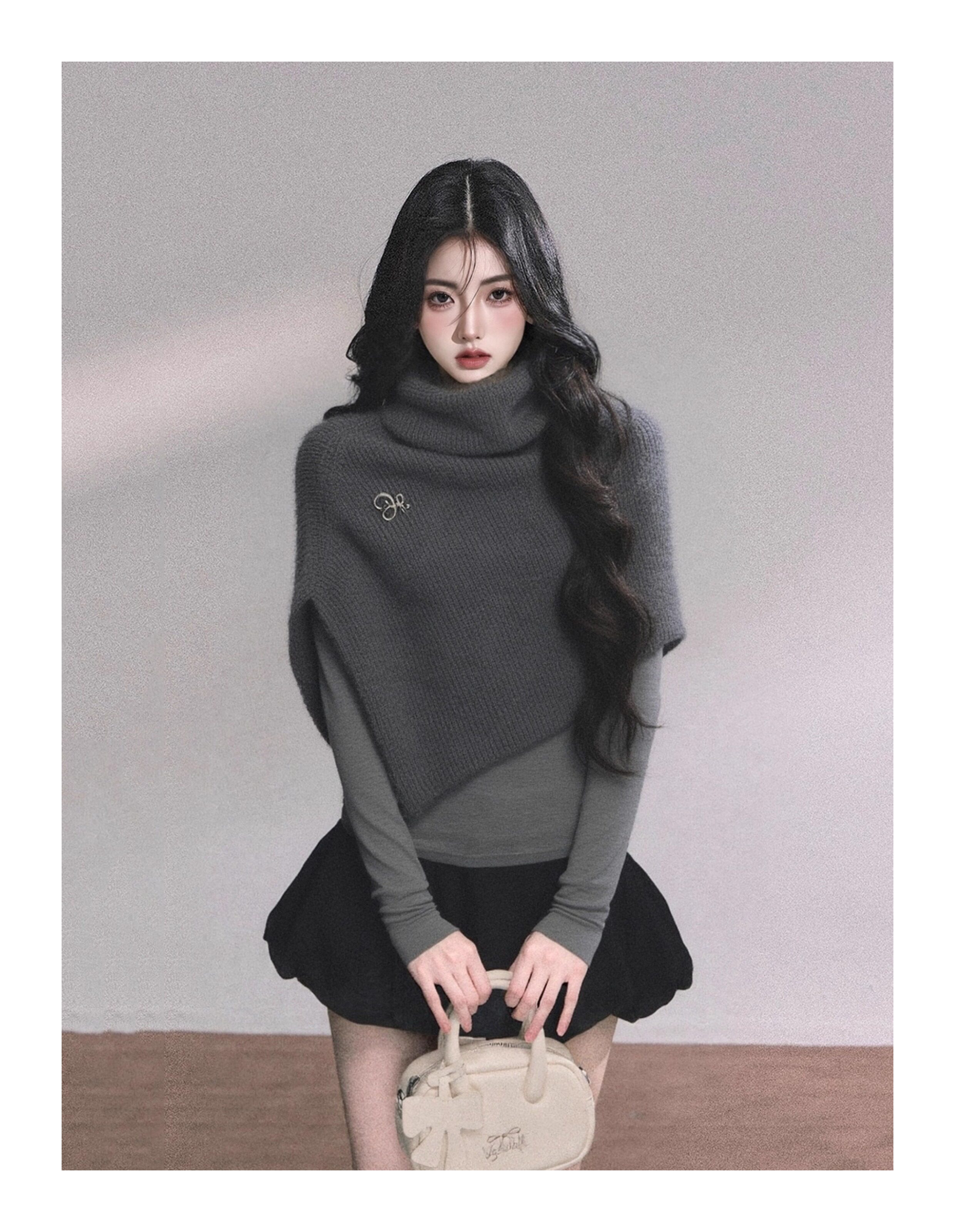 韓系設計小衆時尚穿搭高領針織毛衣披肩鬭篷高級感氣質寬松上衣女