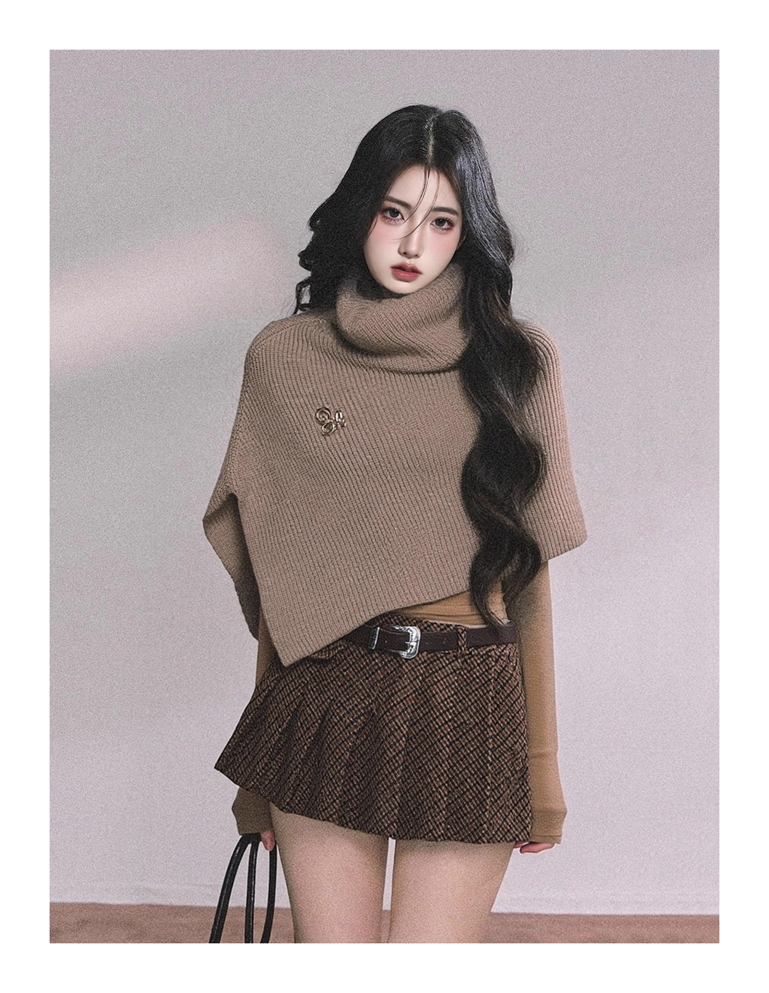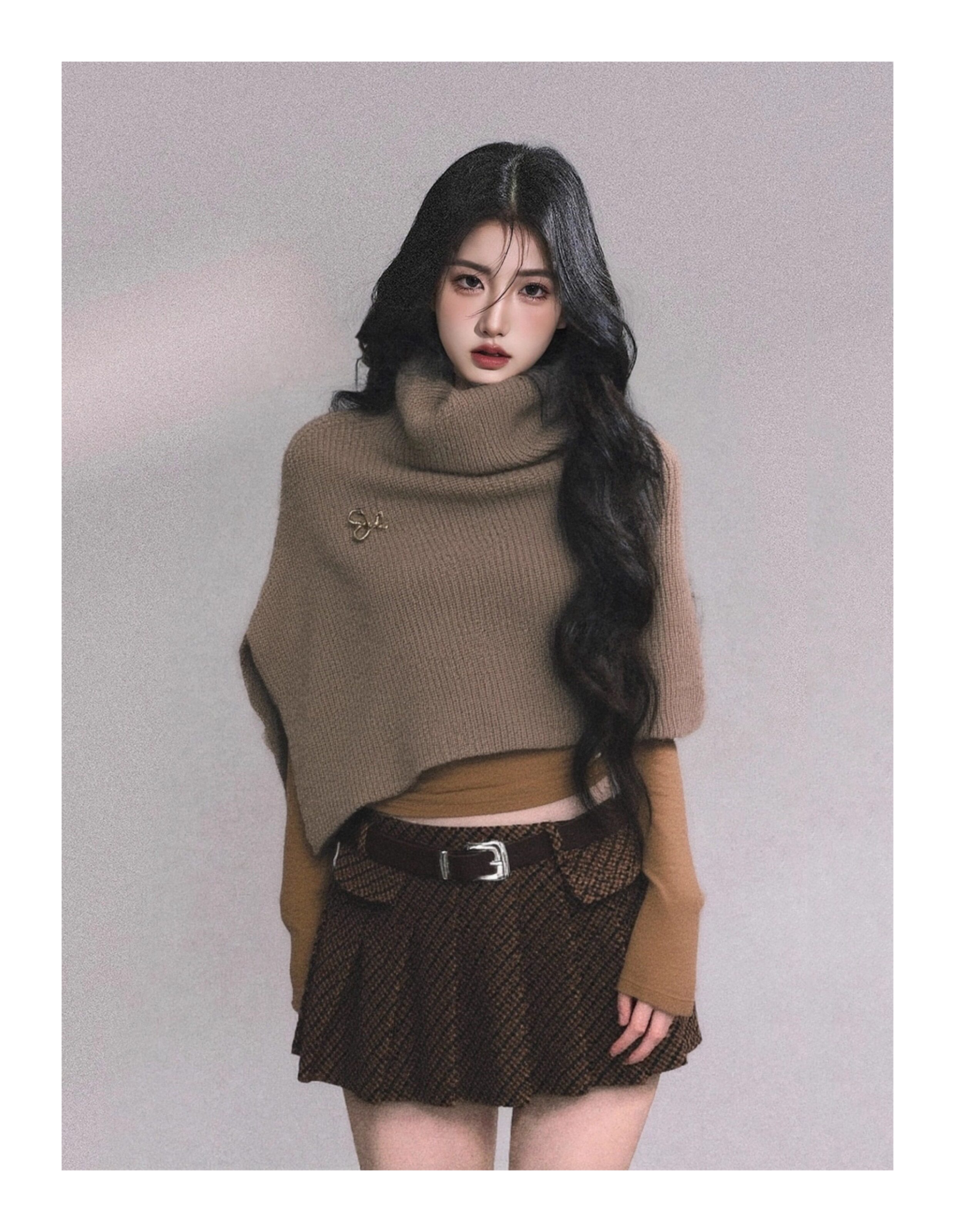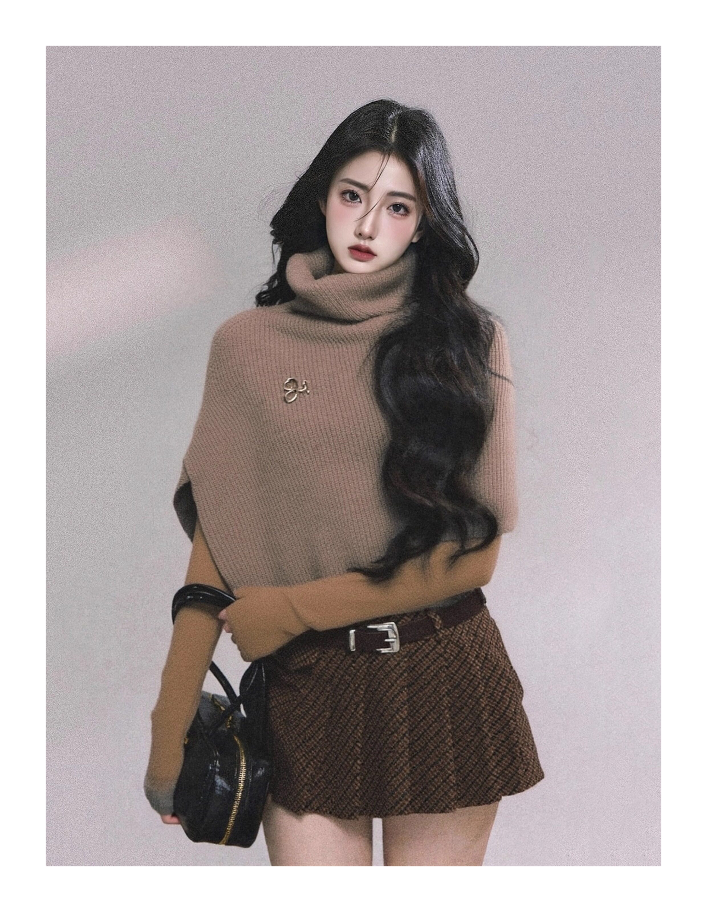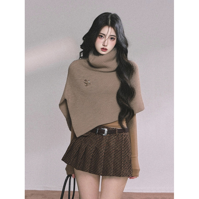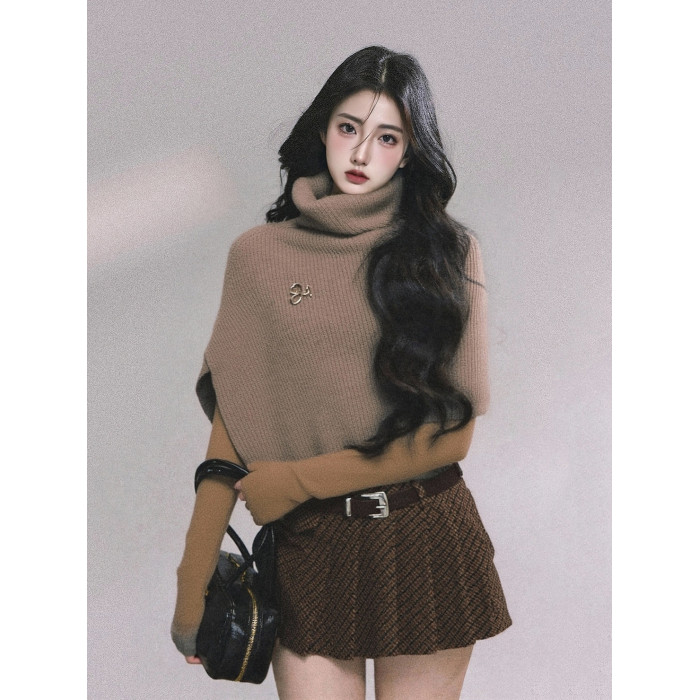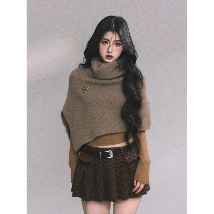 韓系設計小衆時尚穿搭高領針織毛衣披肩鬭篷高級感氣質寬松上衣女