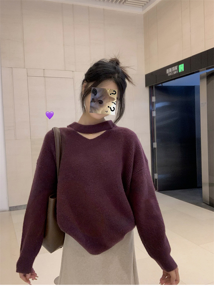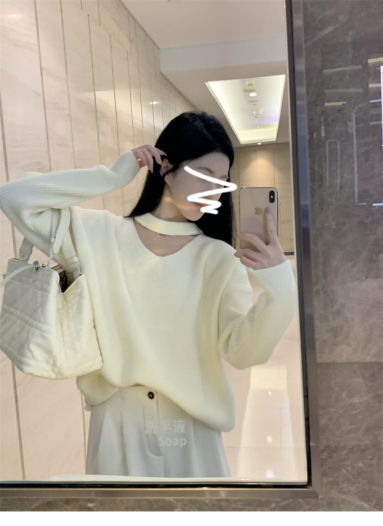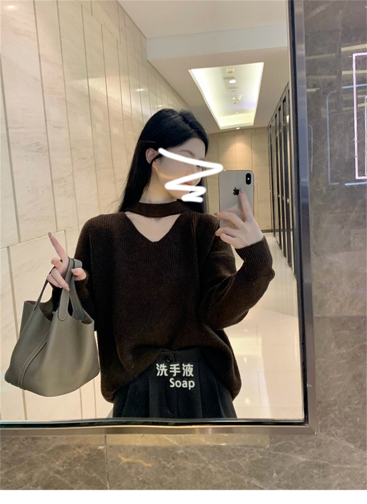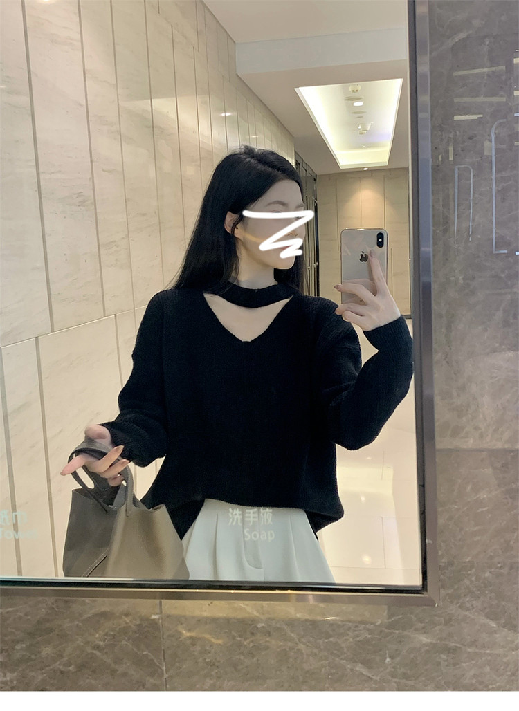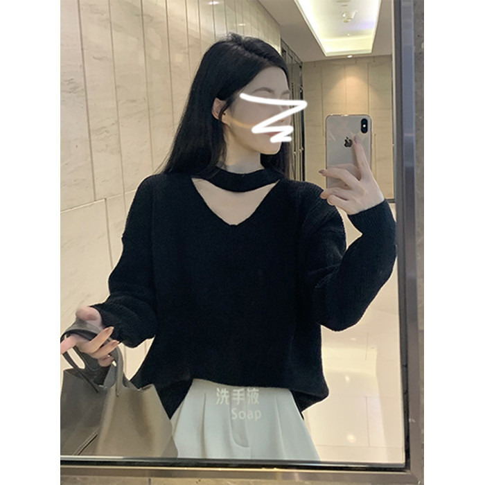 今年流行的漂亮毛衣女秋冬季2025新款慵懶風黑色v領針織內搭上衣
