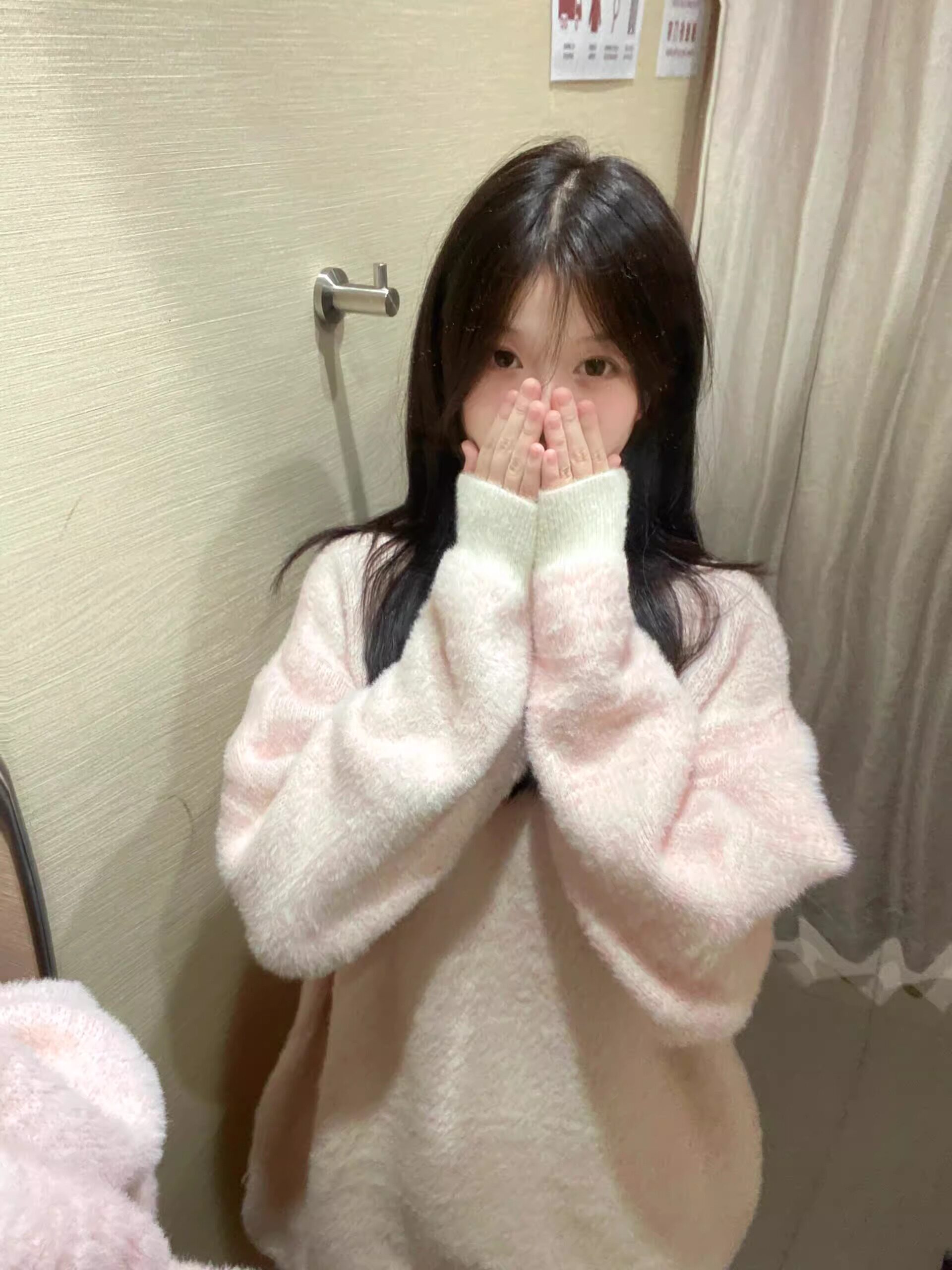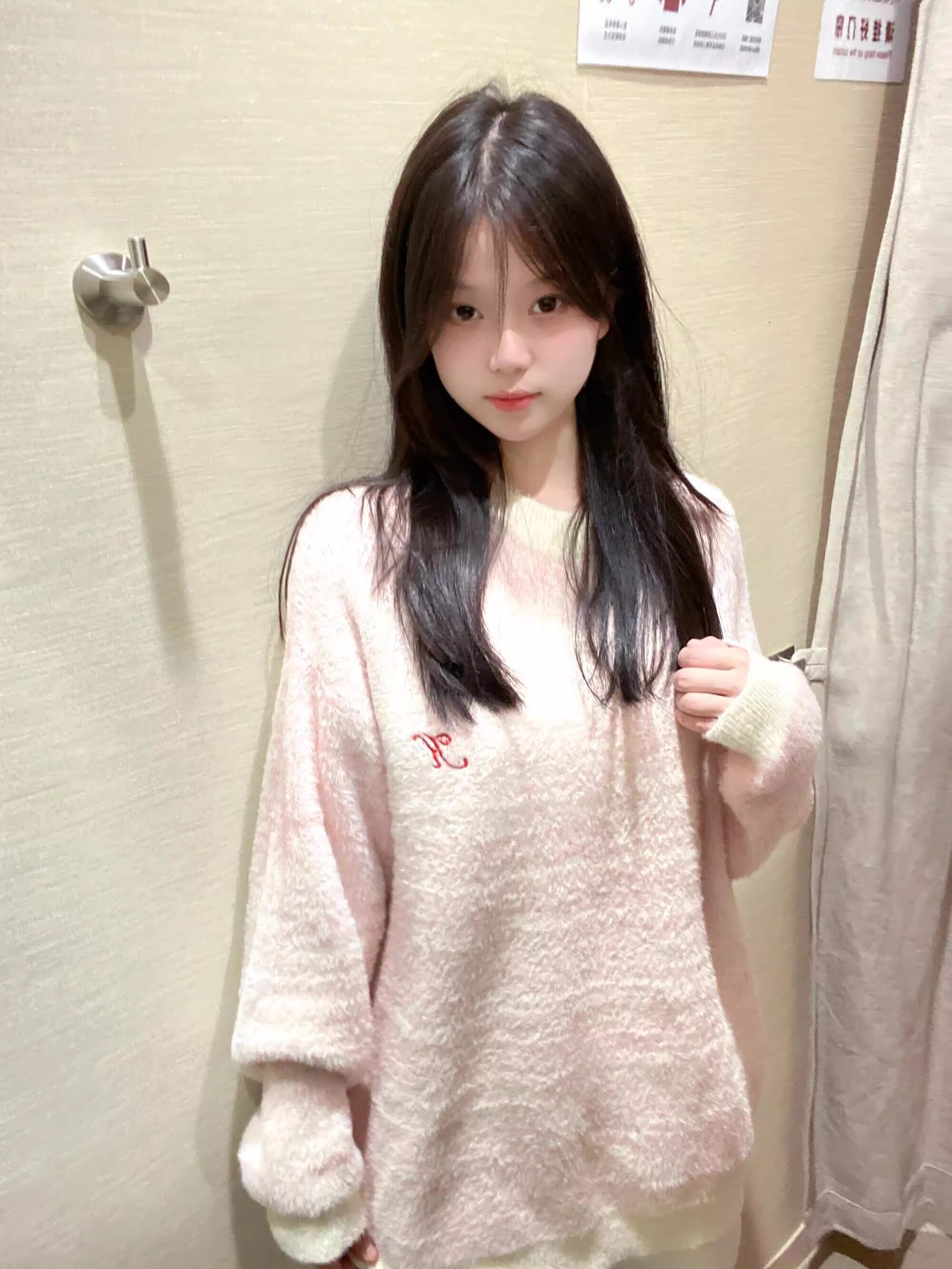 粉色馬海毛軟糯毛衣女秋季2025新款針織衫寬松圓領長袖慵懶風上衣