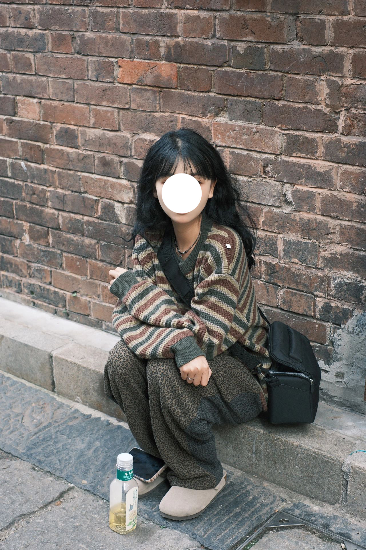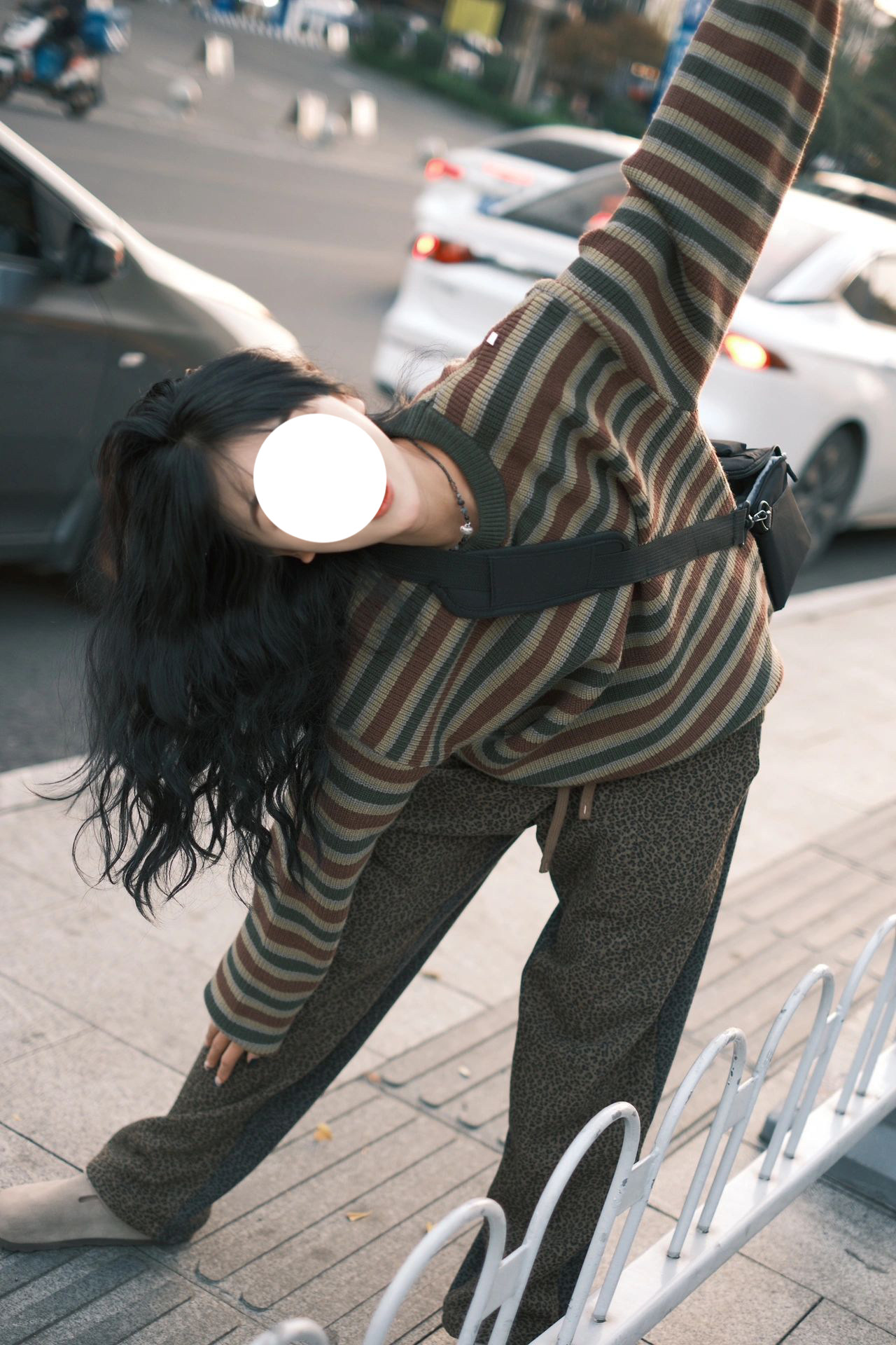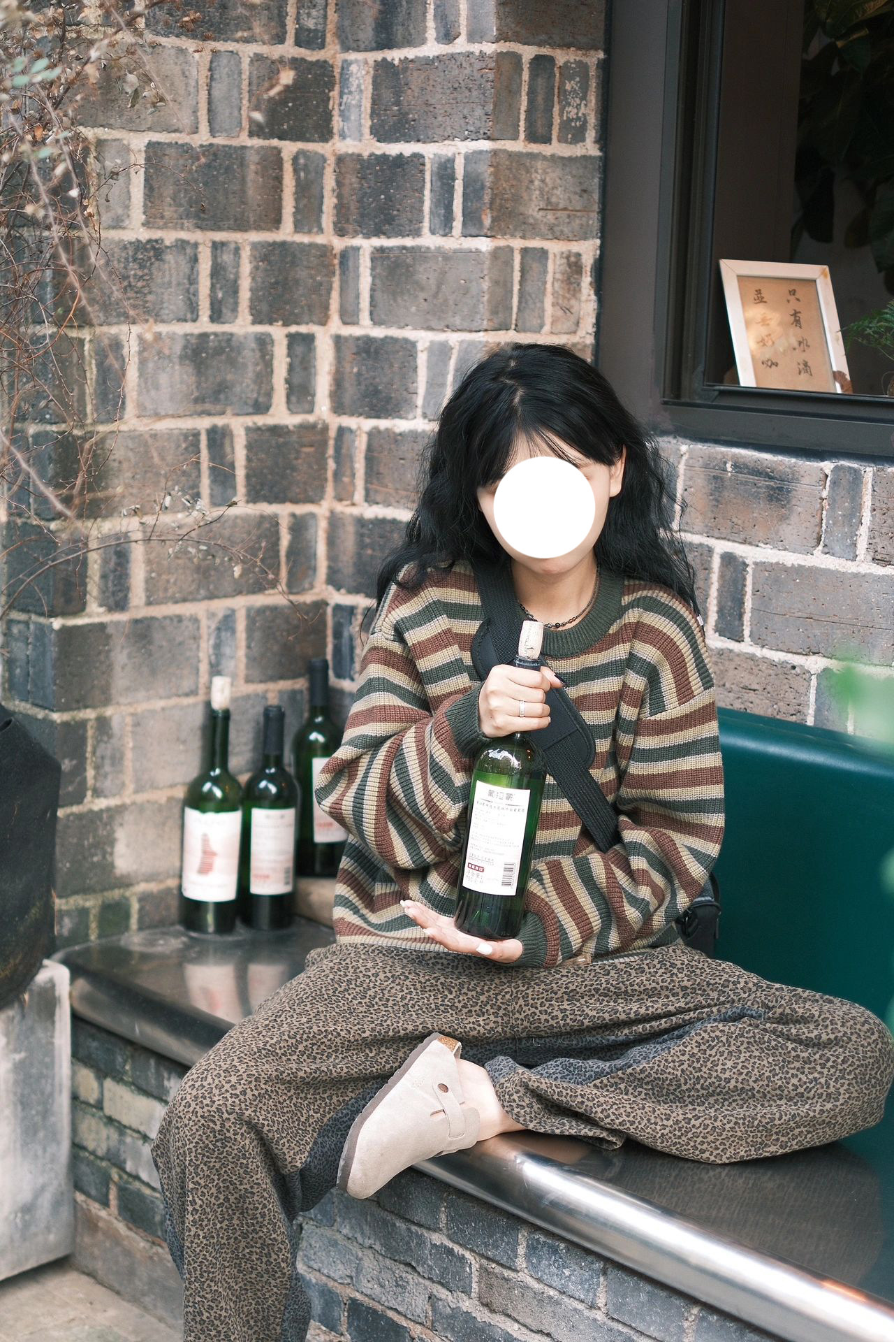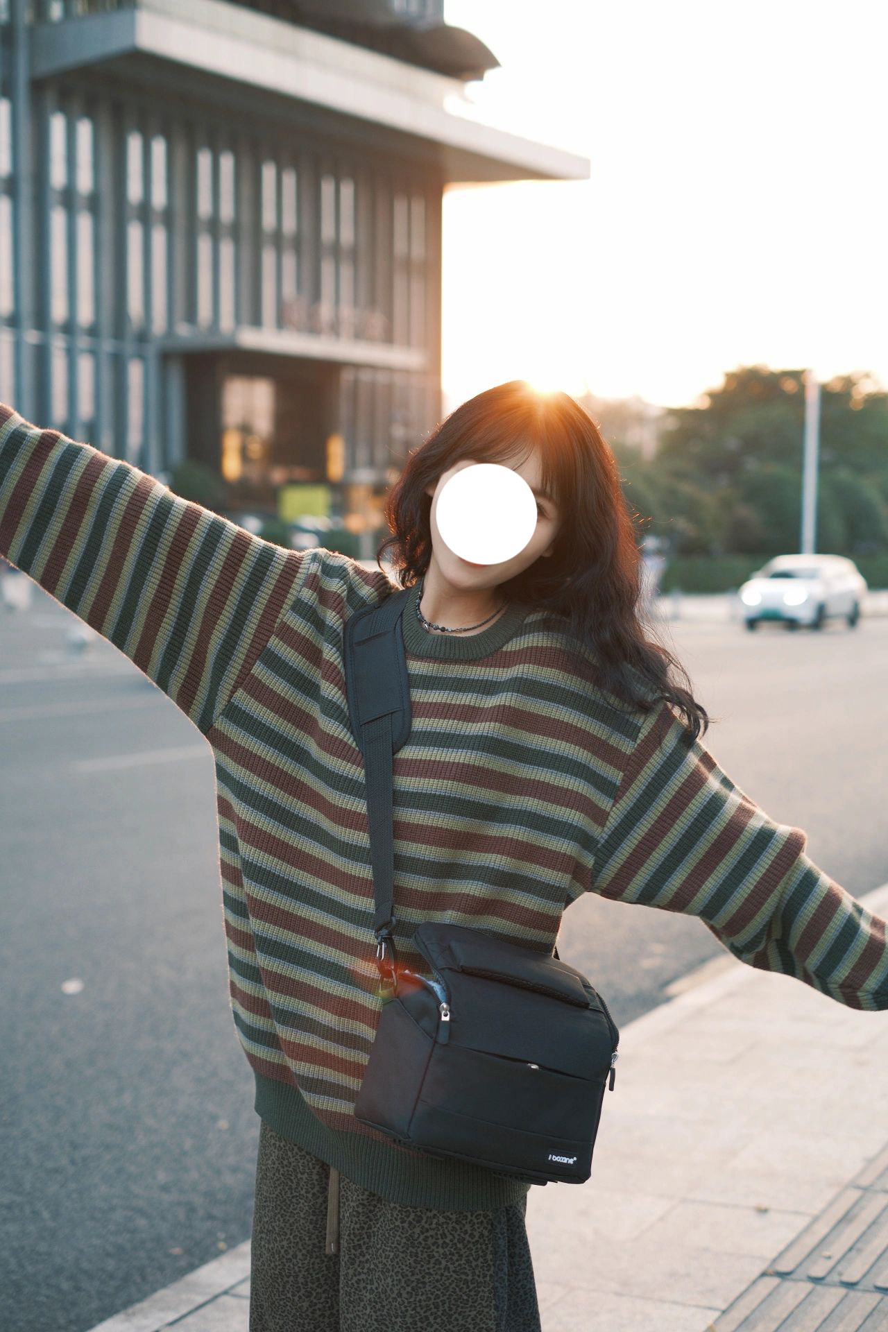 日系復古撞色條紋圓領套頭毛衣女秋冬慵懶風寬松中長款羊毛針織衫