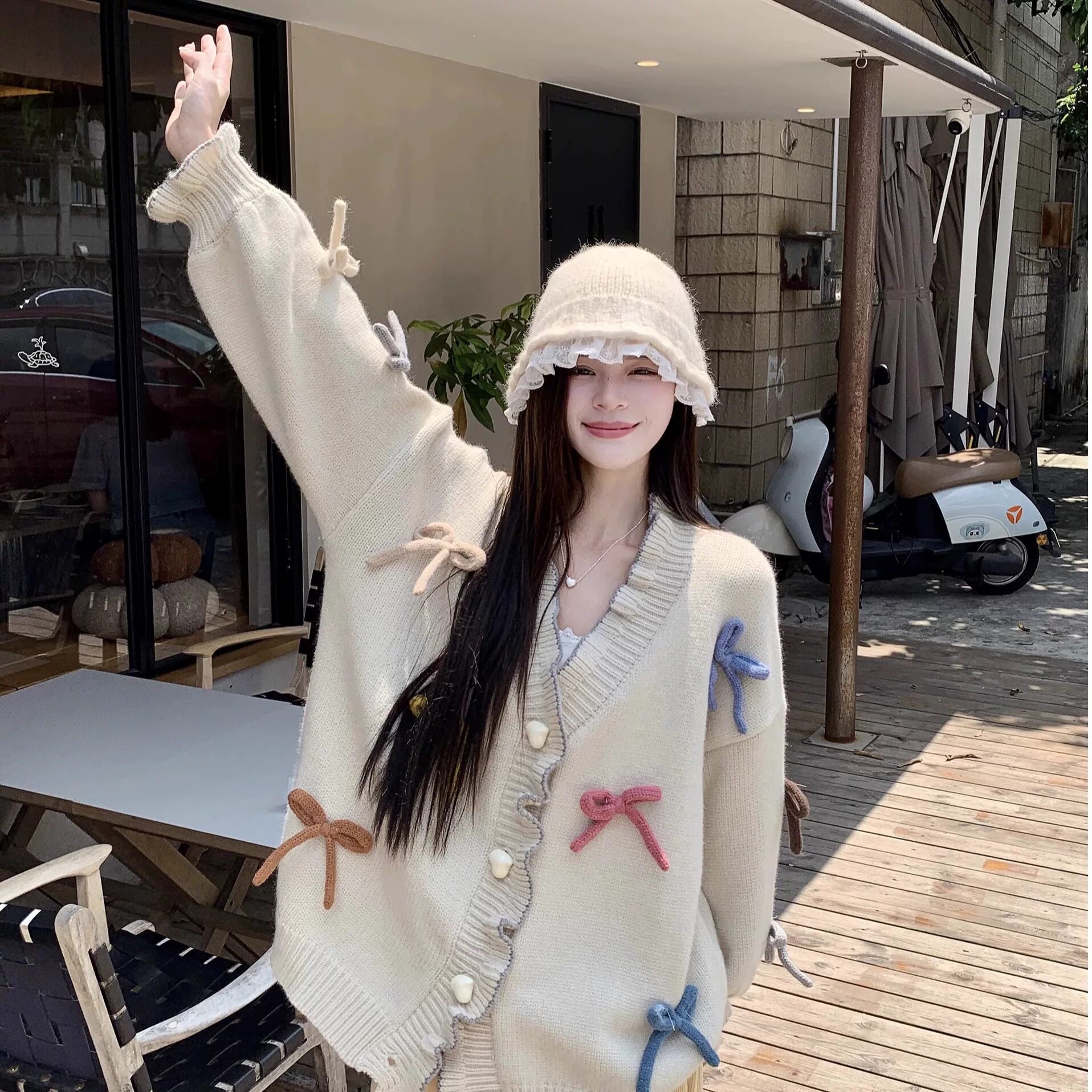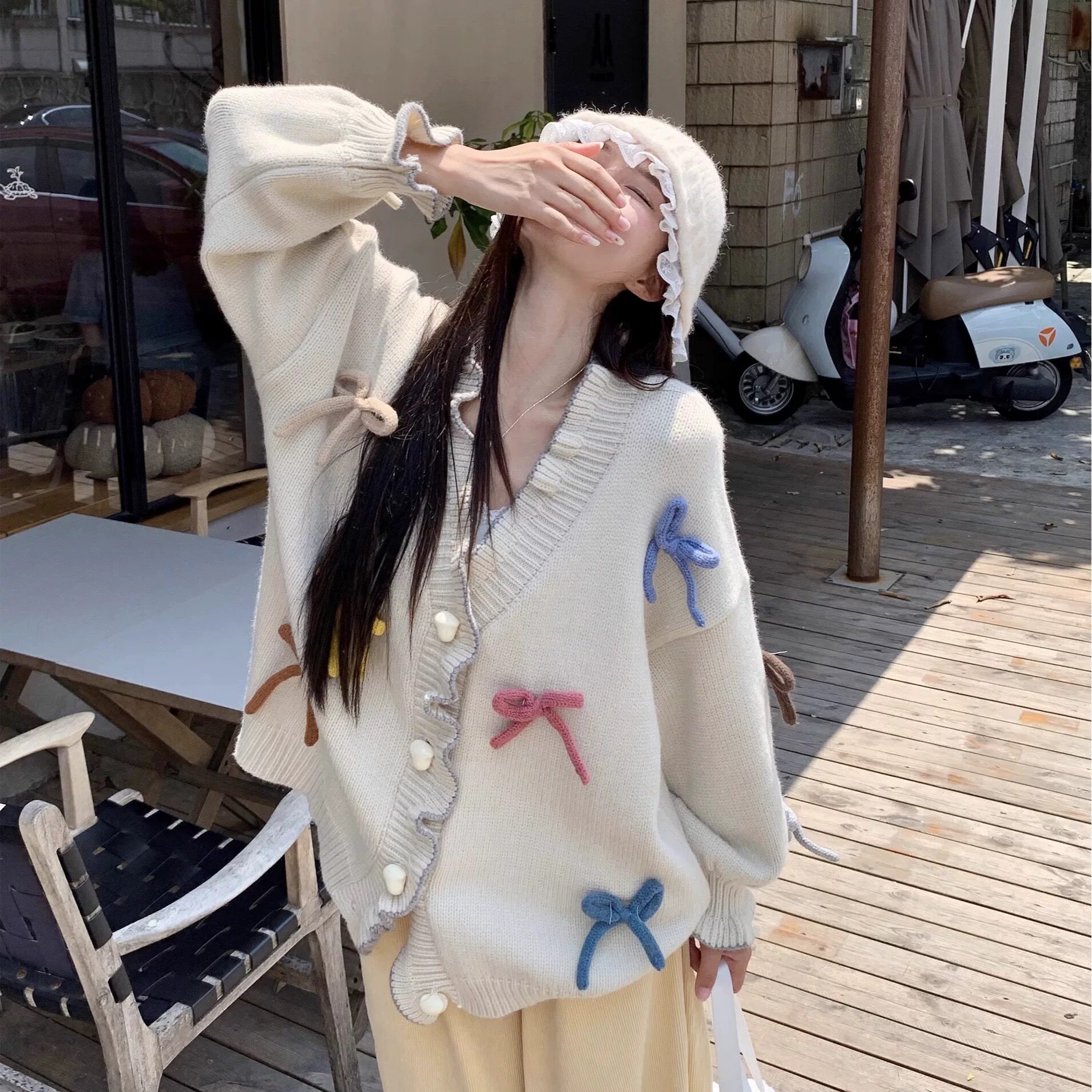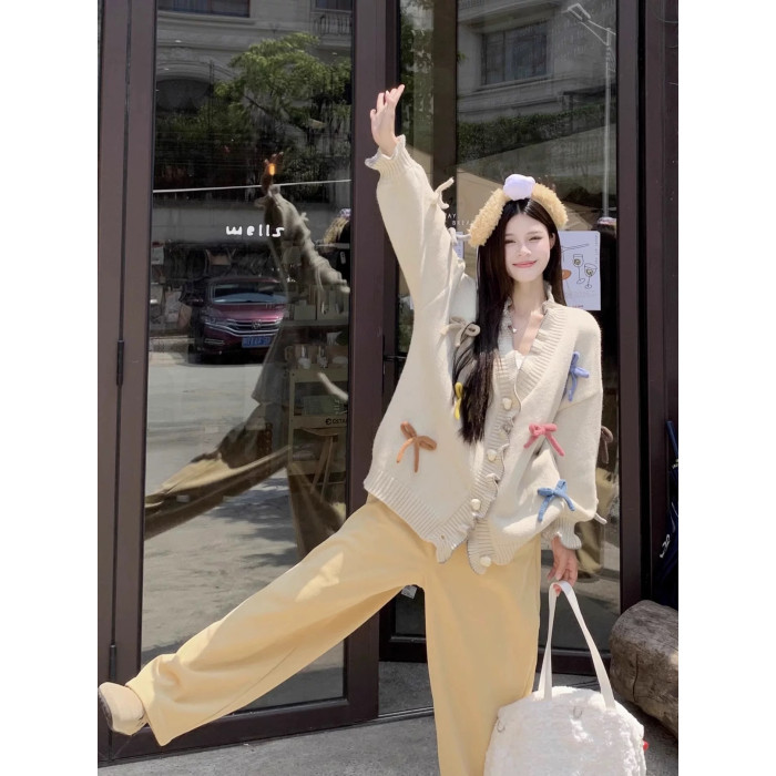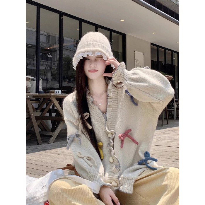 2025秋冬新款韓版寬松慵懶風蝴蝶結針織毛衣女設計感小衆上衣