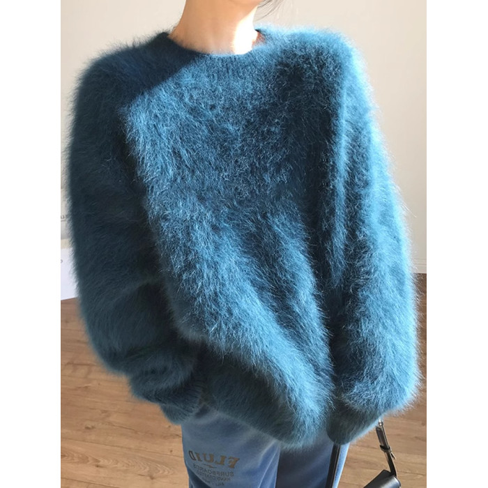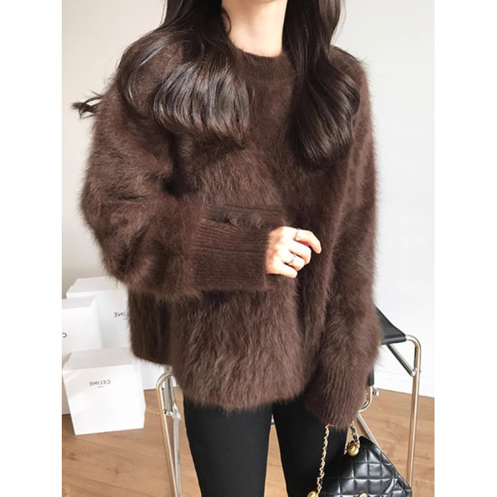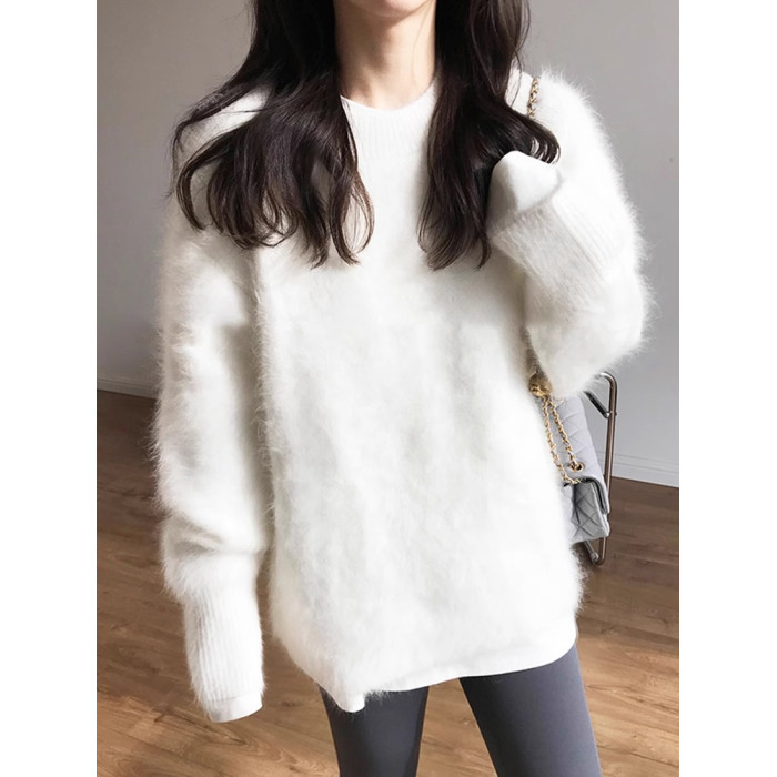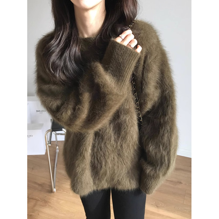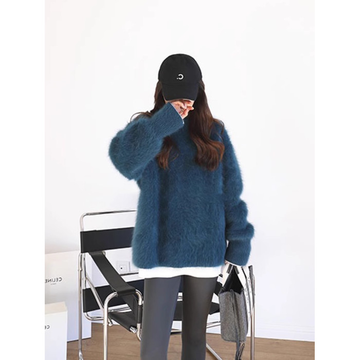 水貂絨毛衣女秋冬小個子加厚高級感套頭針織衫慵懶風寬松內搭上衣