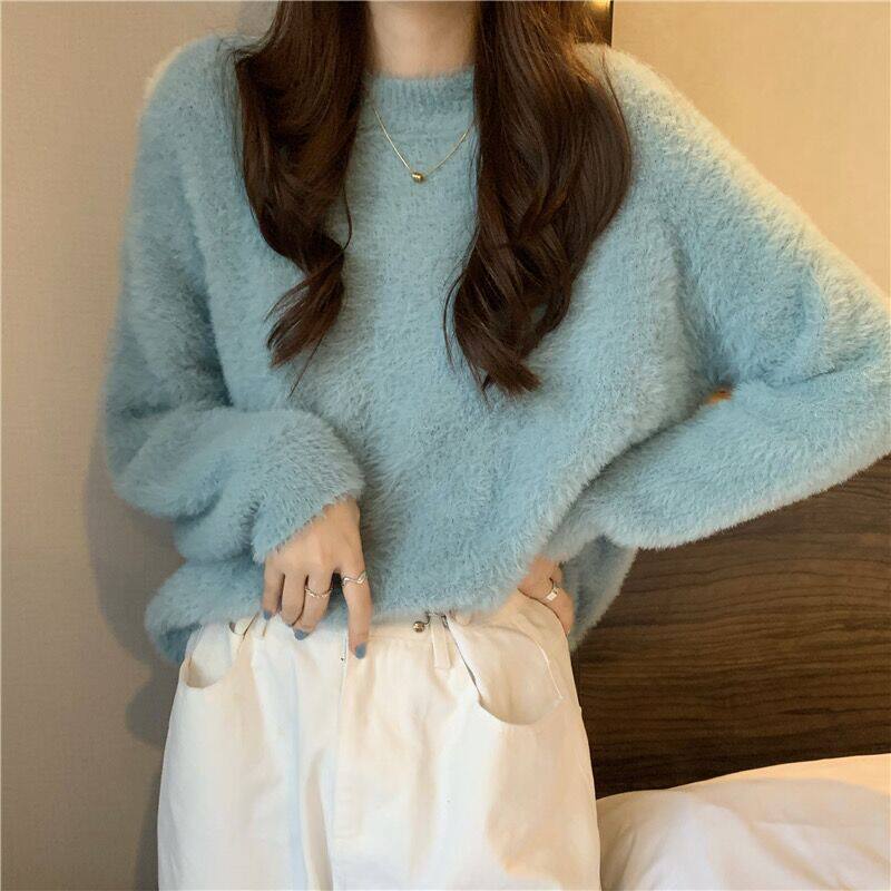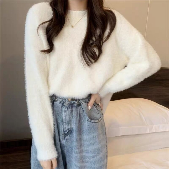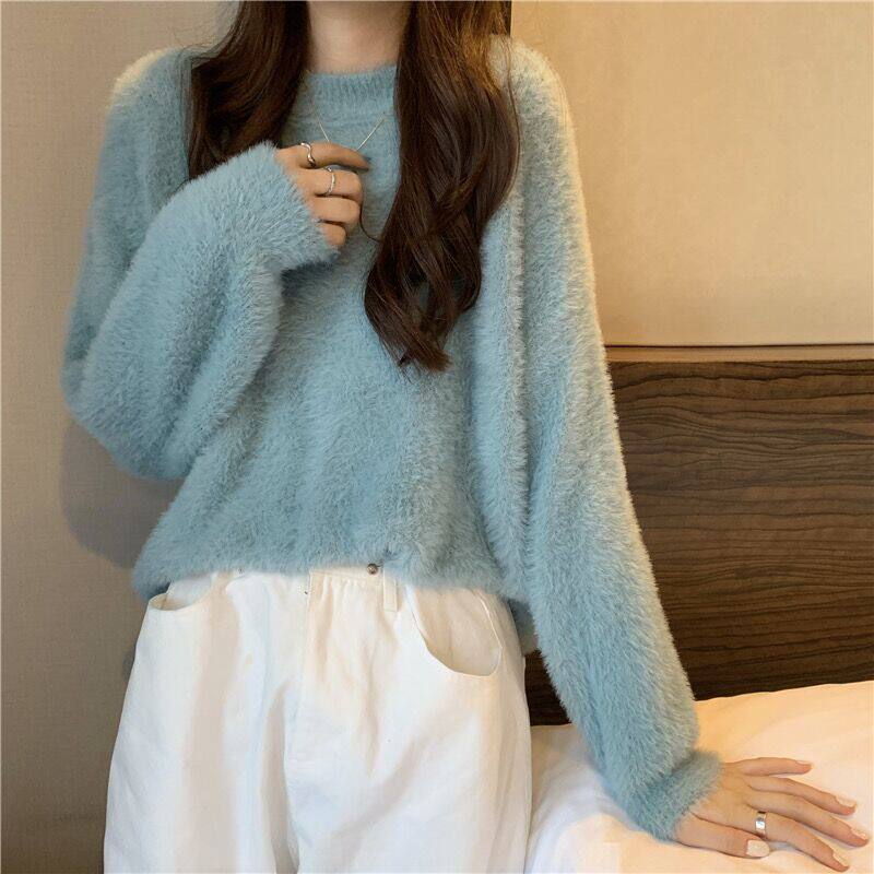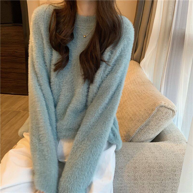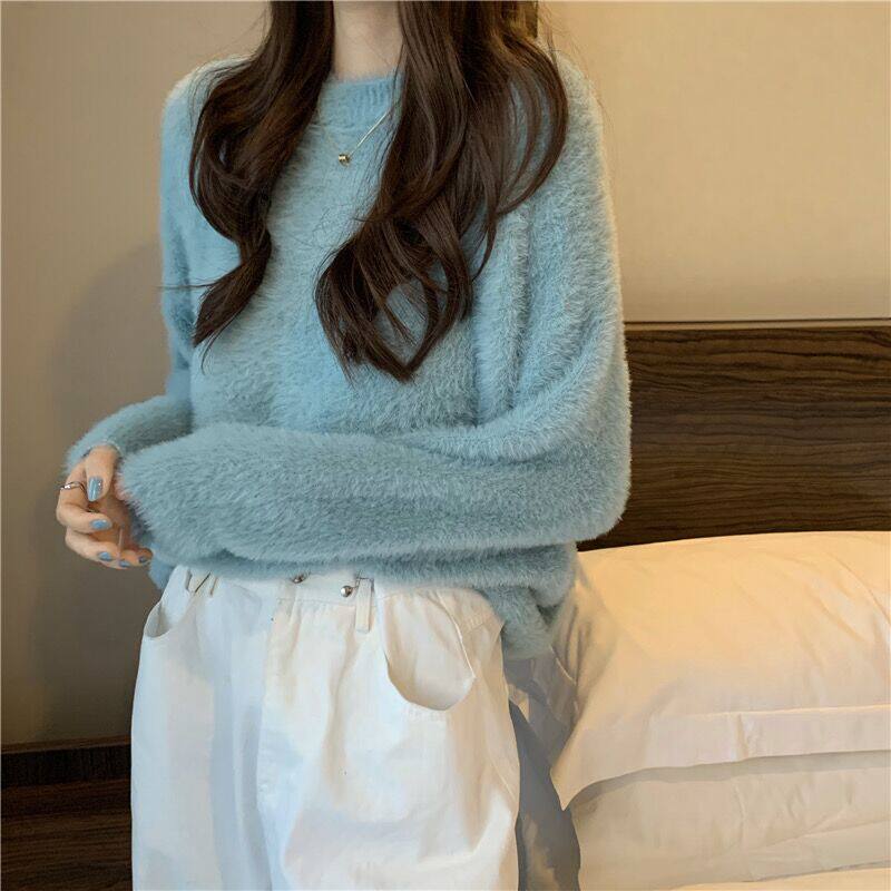 水貂絨毛衣女士2025秋冬新款韓版寬松圓領外穿上衣學生針織衫內搭