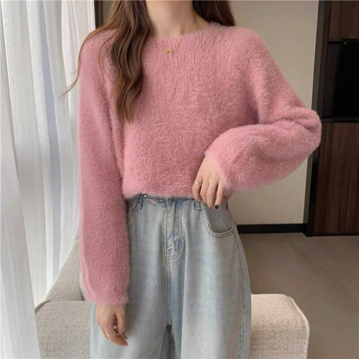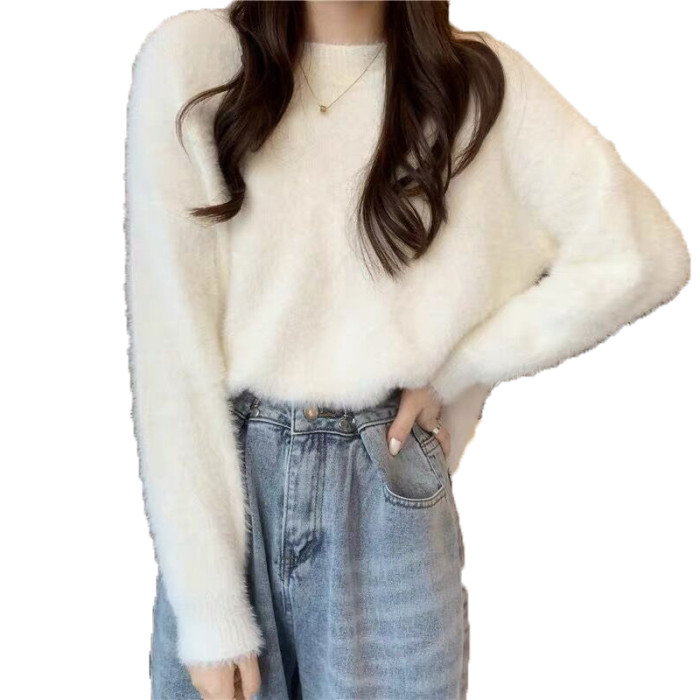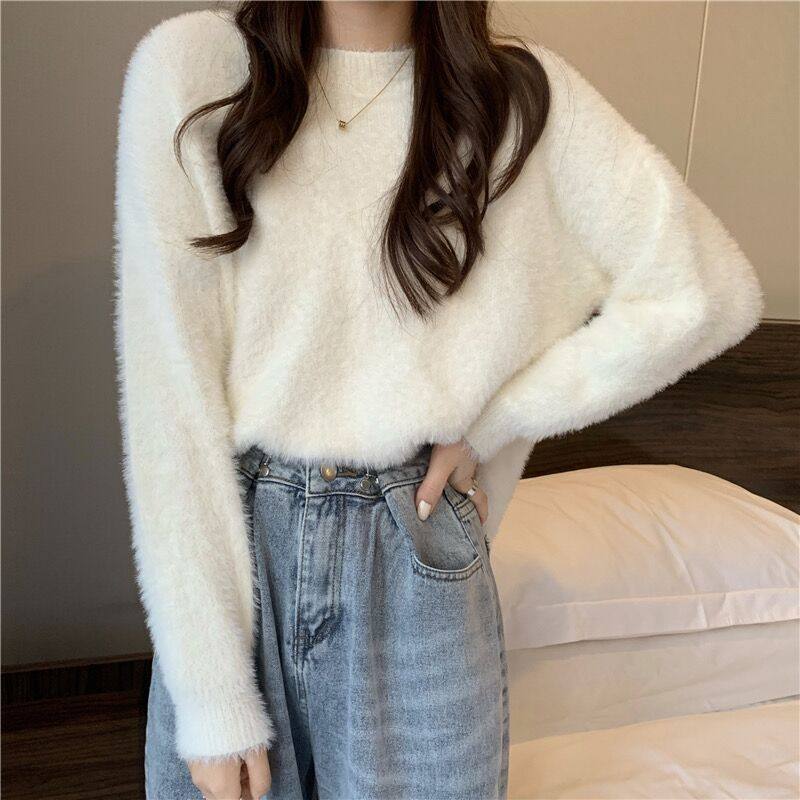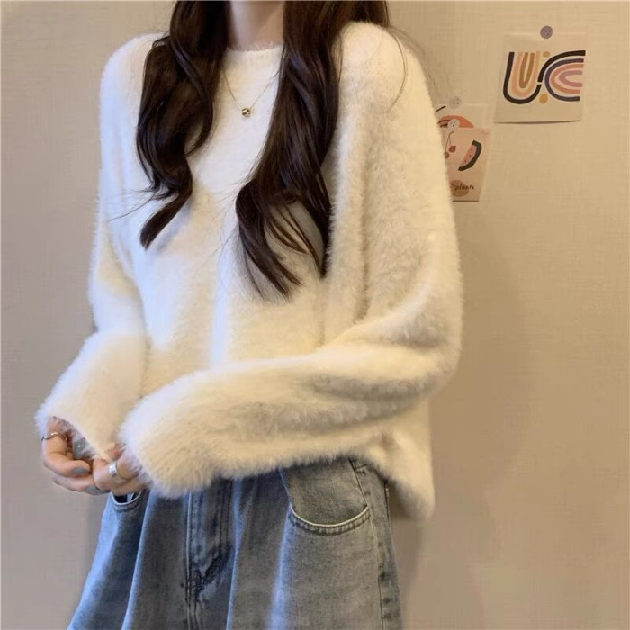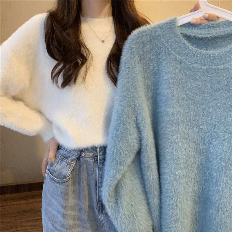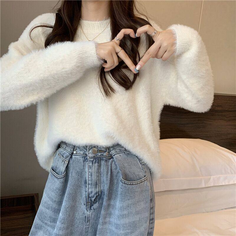 水貂絨毛衣女士2025秋冬新款韓版寬松圓領外穿上衣學生針織衫內搭