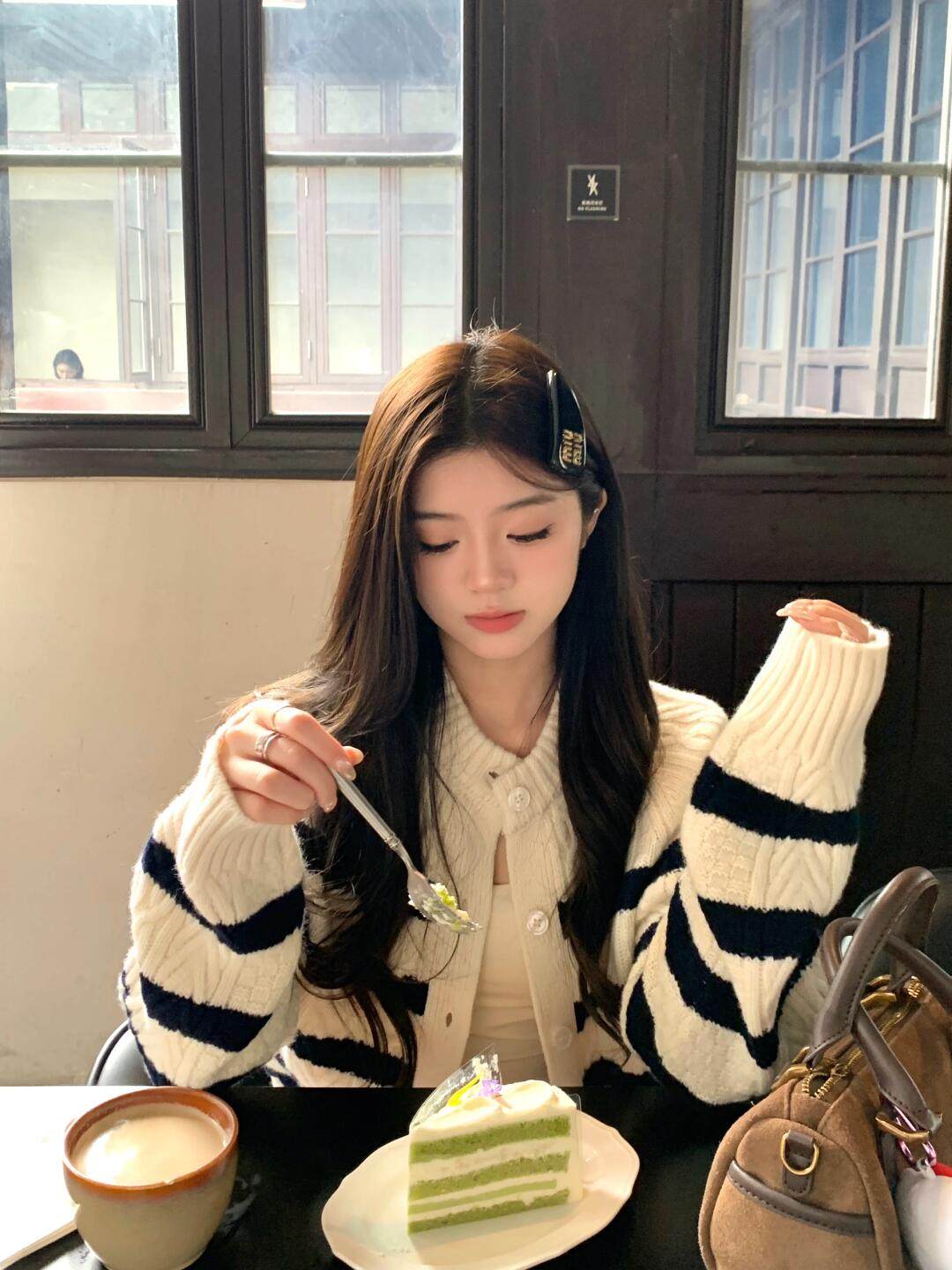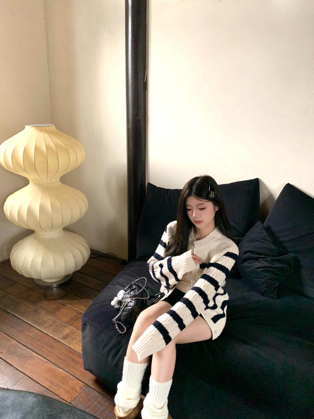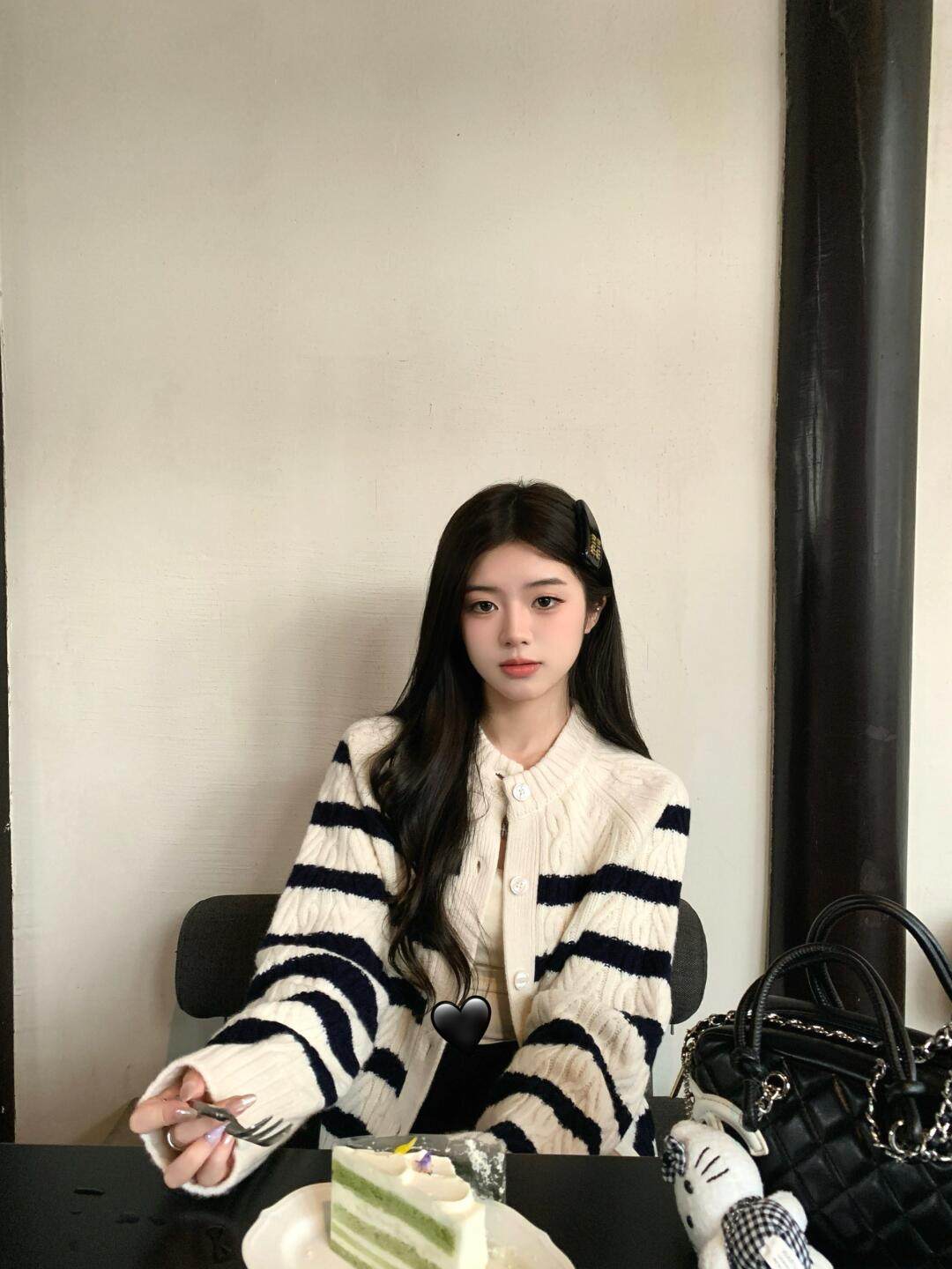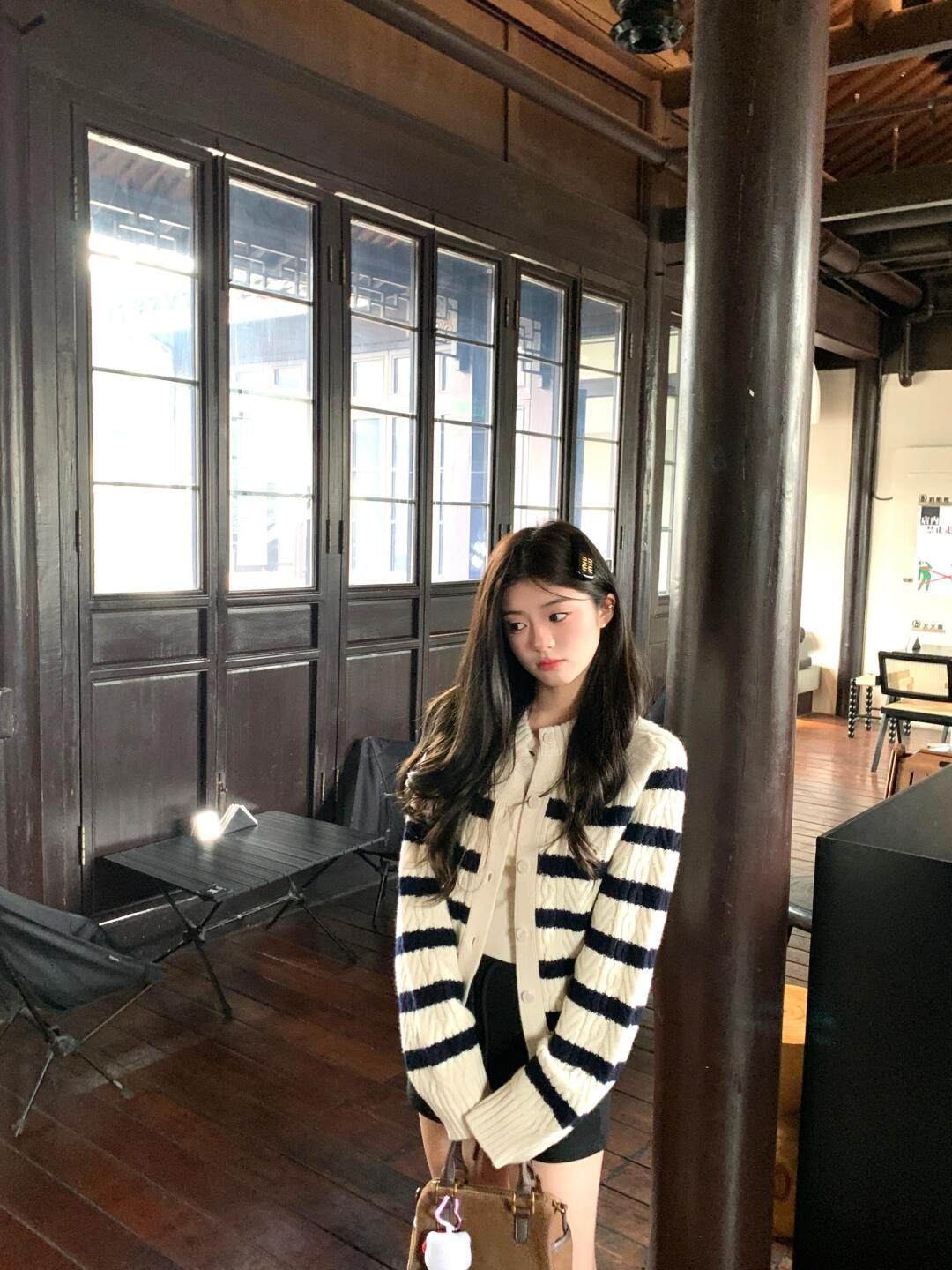 溫柔風條紋毛衣開衫女秋冬2025新款松弛感慵懶軟糯針織衫短款外套