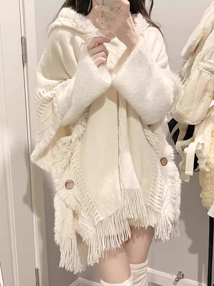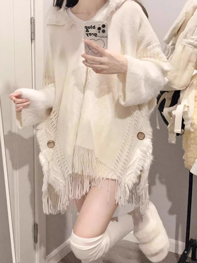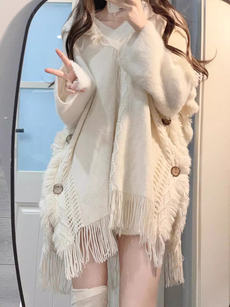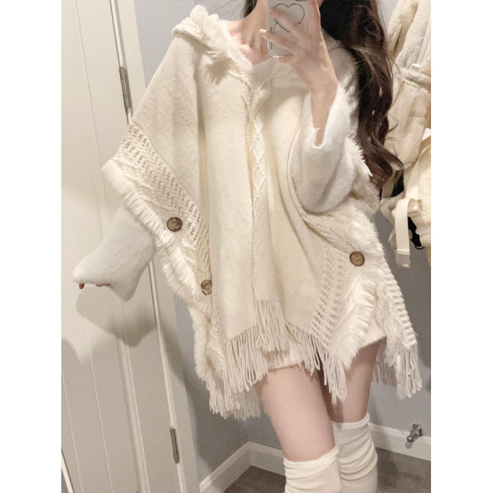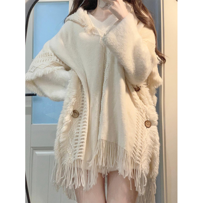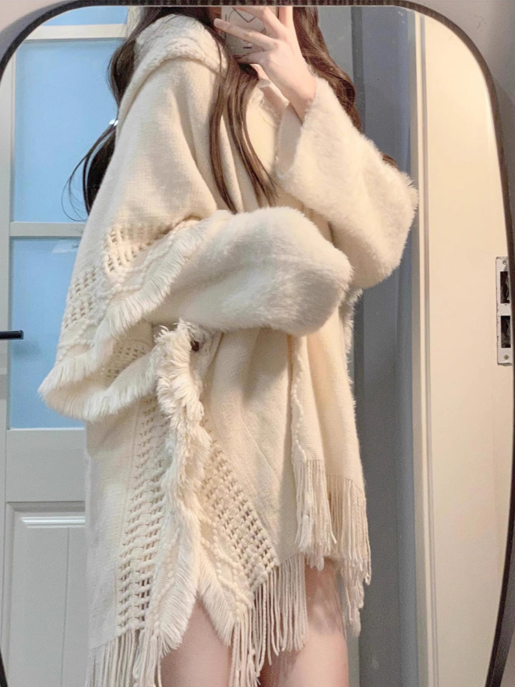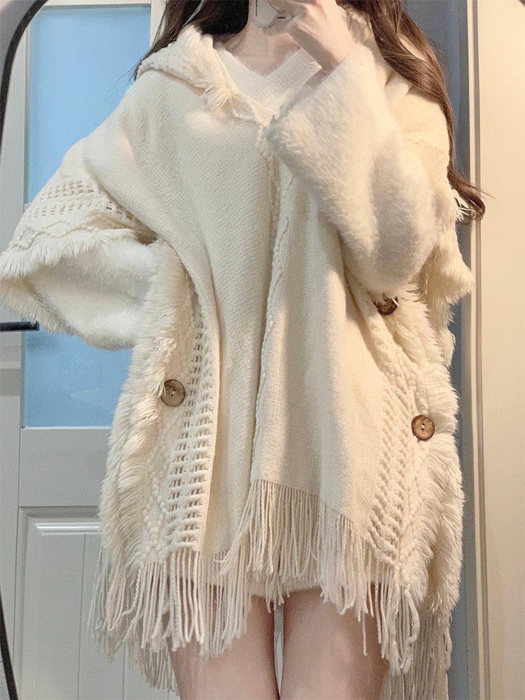 針織衫流蘇鬭篷波西米亞風罩衫民族風連帽披肩外搭外套女秋冬毛衣